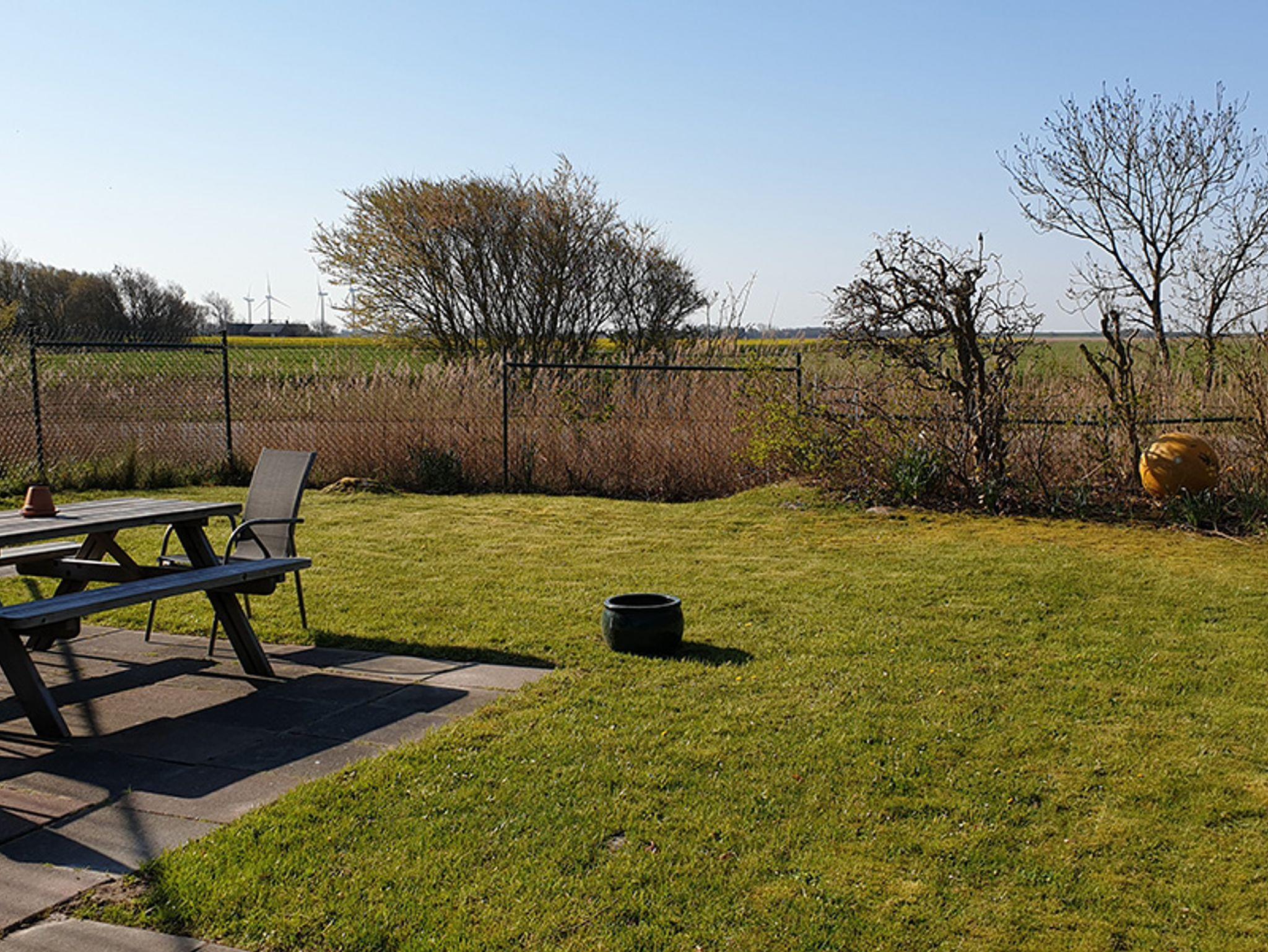 Vom Gemeinschaftsgarten aus genießen Sie den Weitblick übers Land und Felder bis zum Deich der nahegelegenen Nordsee. Sitzgelegenheiten sind vorhanden.