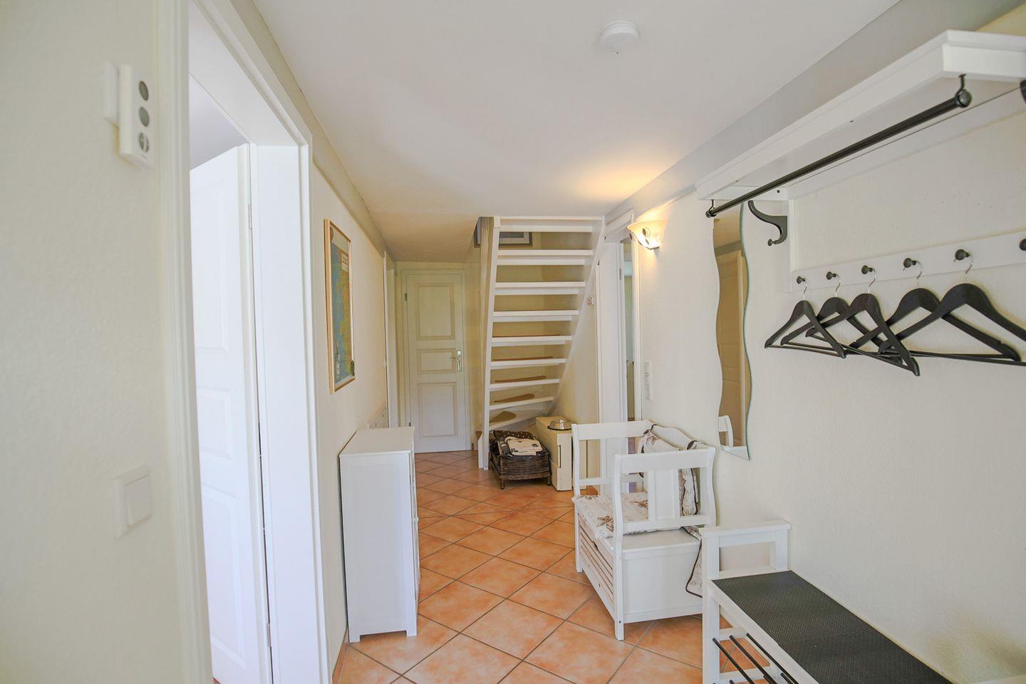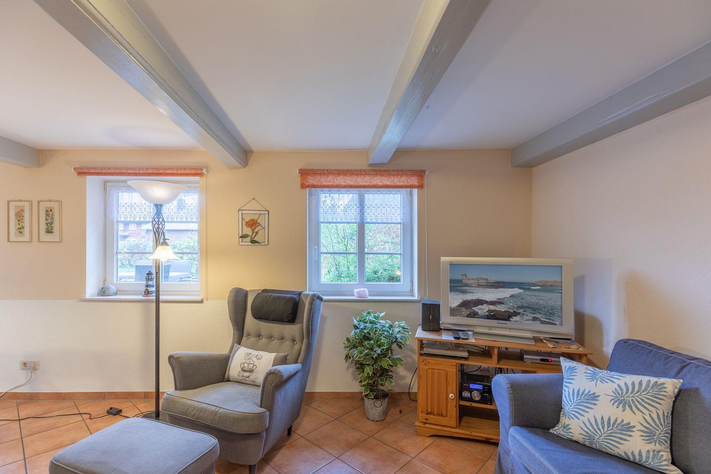 Innerhalb des Hauses befindet sich im EG ein kleines separates Appartement. Dieses bietet den Luxus, mit Oma und Opa, Freunden oder Nachbarn gemeinsam Urlaub machen zu können. Hier ist man räumlich getrennt und doch ganz nah, eben genau so viel, wie man möchte.
