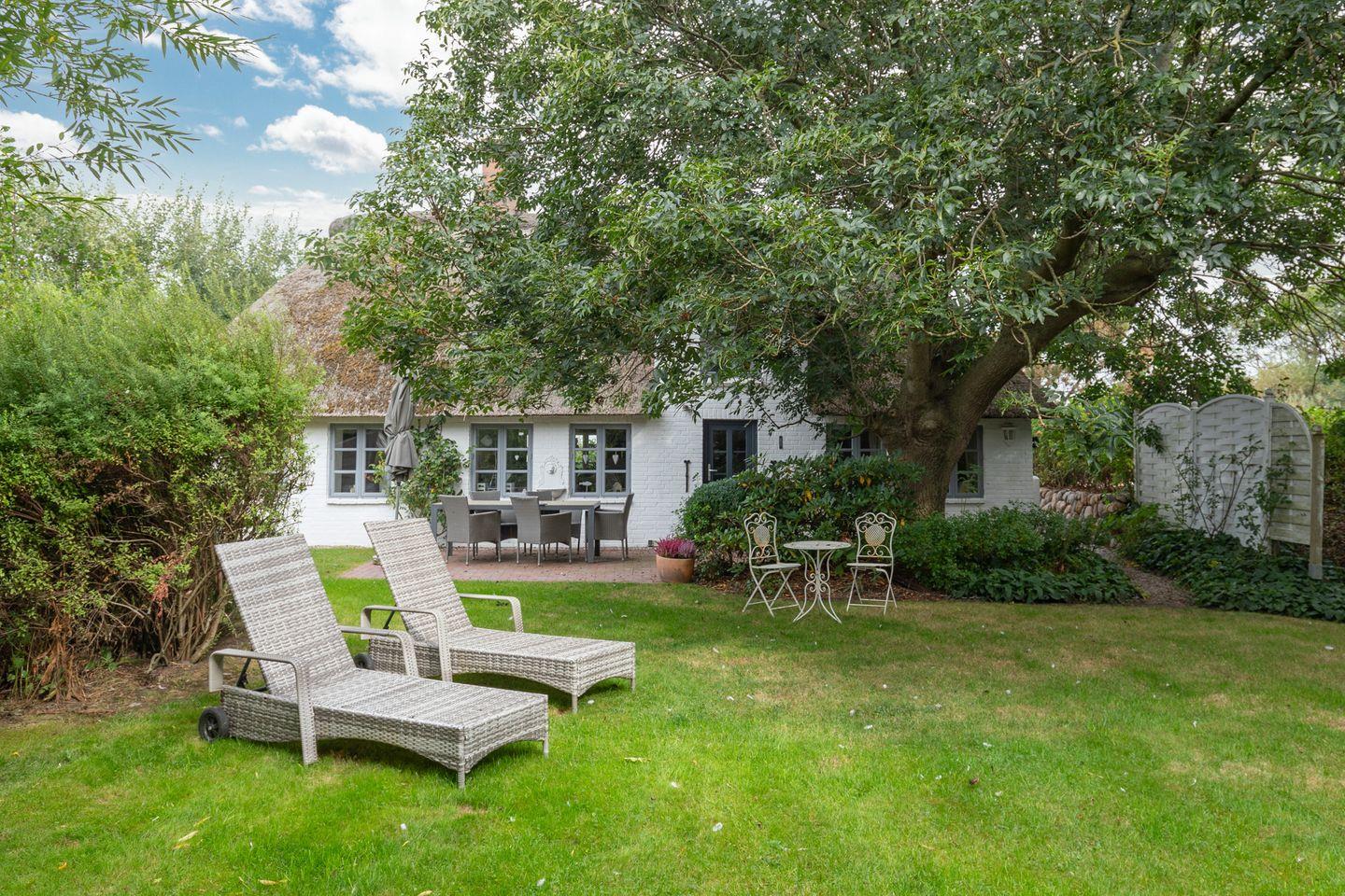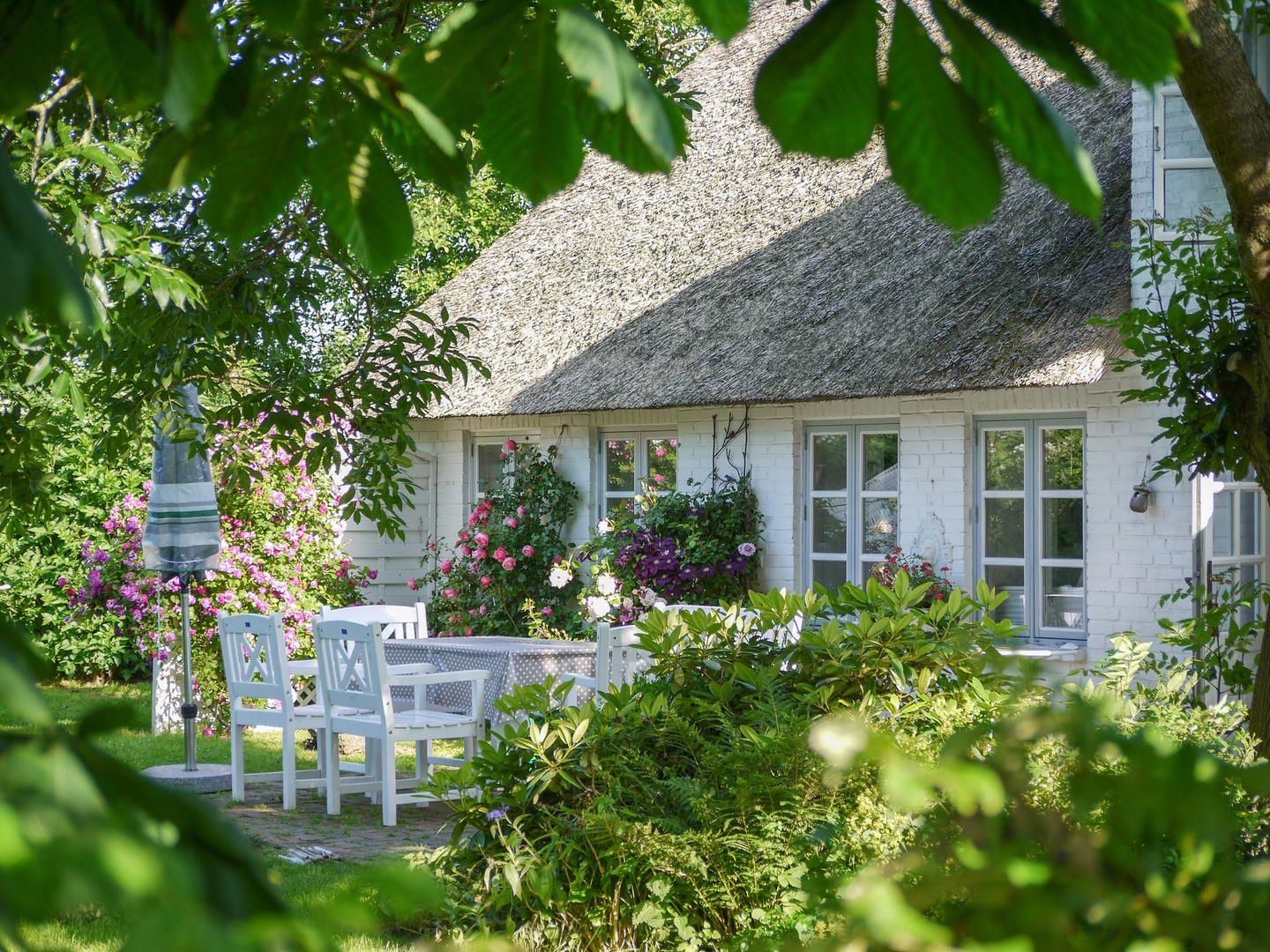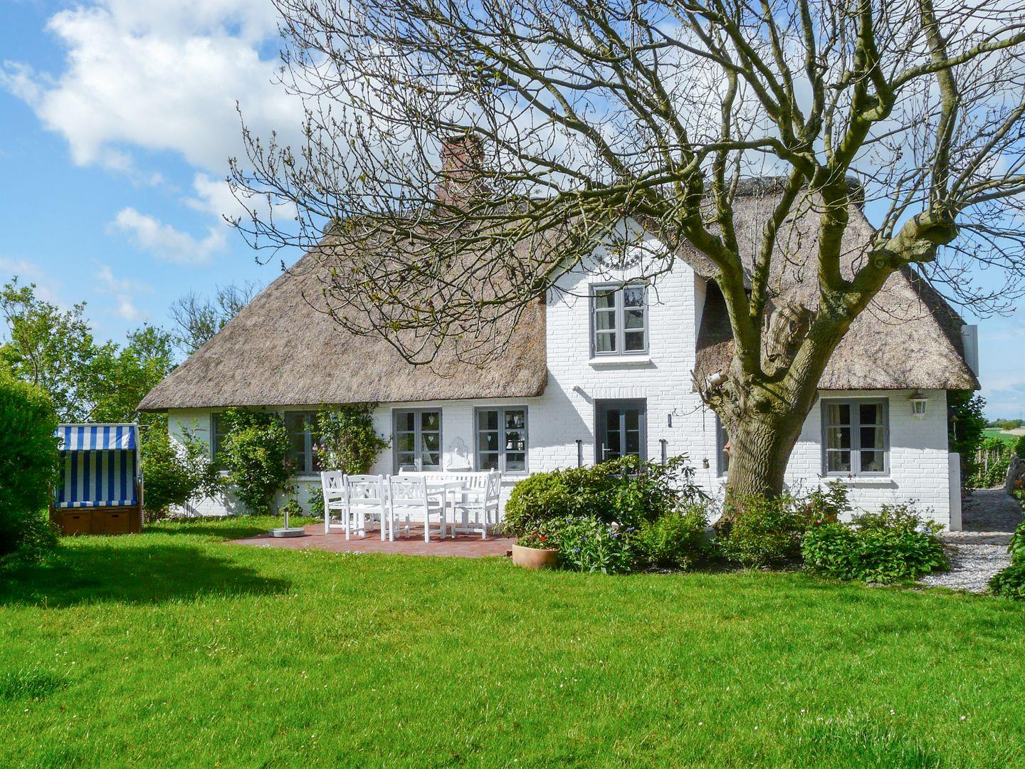 Erleben Sie das romantische Ferienhaus Witthuis - Perle am Deich in Emmelsbüll-Horsbüll, Nordfriesland. Das reetgedeckte Haus von 1840 bietet Platz für bis zu 6 Personen und liegt nur wenige Schritte von der Nordseeküste und dem Wattenmeer entfernt. Das 140 qm große Haus im Landhausstil verfügt über 3 Schlafzimmer, ein gemütliches Wohnzimmer mit Kamin, eine gut ausgestattete Küche und eine sonnige Terrasse. Der große eingezäunte Garten ist ideal für Familien und Haustiere.
