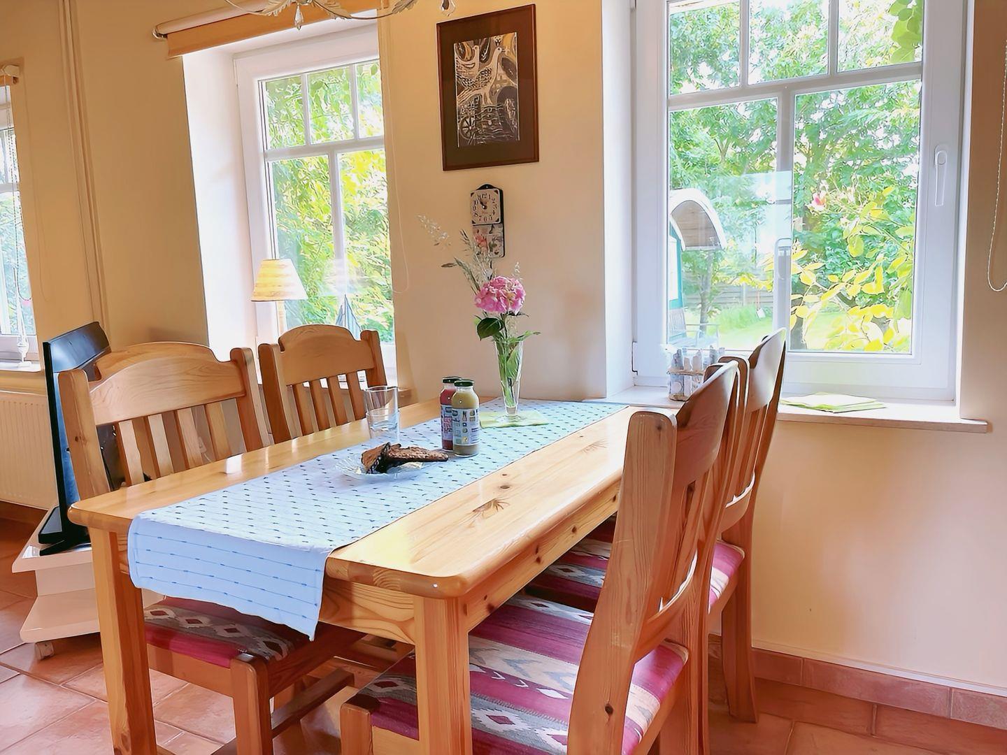 Die zwei Terrassen mit Gartenblick sind der ideale Ort, um die frische Luft zu genießen, während Gartenmöbel und ein Grill für gesellige Abende im Freien sorgen. Ihr vierbeiniger Freund ist hier ebenfalls herzlich willkommen – eine wunderbare Gelegenheit, auch im Urlaub gemeinsam Naturerlebnisse zu teilen. Der weitläufige Garten und die Liegewiese bieten ausreichend Platz für Kinder, um zu spielen und zu entdecken. Der Garten ist im vorderen Bereich 1,43 m hoch und im hinteren Bereich 1,20 m hoch eingezäunt.