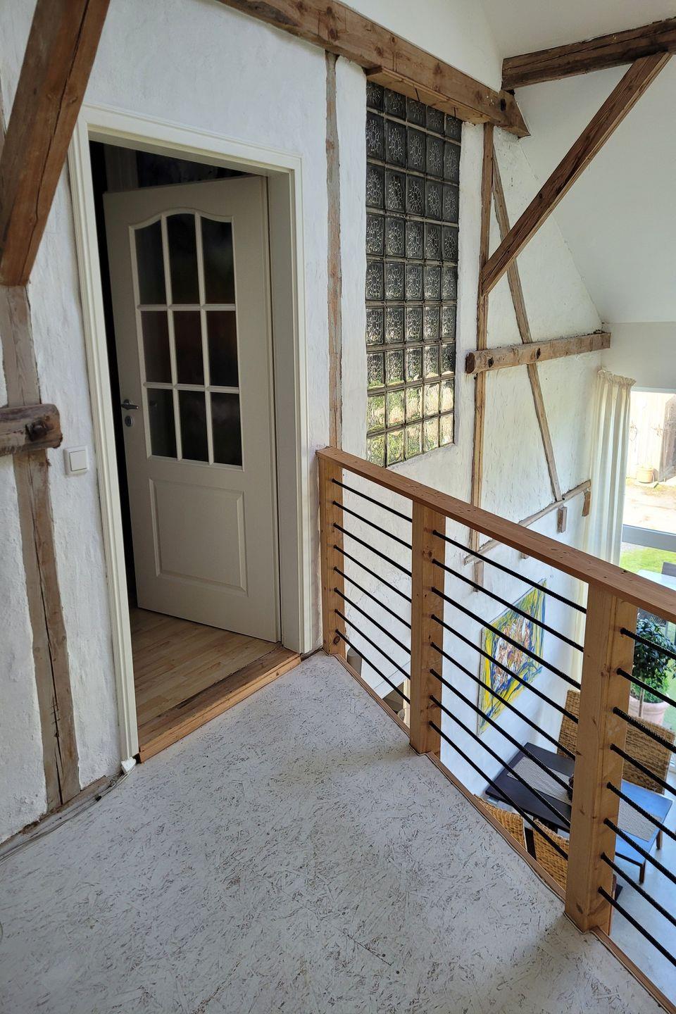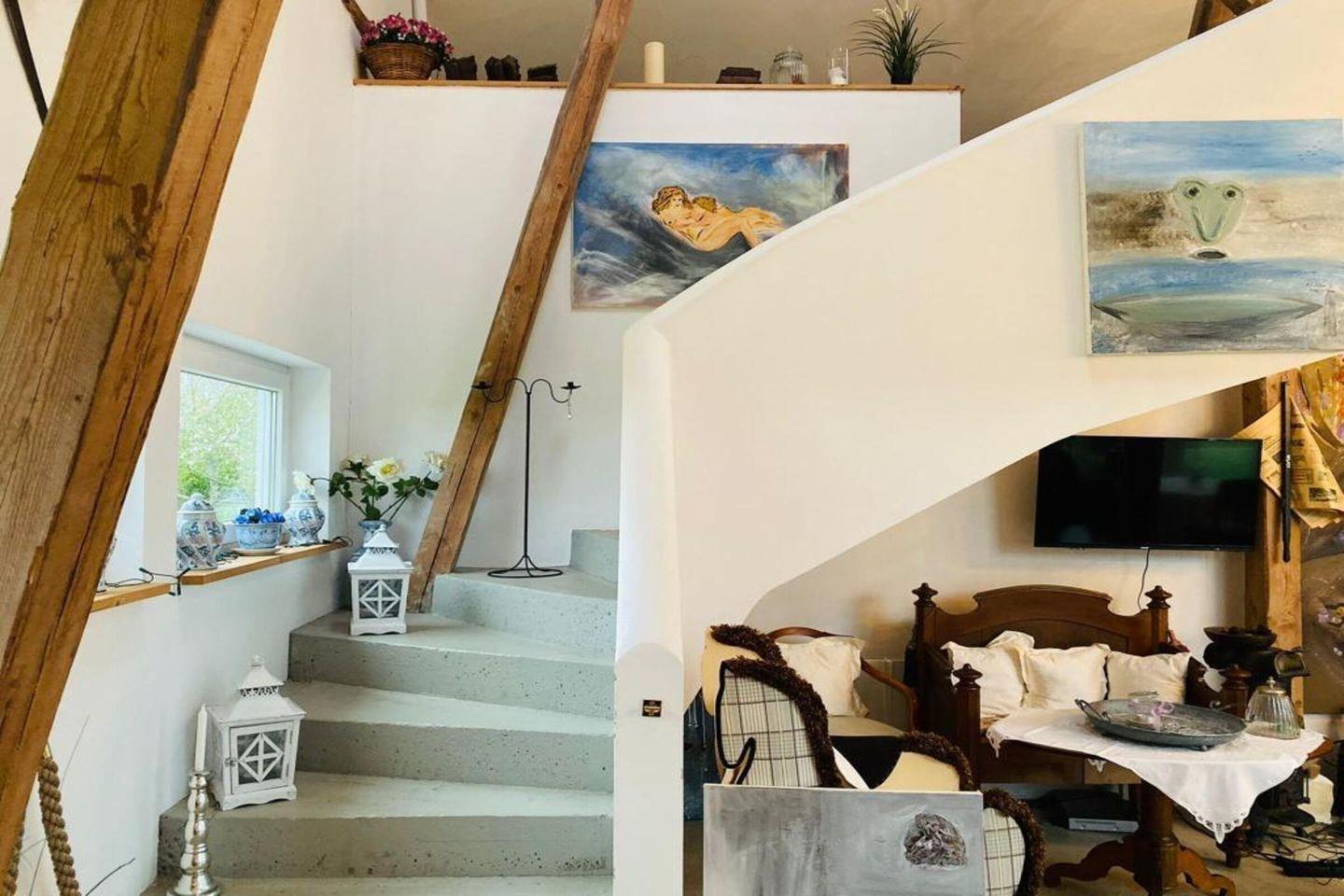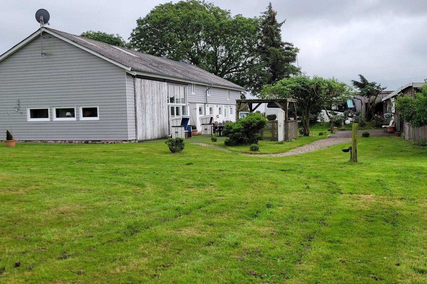 Die Außenanlage der Ferienwohnung lädt zu entspannten Momenten ein. Genießt die frische Luft auf der Terrasse, wo Gartenmöbel und ein Grill bereitstehen. Sonnenliegen und ein Sonnenschirm sind ebenfalls vorhanden, sodass Ihr ungestört die Sonne genießen könnt. Der Garten bietet zudem einen klaren Blick auf die umgebende Landschaft, die Euch einen beruhigenden Ausblick bietet. Unser Highlight ist der Platz im Strandkorb mit Ausblick über die Felder.