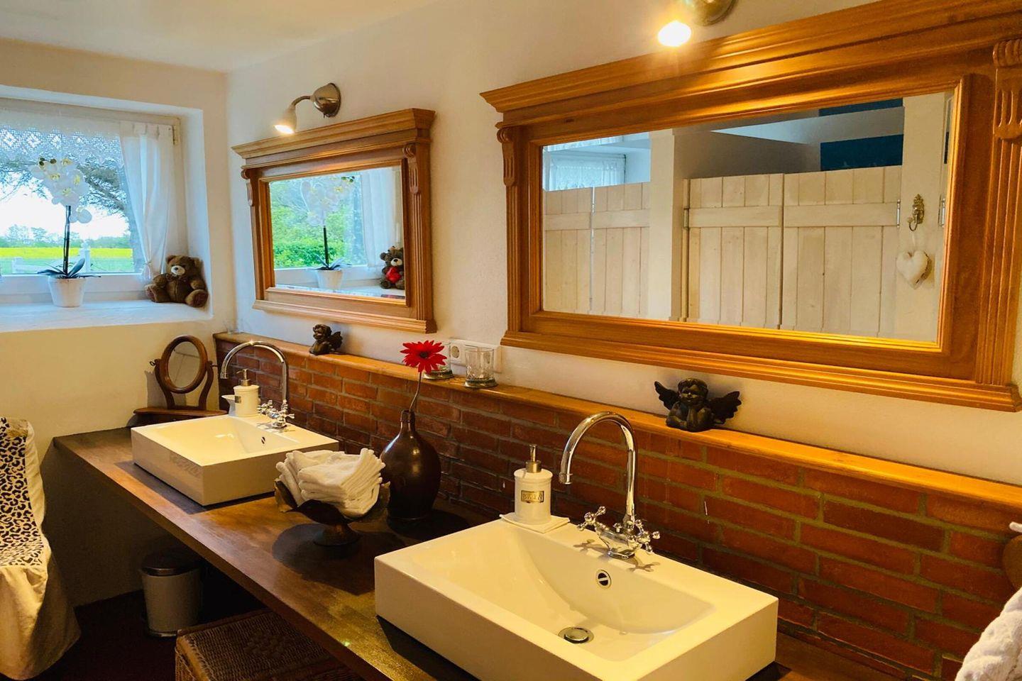 Besonders familienfreundlich ist die Ferienwohnung Sommerliebe auch durch die Möglichkeit, einen Kinderhochstuhl bereitzustellen. Die 3 Bäder sorgen für ausreichend Komfort wenn Ihr als Gruppe oder mit 2 Familien kommet. Außerdem steht Euch eine Waschmaschine und ein Trockner zur Verfügung.