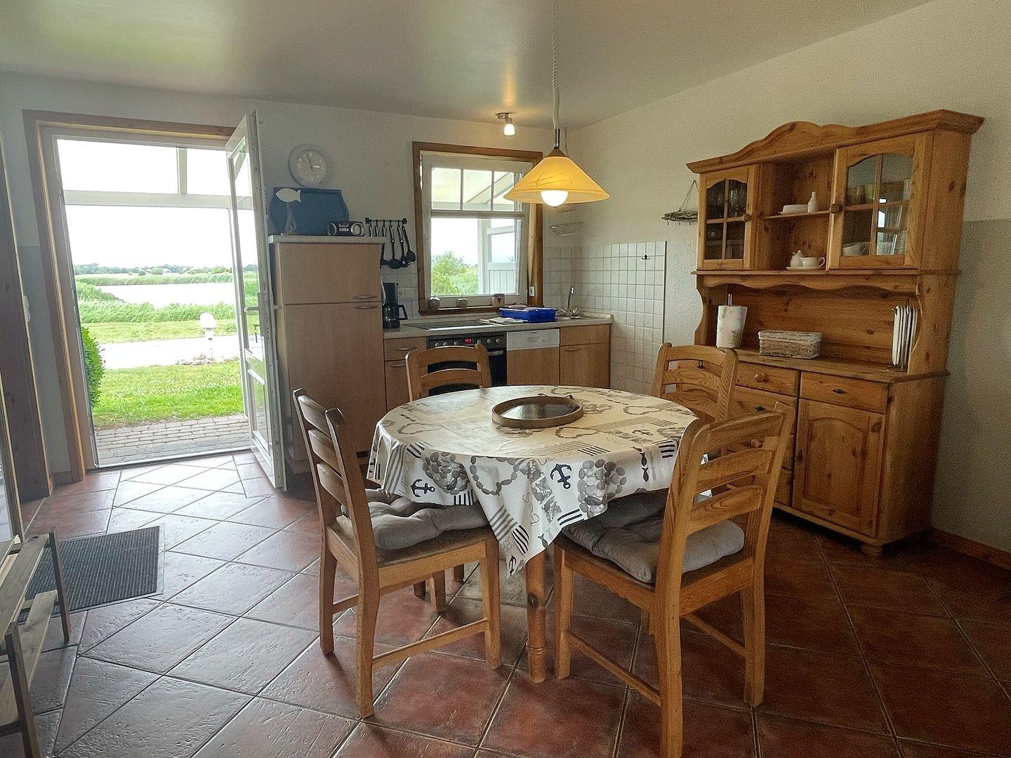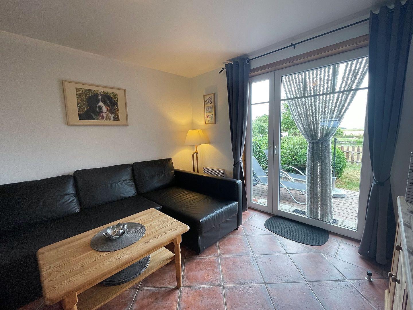 Die Ferienhaushälfte bietet Platz für bis zu sechs Personen und ist stilvoll eingerichtet. Beim Betreten werden Sie von einer warmen und gemütlichen Atmosphäre empfangen. Der offene Wohnbereich lädt zum Entspannen ein und bietet beim Blick aus dem Küchenfenster einen freie Sicht auf den Nordseedeich, der sich nur 600 Meter entfernt befindet. Genießen Sie die Ruhe und den Komfort dieses charmanten Zuhauses.