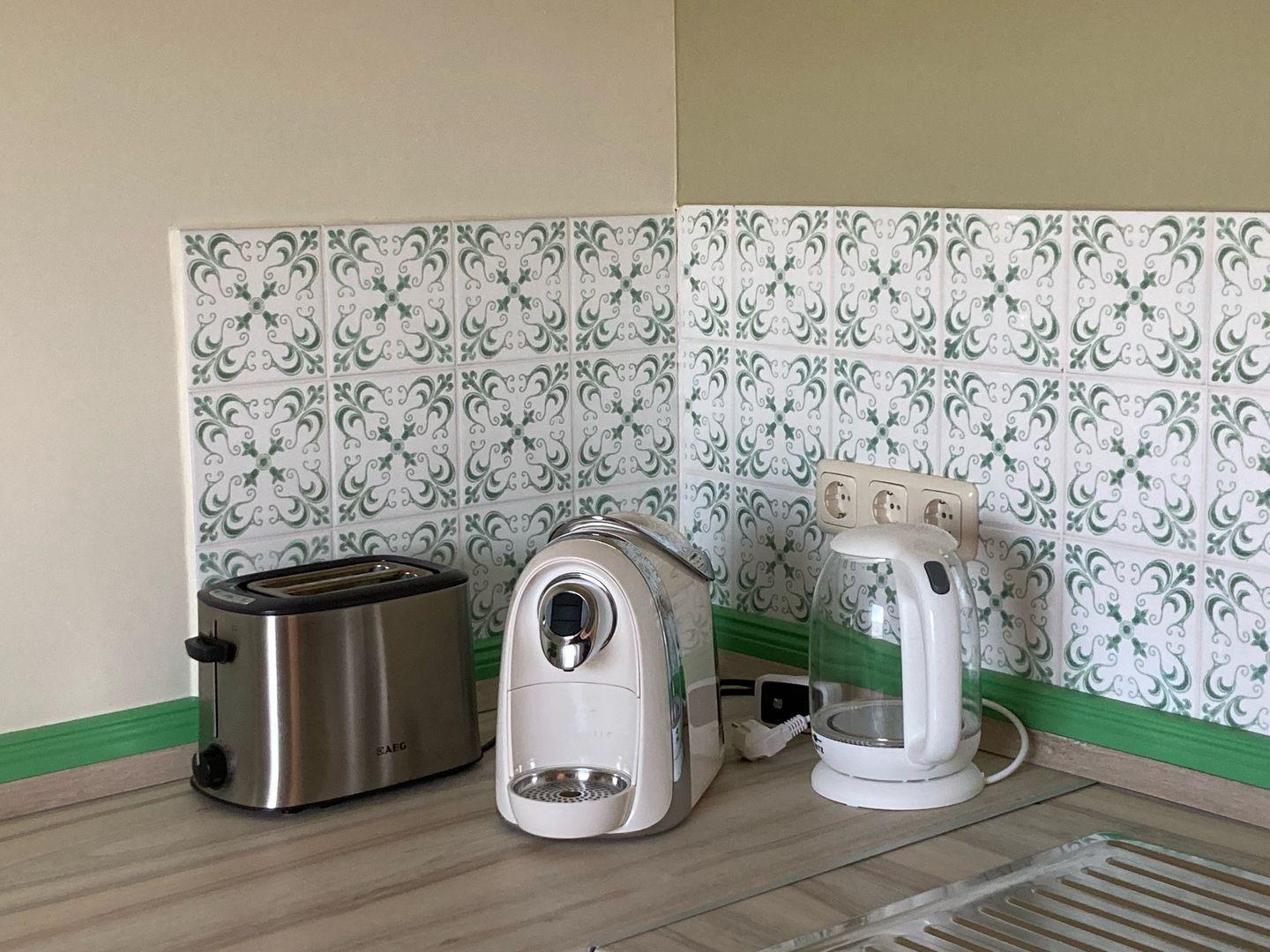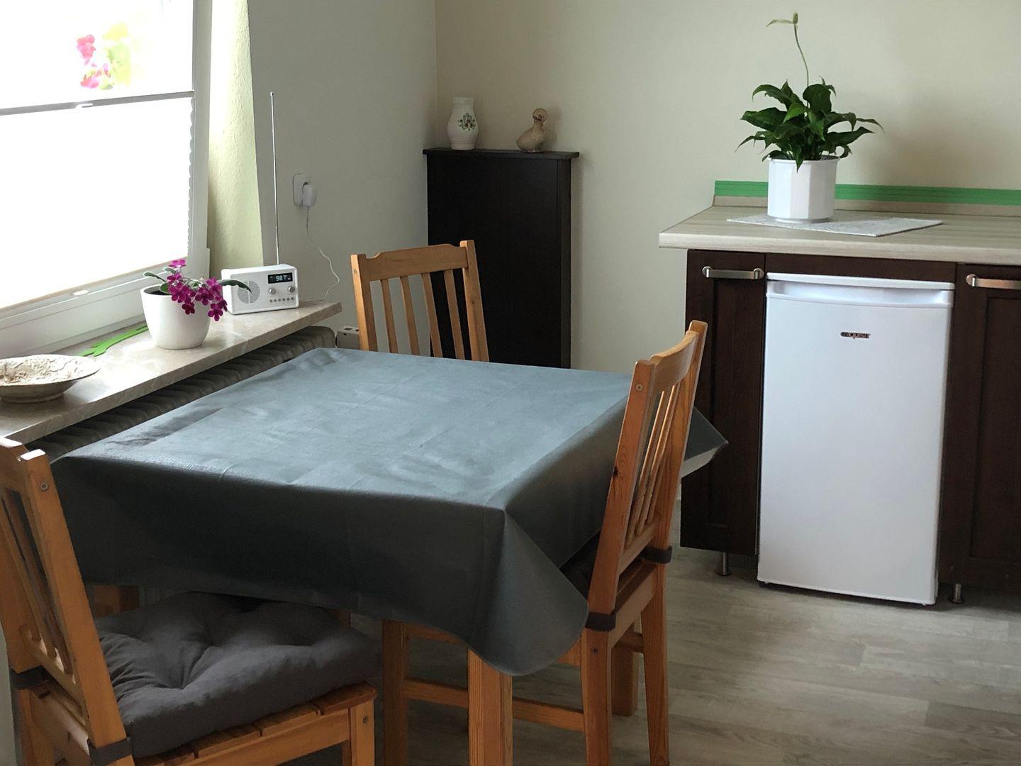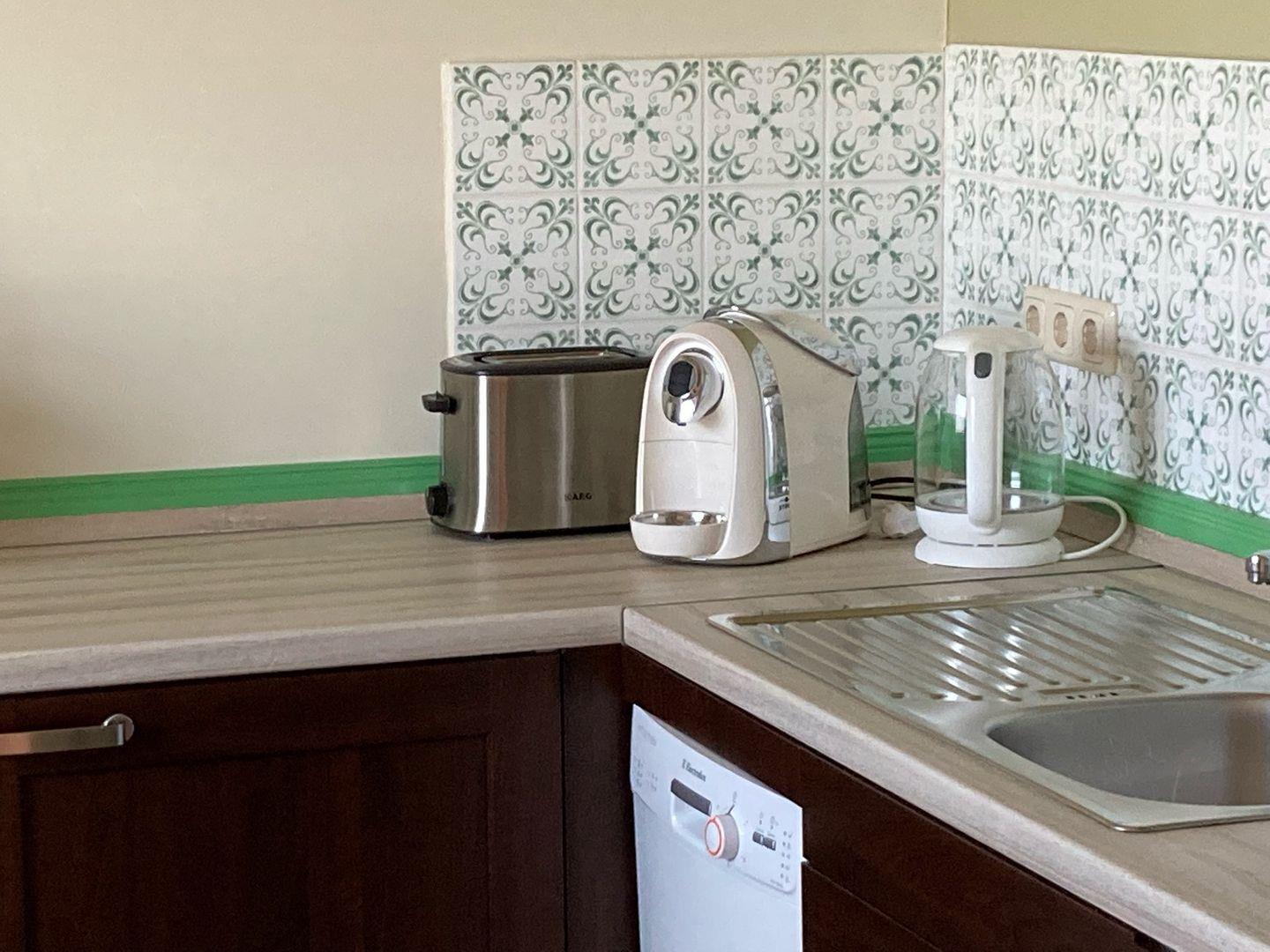 Die Küche ist geschlossen und bietet Ihnen alle notwendigen Annehmlichkeiten, um sich selbst zu versorgen. Sie ist mit einem Herd, einem Backofen, einem Geschirrspüler einer Mikrowelle sowie einem Kühlschrank mit Gefrierfach ausgestattet. WLAN ist ebenfalls vorhanden, sodass Sie auch während Ihres Aufenthalts in Verbindung bleiben können.