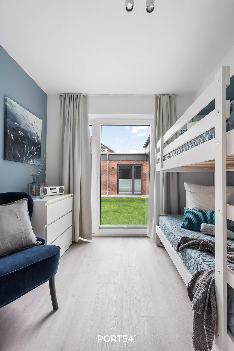 Grillabende zur Verfügung. Die beiden Schlafzimmer sind hochwertig eingerichtet und verfügen über ein Doppelbett und ein Etagenbett (90x200cm). Für weitere 2 Personen steht im Wohnzimmer ein gemütliches Schlafsofa zur Verfügung. Das helle Badezimmer hat eine Dusche. Die gesamte Wohnung verfügt über eine Fußbodenheizung.