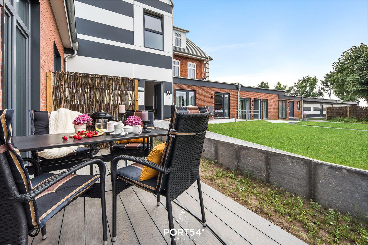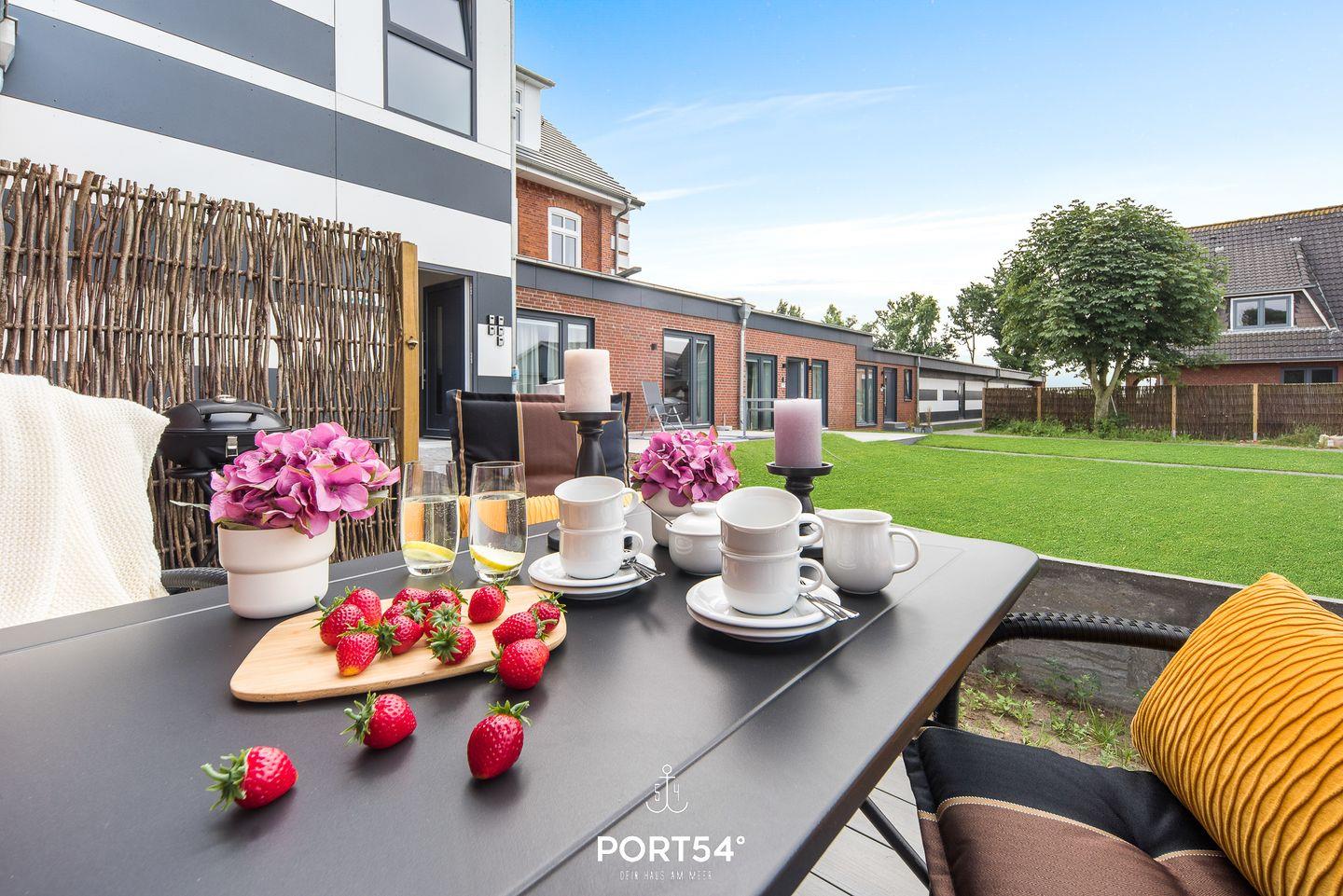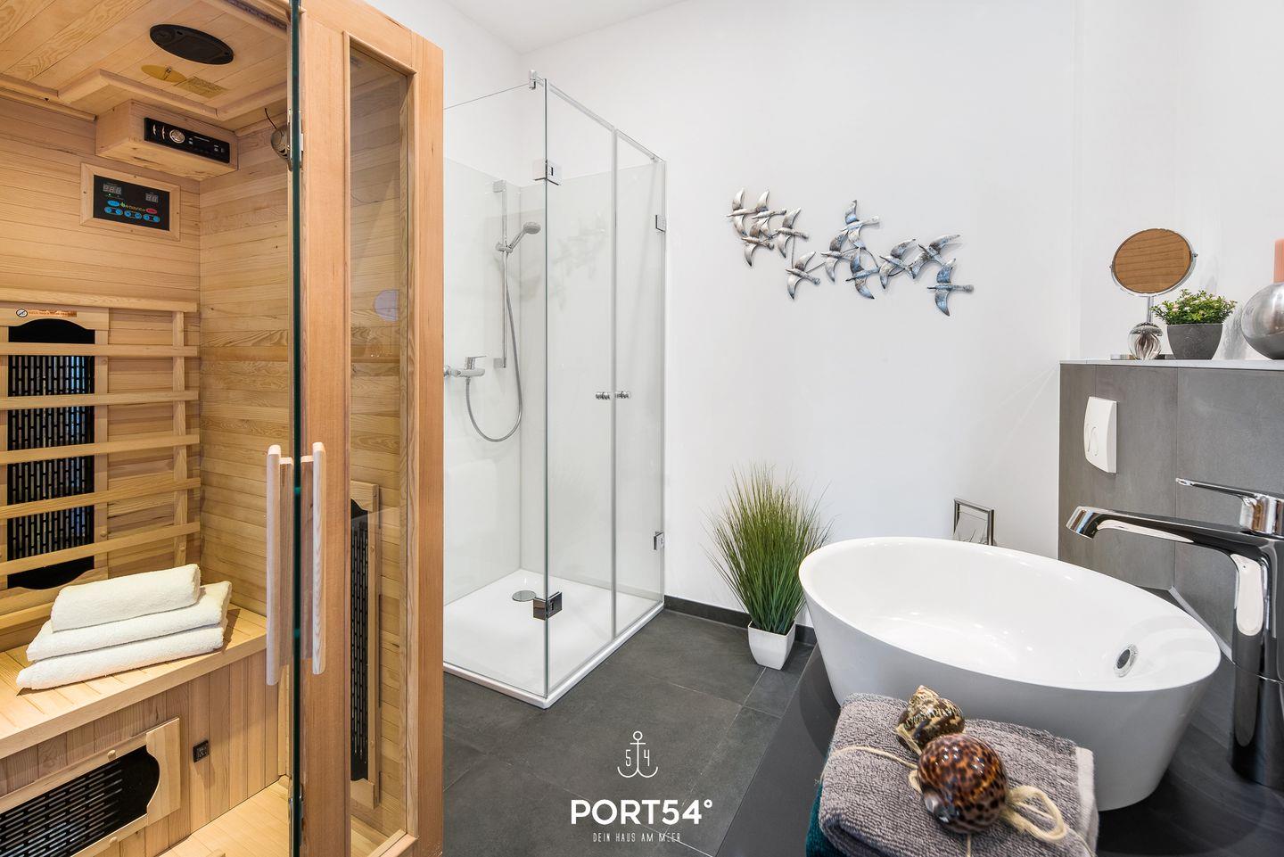 In dem geräumigen Wohnzimmer mit offener Küche können Sie es sich gemütlich machen. Die Küche ist modern und voll ausgestattet, sodass Sie hier wunderbar kochen können. Auf der angrenzenden Sonnenterrasse mit einem Gemeinschaftsgarten können Sie Ihren Kaffee genießen oder bei einem gemeinsamen Grillabend zusammensitzen und herrliche Stunden an der frischen Nordseeluft verbringen. Ein Elektrogrill steht hierfür zur Verfügung. Die beiden Schlafzimmer sind hochwertig eingerichtet. Das eine Zimmer verfügt über ein Doppelboxspringbett (180x200cm) und das andere über ein kleines Doppelboxspringbett (140x200cm). Beide Schlafzimmer sind mit einem TV ausgerüstet. Für weitere 2 Personen steht im Wohnzimmer ein gemütliches Schlafsofa zur Verfügung. Des Weiteren bietet Ihnen der "Nachtschwärmer" einen großen Möbeltresor für Ihre Wertgegenstände. Das helle Badezimmer hat eine Dusche. Außerdem verfügt es über eine Infrarot-Sauna, in der Sie sich nach einer anstrengenden Wattwanderung oder einer Fahrradtour erholen können. Die gesamte Wohnung verfügt über eine Fußbodenheizung.
