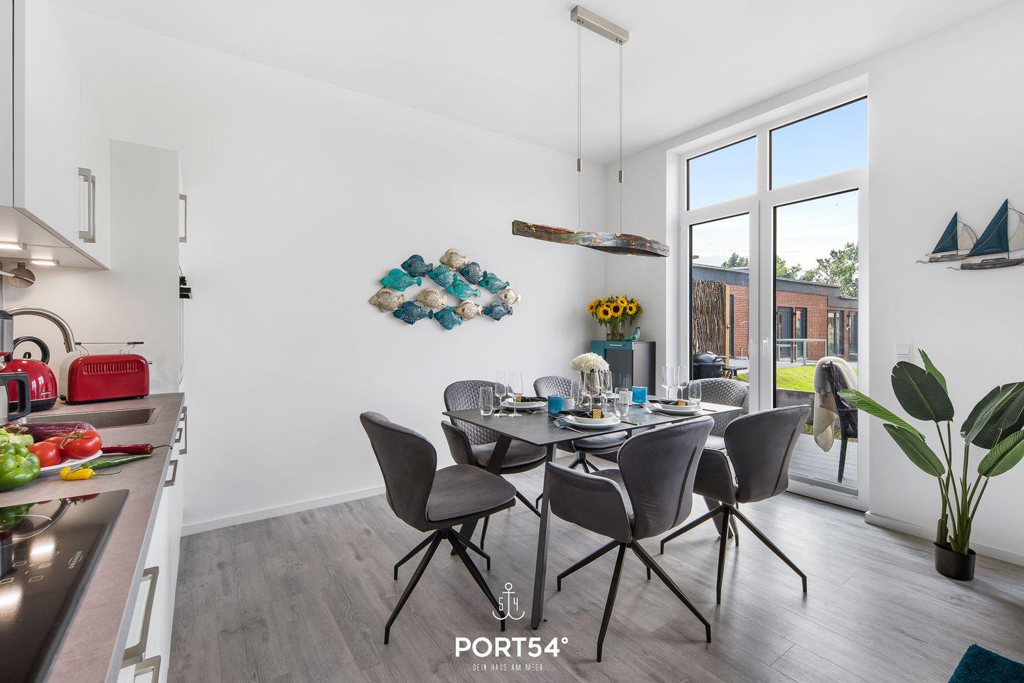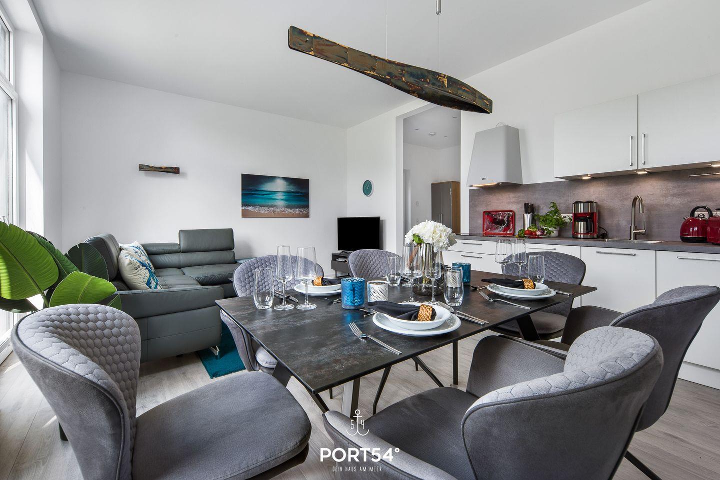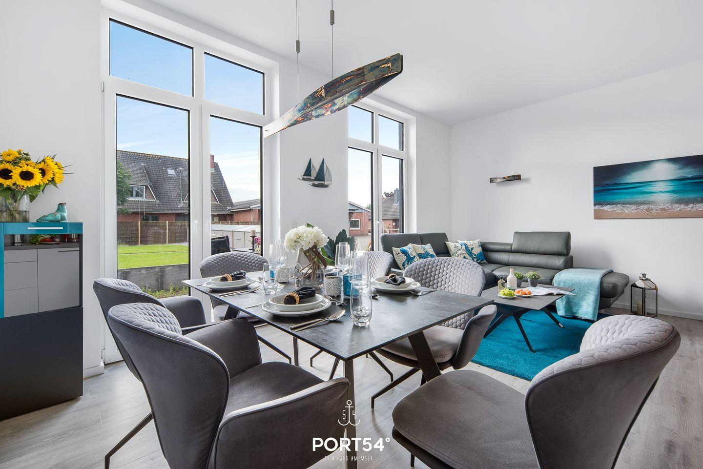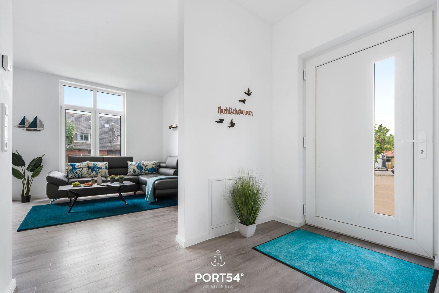 In dem geräumigen Wohnzimmer mit offener Küche können Sie es sich gemütlich machen. Die Küche ist modern und voll ausgestattet, sodass Sie hier wunderbar kochen können. Auf der angrenzenden Sonnenterrasse mit einem Gemeinschaftsgarten können Sie Ihren Kaffee genießen oder bei einem gemeinsamen Grillabend zusammensitzen und herrliche Stunden an der frischen Nordseeluft verbringen. Ein Elektrogrill steht hierfür zur Verfügung. Die beiden Schlafzimmer sind hochwertig eingerichtet. Das eine Zimmer verfügt über ein Doppelboxspringbett (180x200cm) und das andere über ein kleines Doppelboxspringbett (140x200cm). Beide Schlafzimmer sind mit einem TV ausgerüstet. Für weitere 2 Personen steht im Wohnzimmer ein gemütliches Schlafsofa zur Verfügung. Des Weiteren bietet Ihnen der "Nachtschwärmer" einen großen Möbeltresor für Ihre Wertgegenstände. Das helle Badezimmer hat eine Dusche. Außerdem verfügt es über eine Infrarot-Sauna, in der Sie sich nach einer anstrengenden Wattwanderung oder einer Fahrradtour erholen können. Die gesamte Wohnung verfügt über eine Fußbodenheizung.