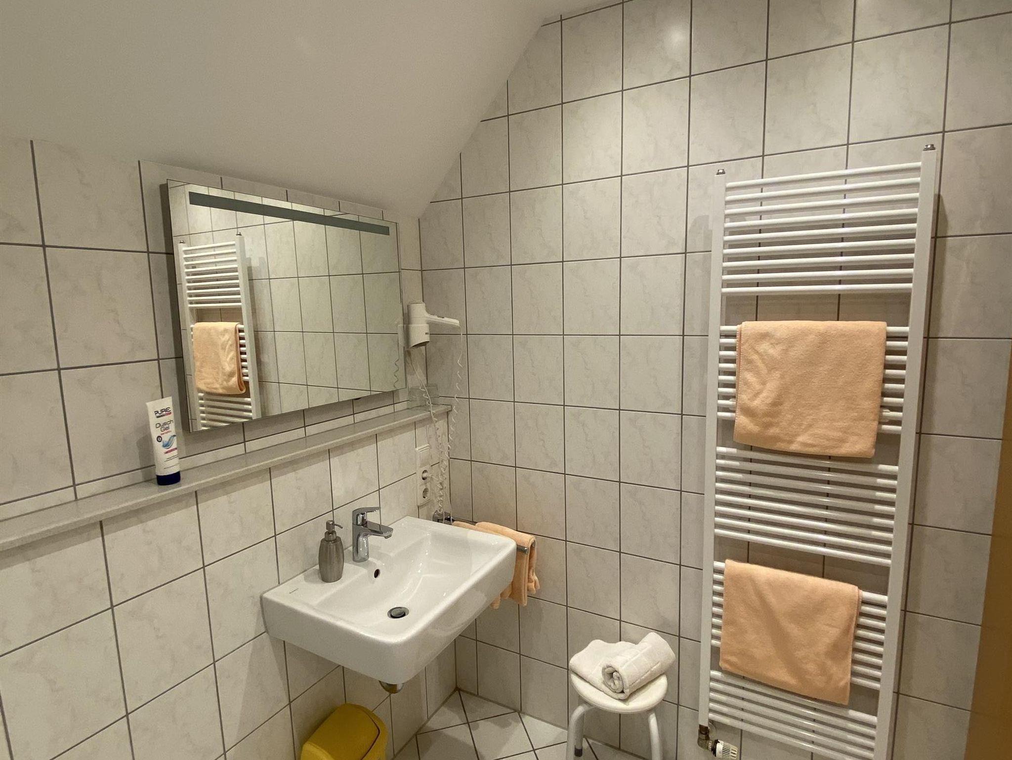 Die Handtücher kommen mitunter sehr ausgefranst daher, sie sind steinalt und müssten durch neue Exemplare ersetzt werden. Das eigentlich weiße große Badetuch war bunt verfärbt.