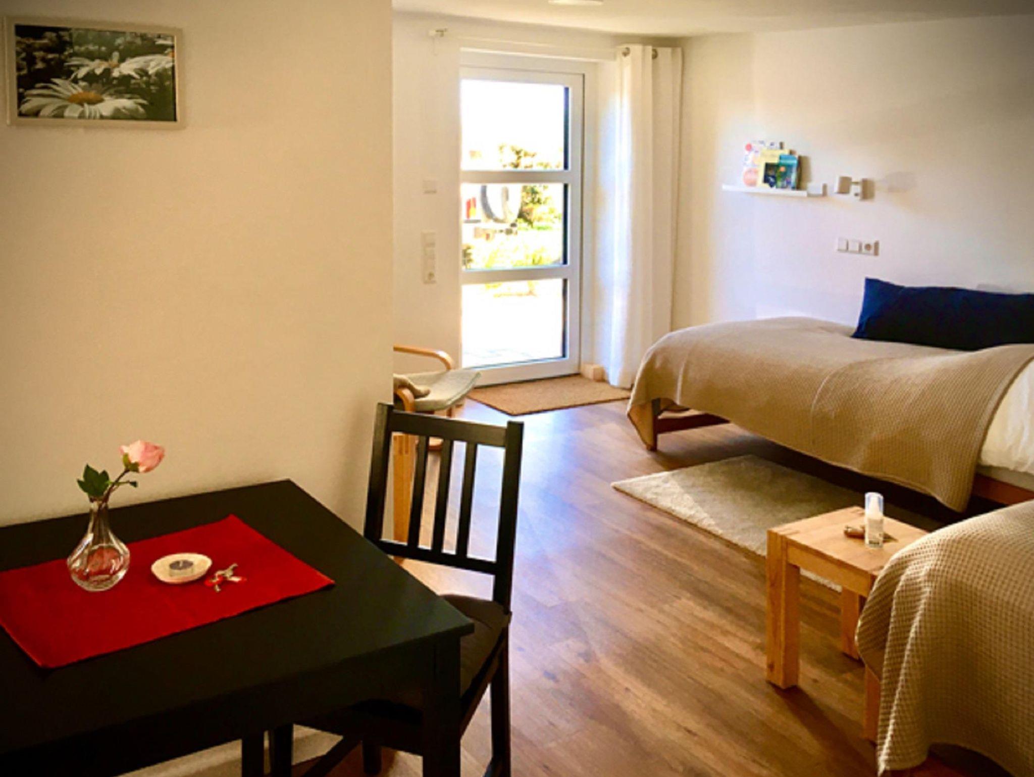 JOHANNA (28 m²) ist ein komplett ebenerdiges, modern eingerichtetes Ein-Zimmer-Apartment mit einem 7,5 m² großen Bad. Im Wohnbereich verfügen Sie über: 1 bis 2 komfortable Betten (je nach Belegung), Küche (mit Herd, Kühlschrank, Wasserkocher, Kaffeemaschine und Toaster), Garderobe, Sitzecke, Sat-TV und W-LAN. Vor Ihrer separaten Haustür steht Ihnen ein eigener Park- und Sitzplatz zur Verfügung. Aufgrund der Türbreiten und Bewegungsflächen ist JOHANNA rollstuhlgeeignet. Weitere Details gerne auf Anfrage.