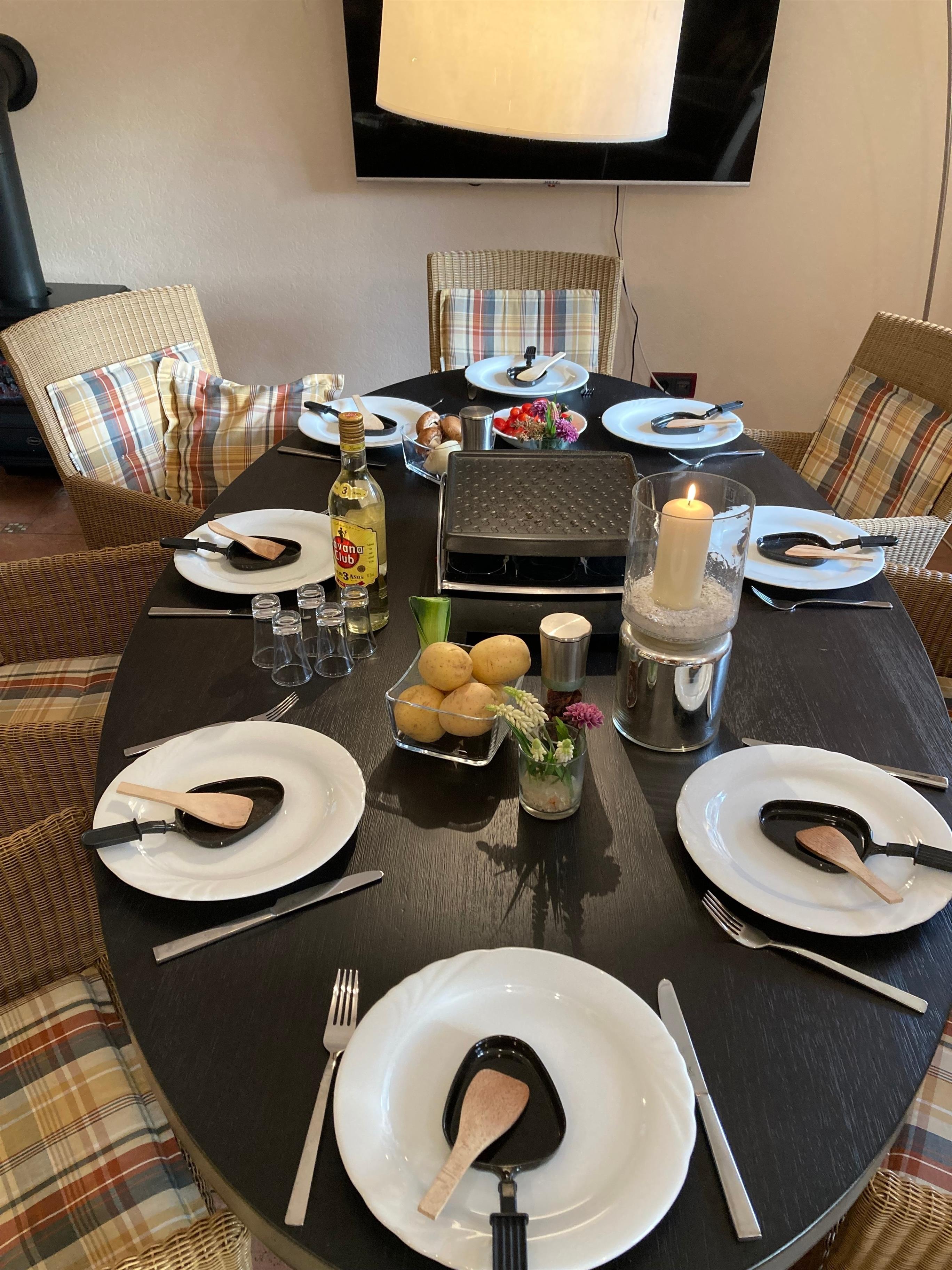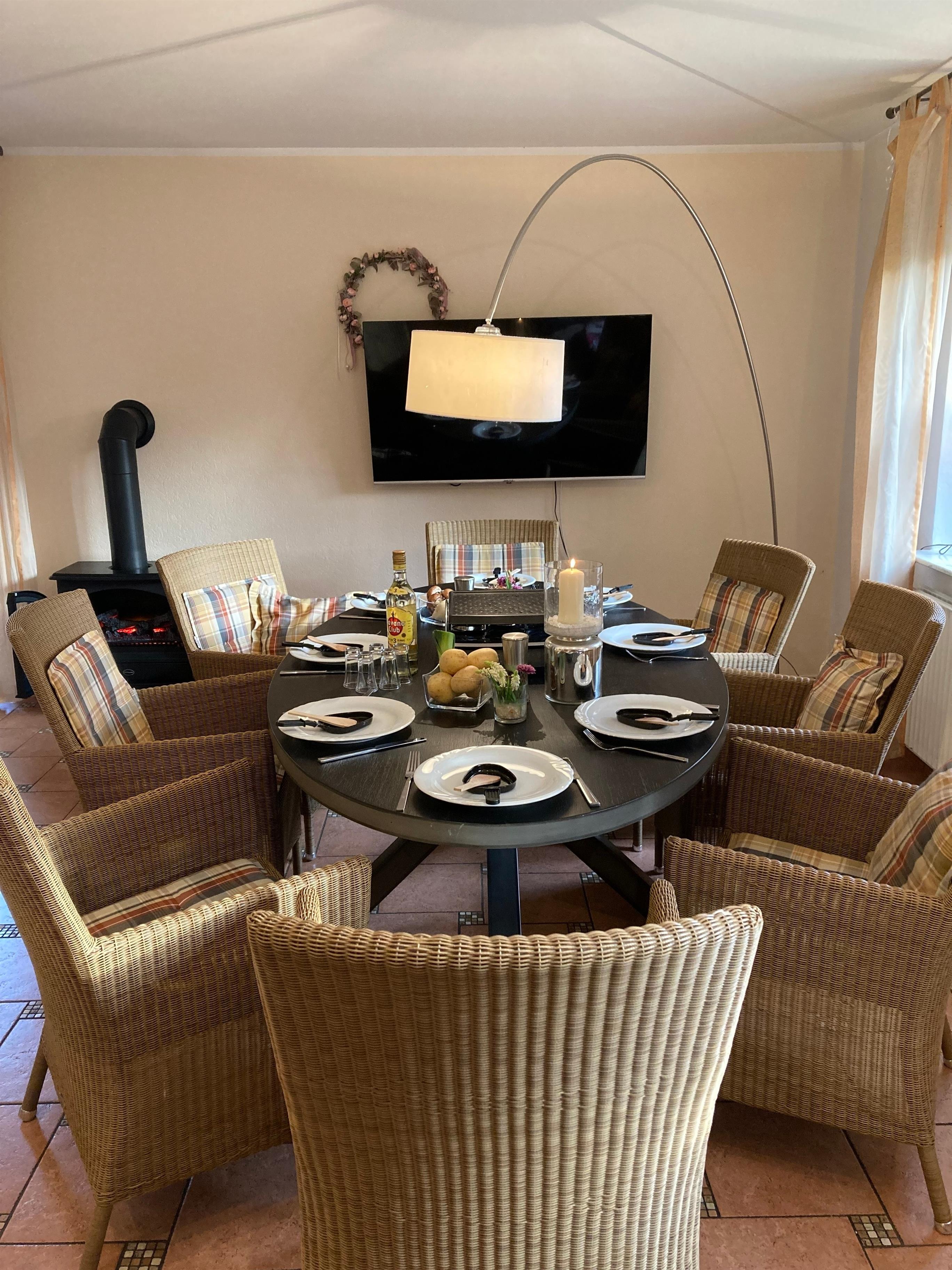 Genießen Sie Ihre Ferien in vollen Zügen, bei schönem Wetter auch gerne draußen auf der Terrasse. Hier lädt ein großer Gartentisch zu gemütlichen Grillabenden ein. Ein Gasgrill steht Ihnen zur Verfügung. Im Urlaub kochen? Los geht´s, die Küche ist gut ausgestattet, natürlich auch mit einer Spülmaschine. Der Mittelpunkt im Wohnbereich ist der große Esstisch mit großem Smart TV. Im Obergeschoss befinden sich 4 gleichwertige Schlafzimmer, jedes Zimmer verfügt über ein separates Badezimmer, ein hochwertiges Boxspringbett (auch als Single Betten zu stellen) und ein Smart TV.
