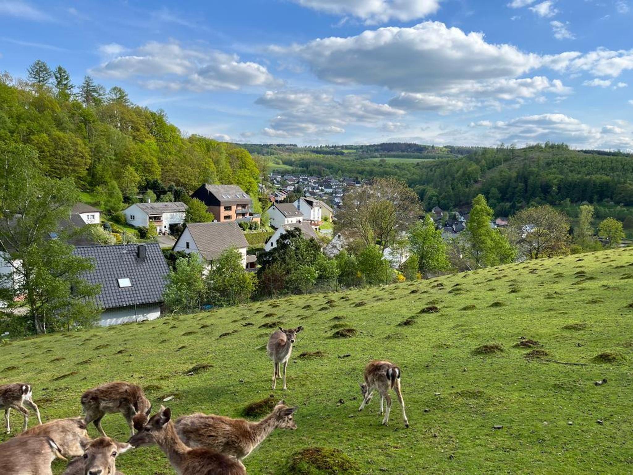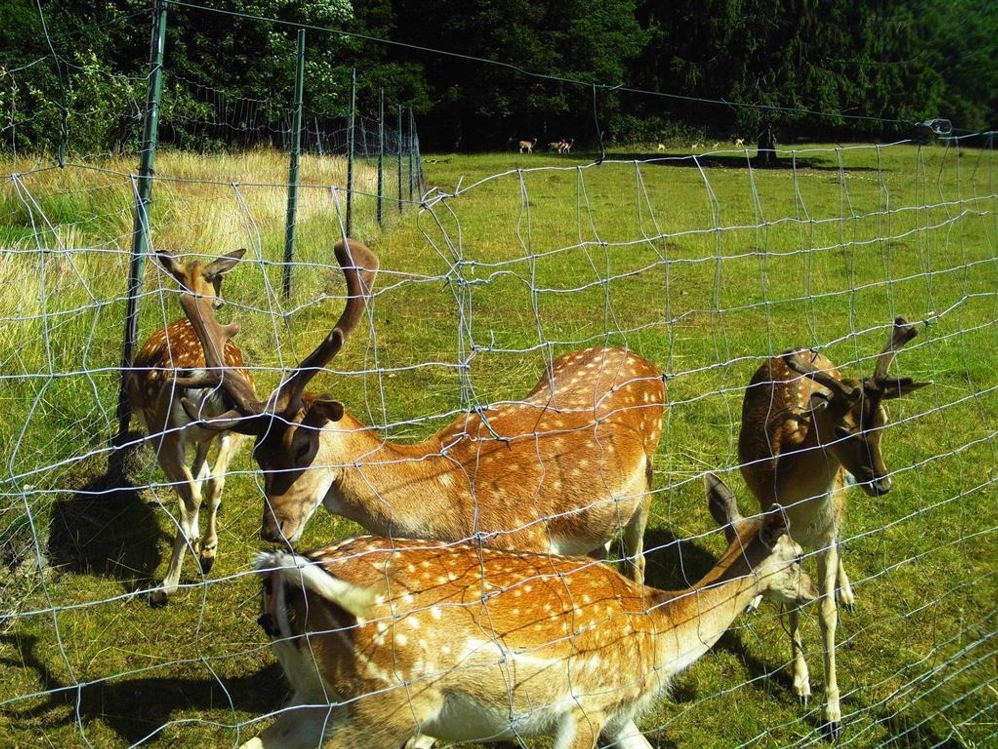 Sie verfügt über ein großes Wohnzimmer und eine Einbauküche, die zum gemeinsamen Kochen und Verweilen einlädt. Mit drei Schlafzimmern – einem mit einem Doppelbett und zwei weiteren mit je zwei Einzelbetten – ist genügend Platz für Familien oder Freunde. Das Tageslichtbad sorgt für ein frisches und angenehmes Ambiente. Durch die Fenster mit Sonnenschutzglas genießen Sie einen herrlichen Ausblick auf ein idyllisches Hirschgehege und den angrenzenden Wald. Das Außengelände, das direkt am Waldrand liegt, bietet eine Sitzecke mit Grillmöglichkeiten, einem Pool mit Liegewiese sowie einen Spielturm und eine Schaukel für die kleinen Gäste.