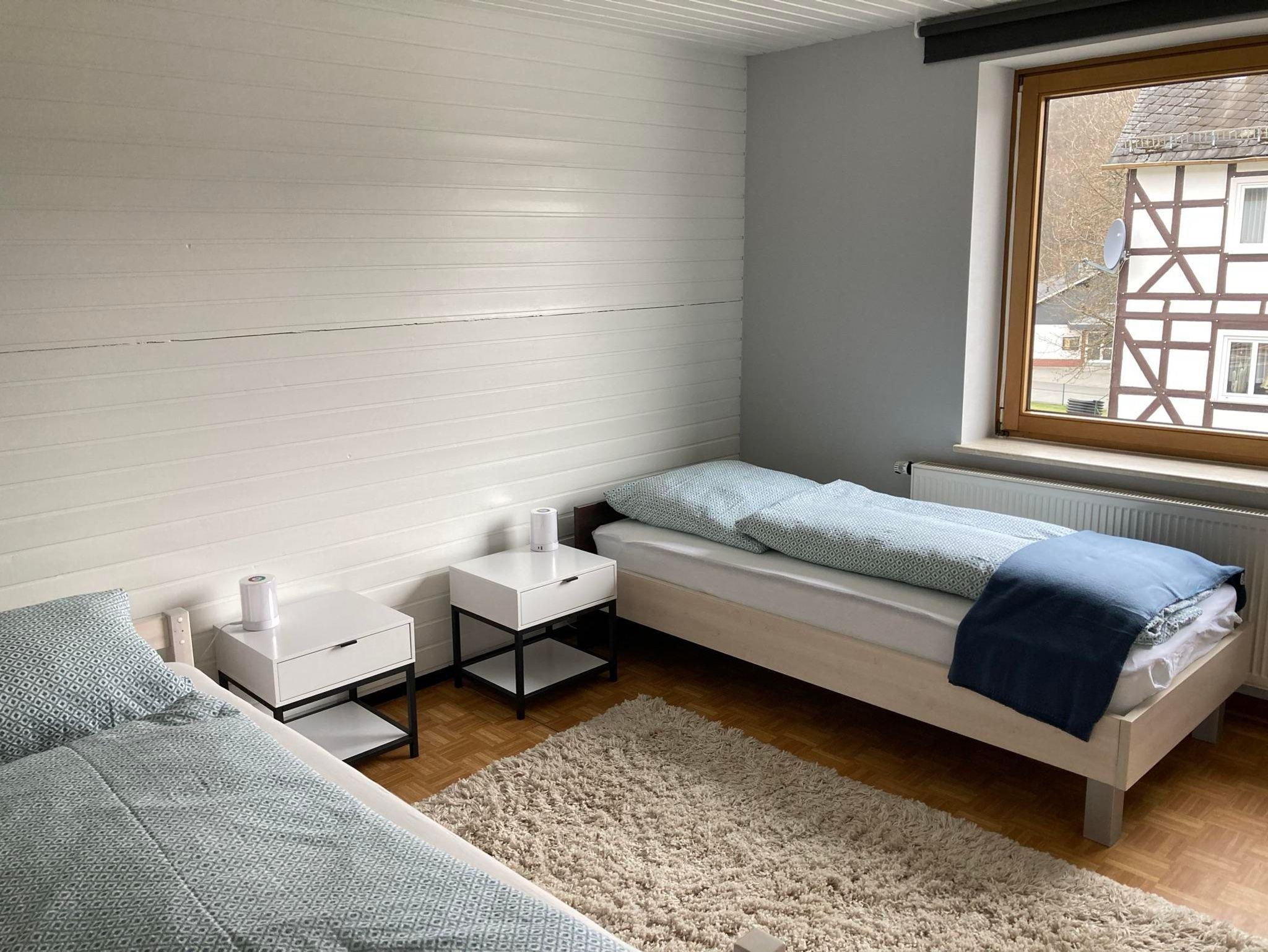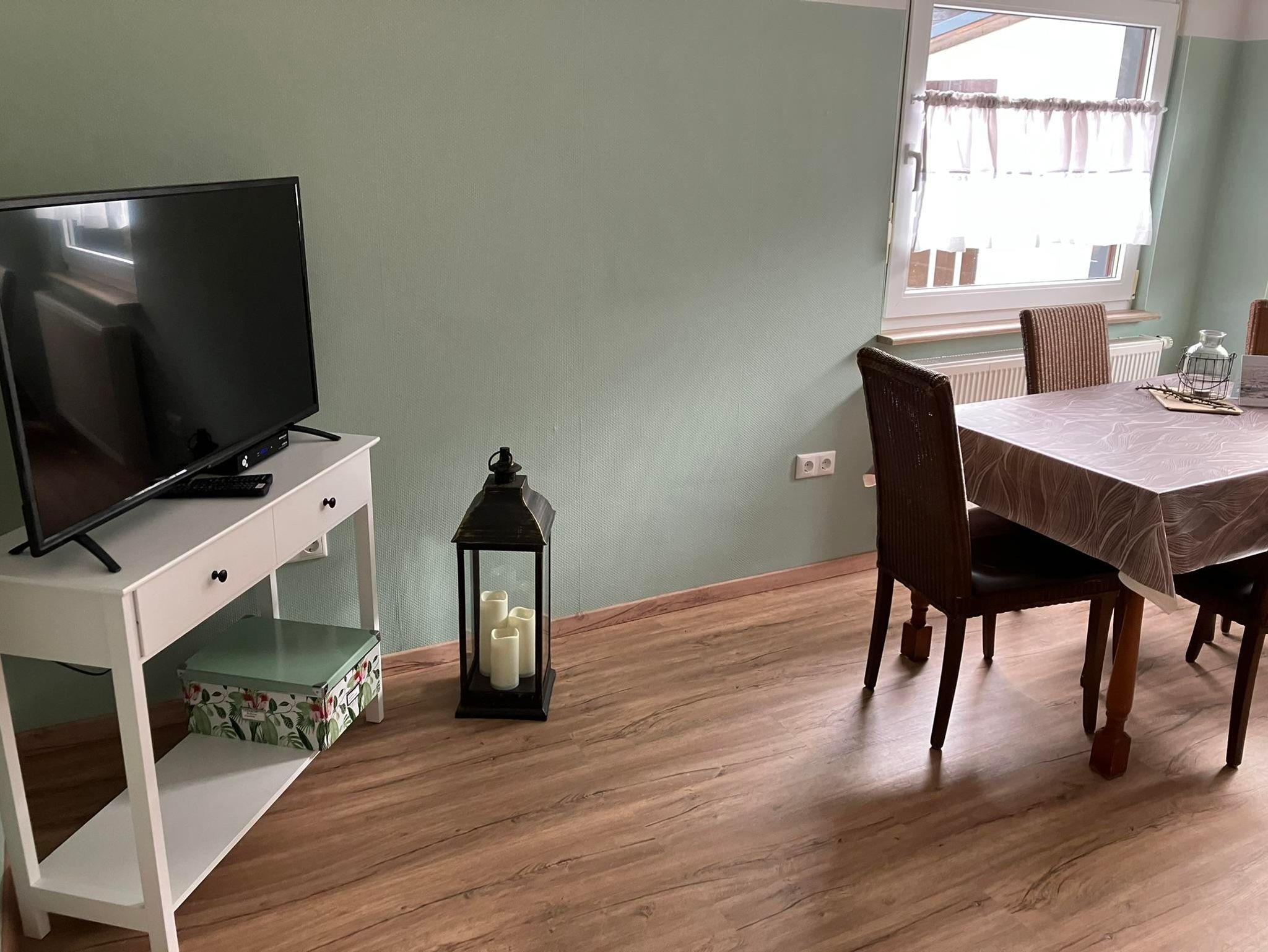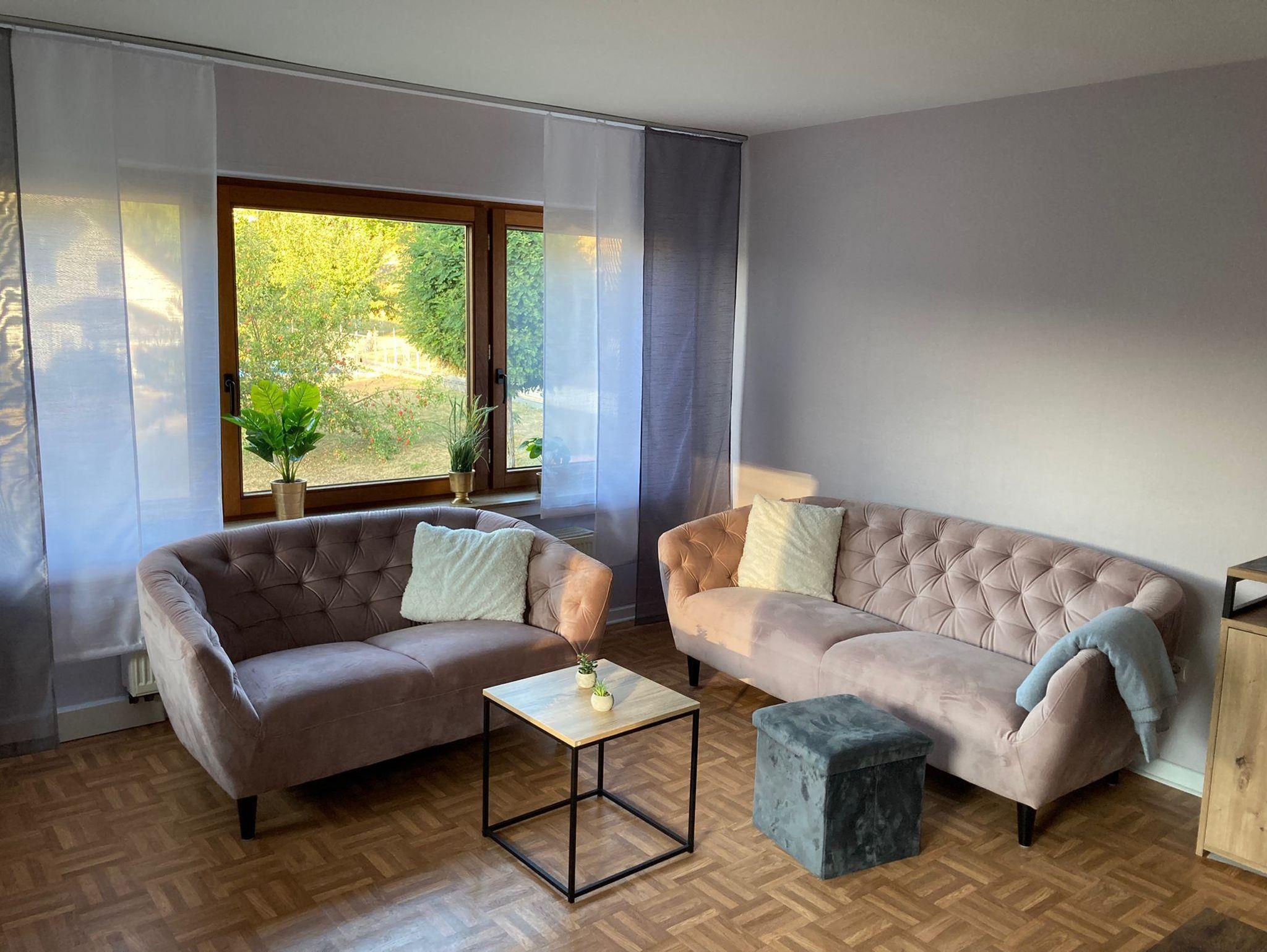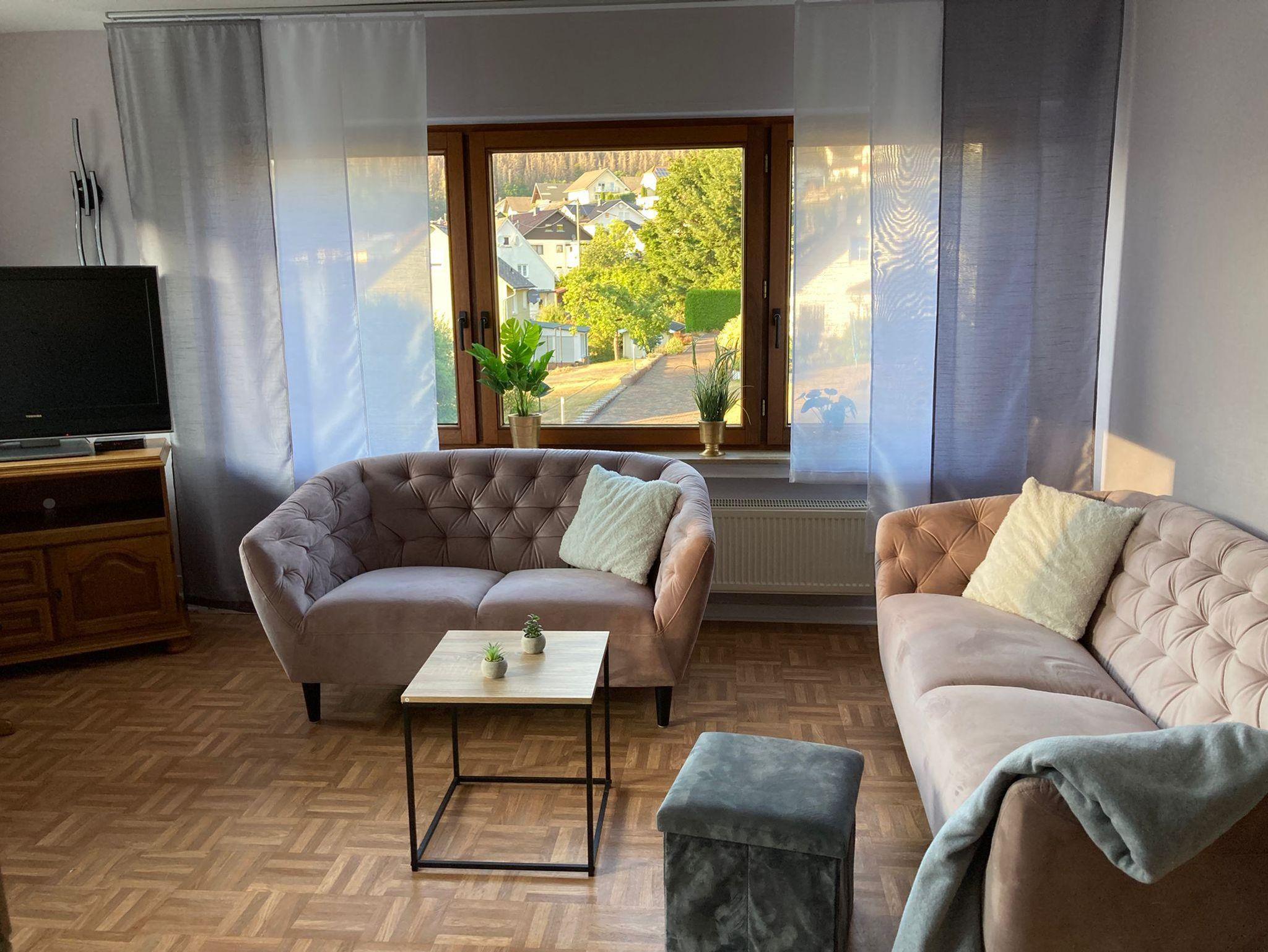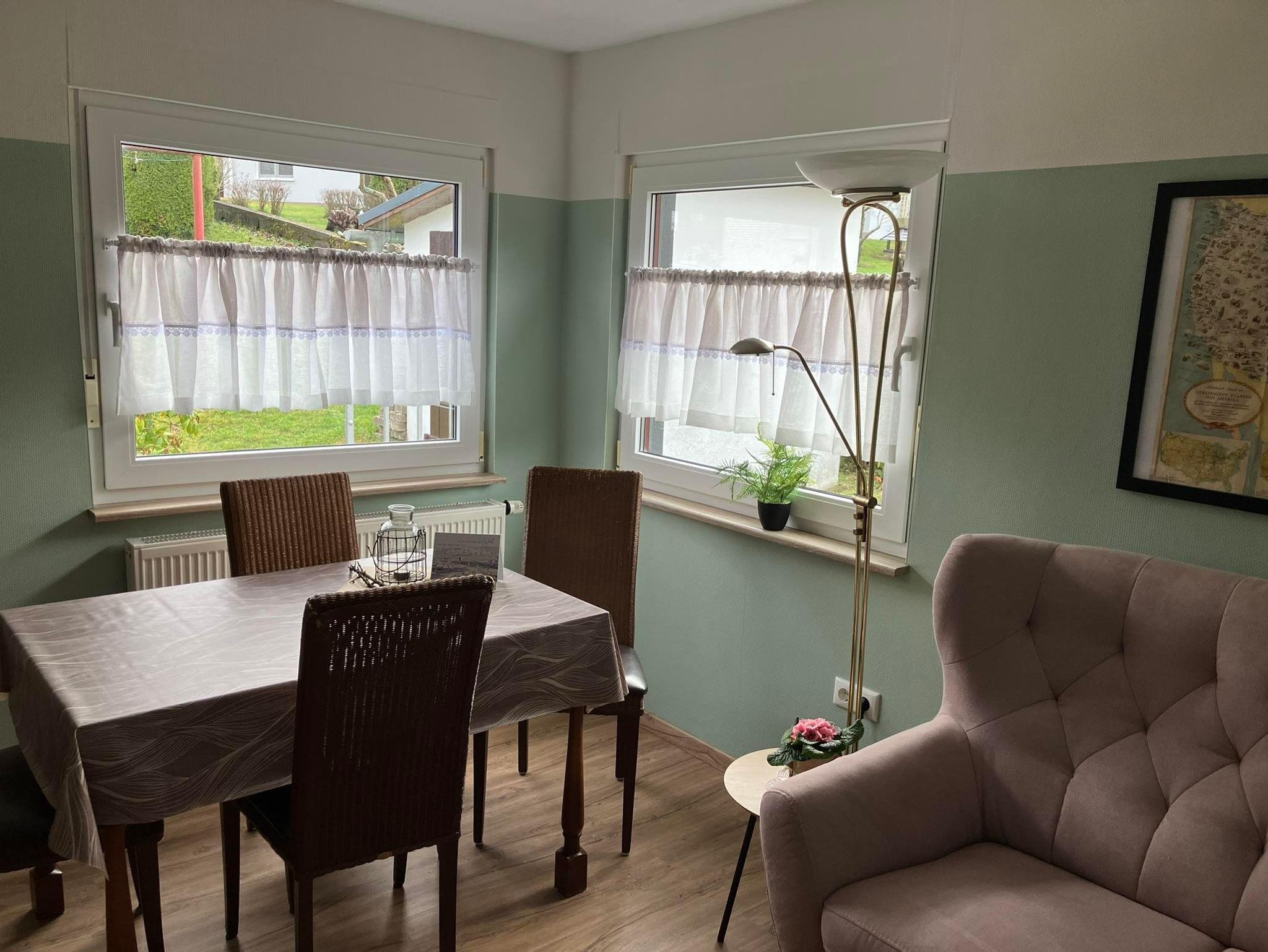 Mitten im Dorf gelegen können Sie aus den Panorama-Fenstern im Wohnzimmer fast ganz Emmerzhausen überblicken. Lehnen Sie sich entspannt zurück und genießen Sie Ihren Aufenthalt in unserer 2022 renovierten Ferienwohnung IRMA.
