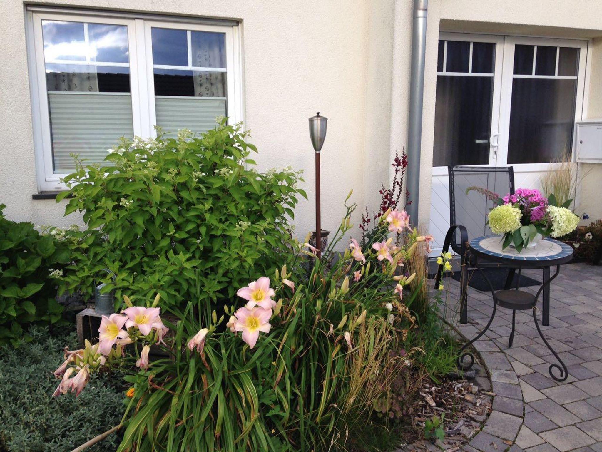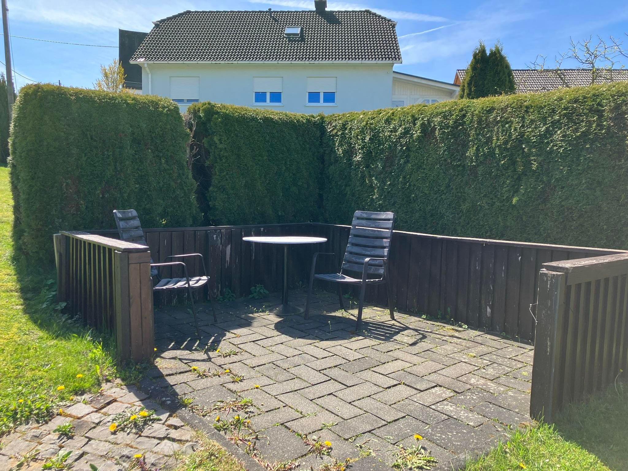 Jeweils im Außenbereich steht Ihnen eine Sitzecke mit Gartenmöbeln zur Verfügung.