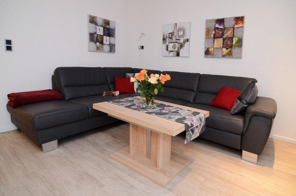 Das elegante und gemütliches Ecksofa ist für einen weiteren Schlafplatz nutzbar.