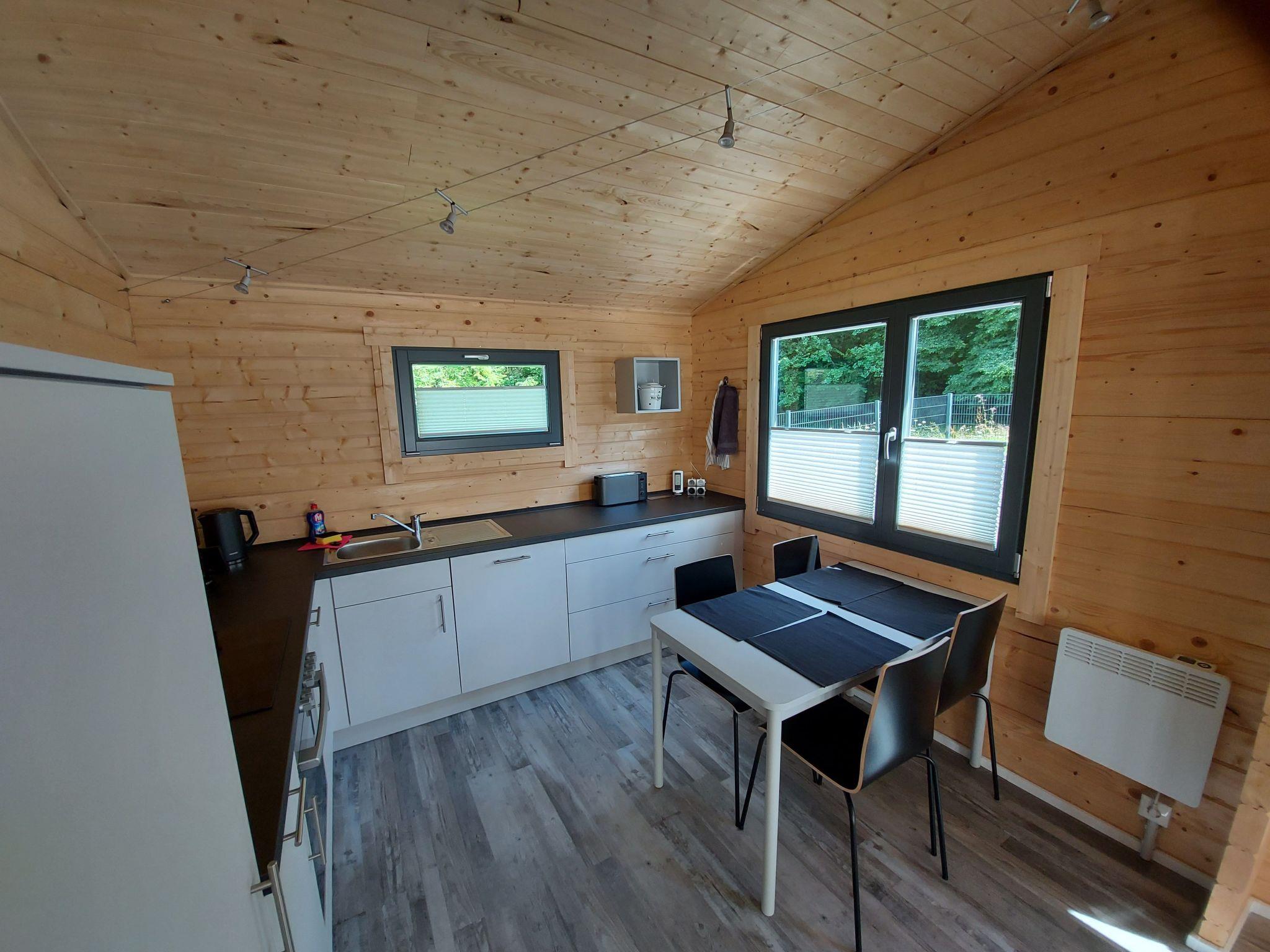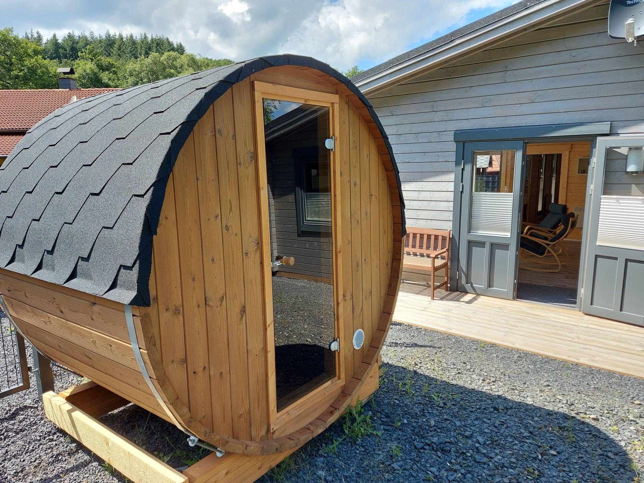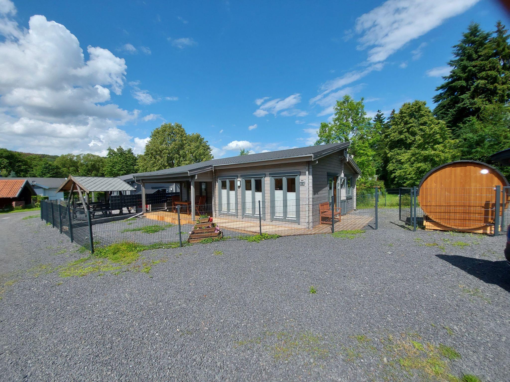 Our holiday home is located in a weekend house area in the Westerwald. The holiday home is available for sole use with a fenced property area of approx. 330 square metres. In the outdoor area there is a terrace sauna for 1-2 persons. The ground is typical Westerwald basalt.