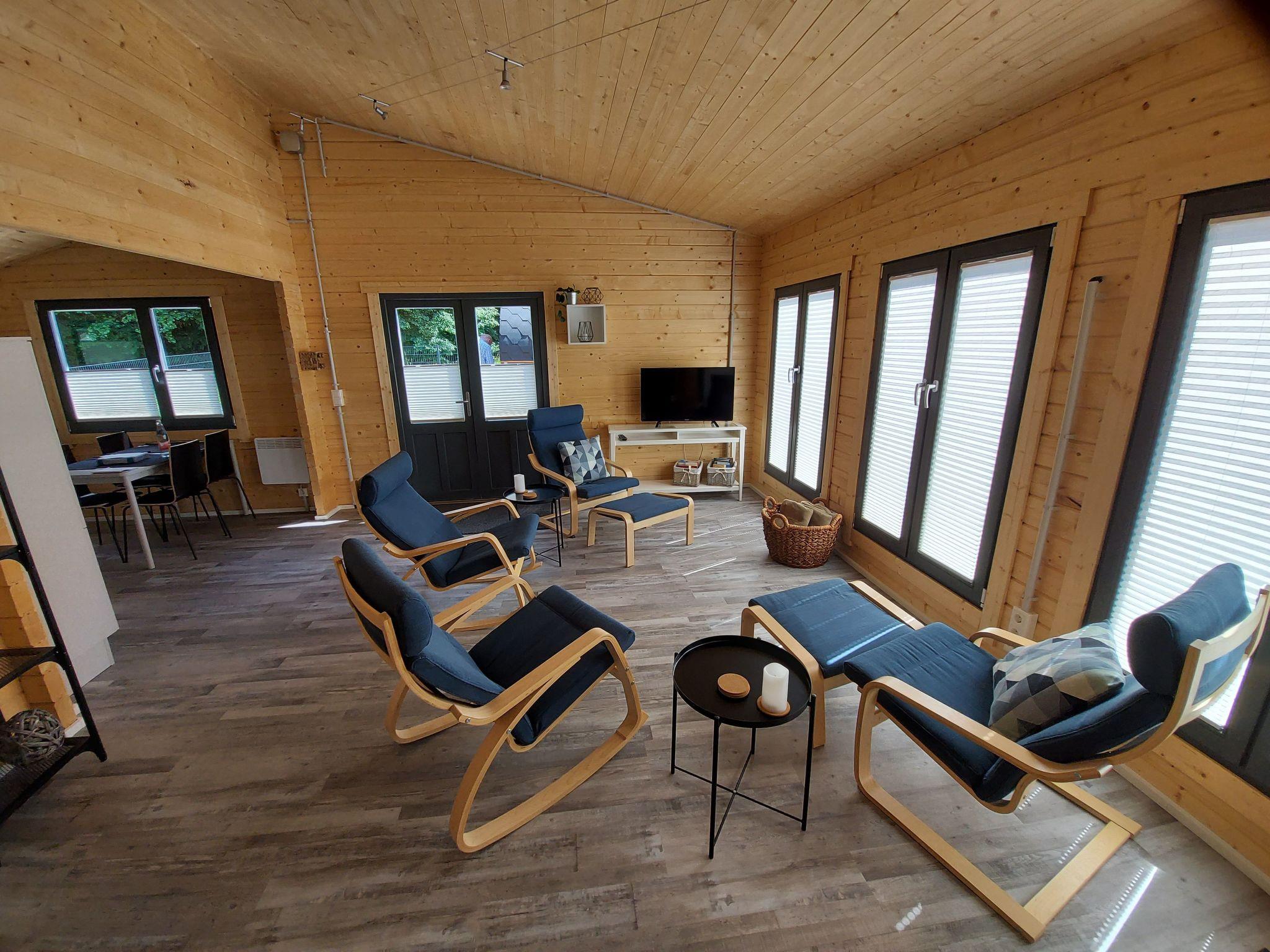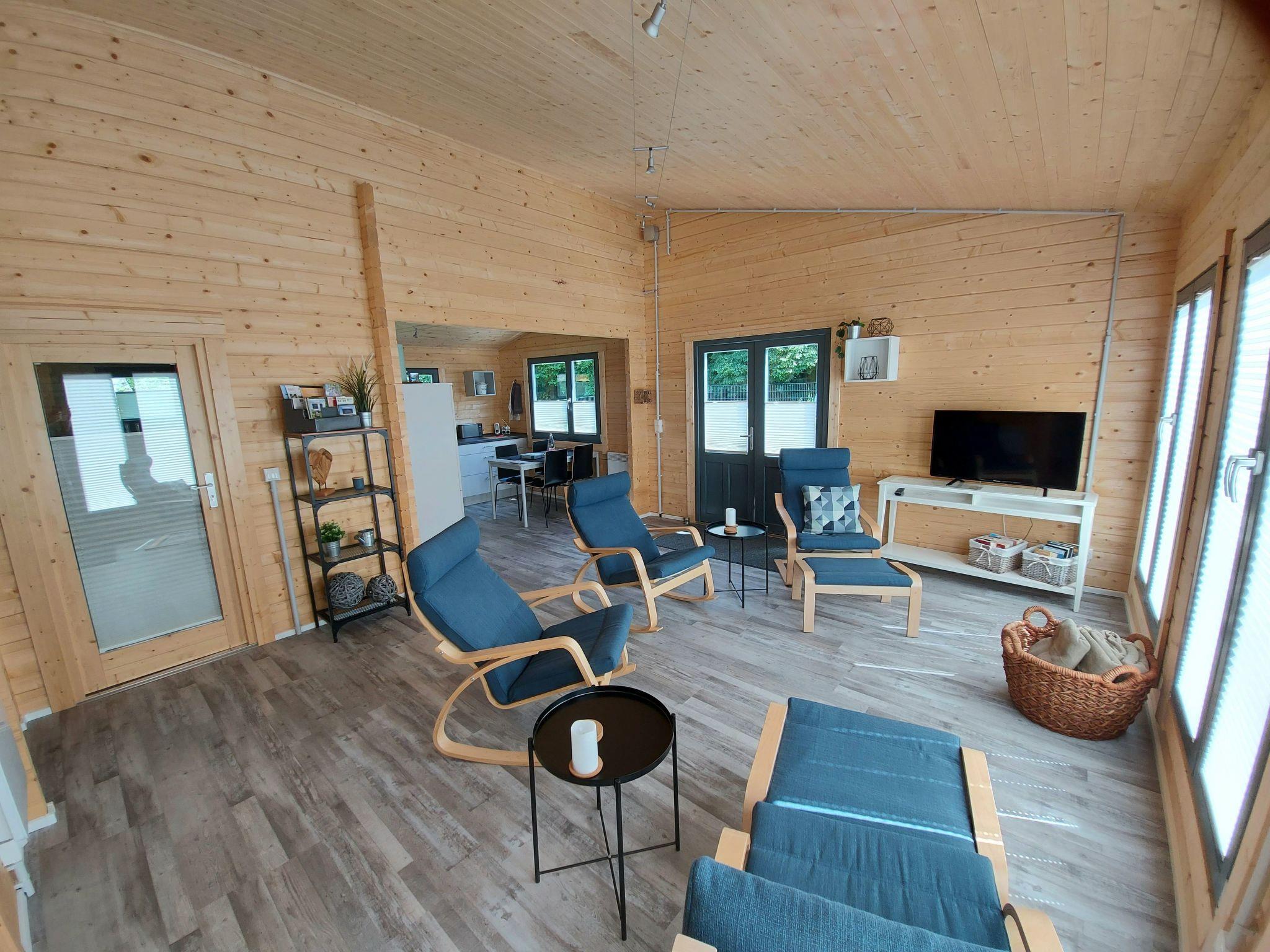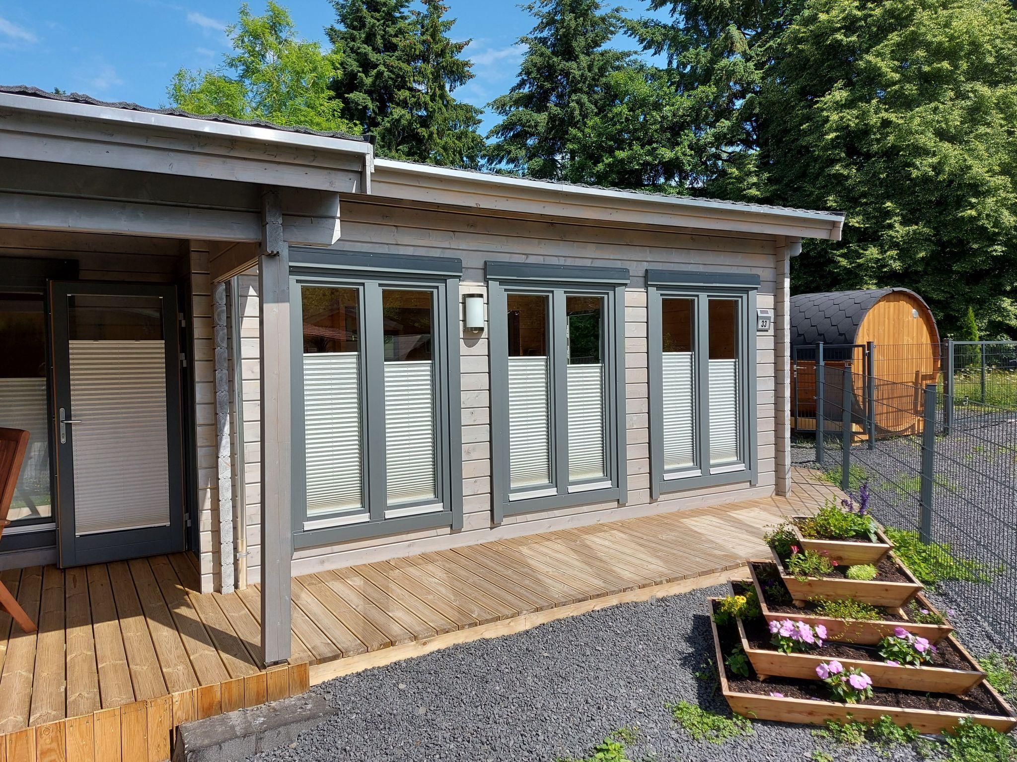 Our holiday home is located in a weekend house area in the Westerwald. The holiday home is available for sole use with a fenced property area of approx. 330 square metres. In the outdoor area there is a terrace sauna for 1-2 persons. The ground is typical Westerwald basalt.