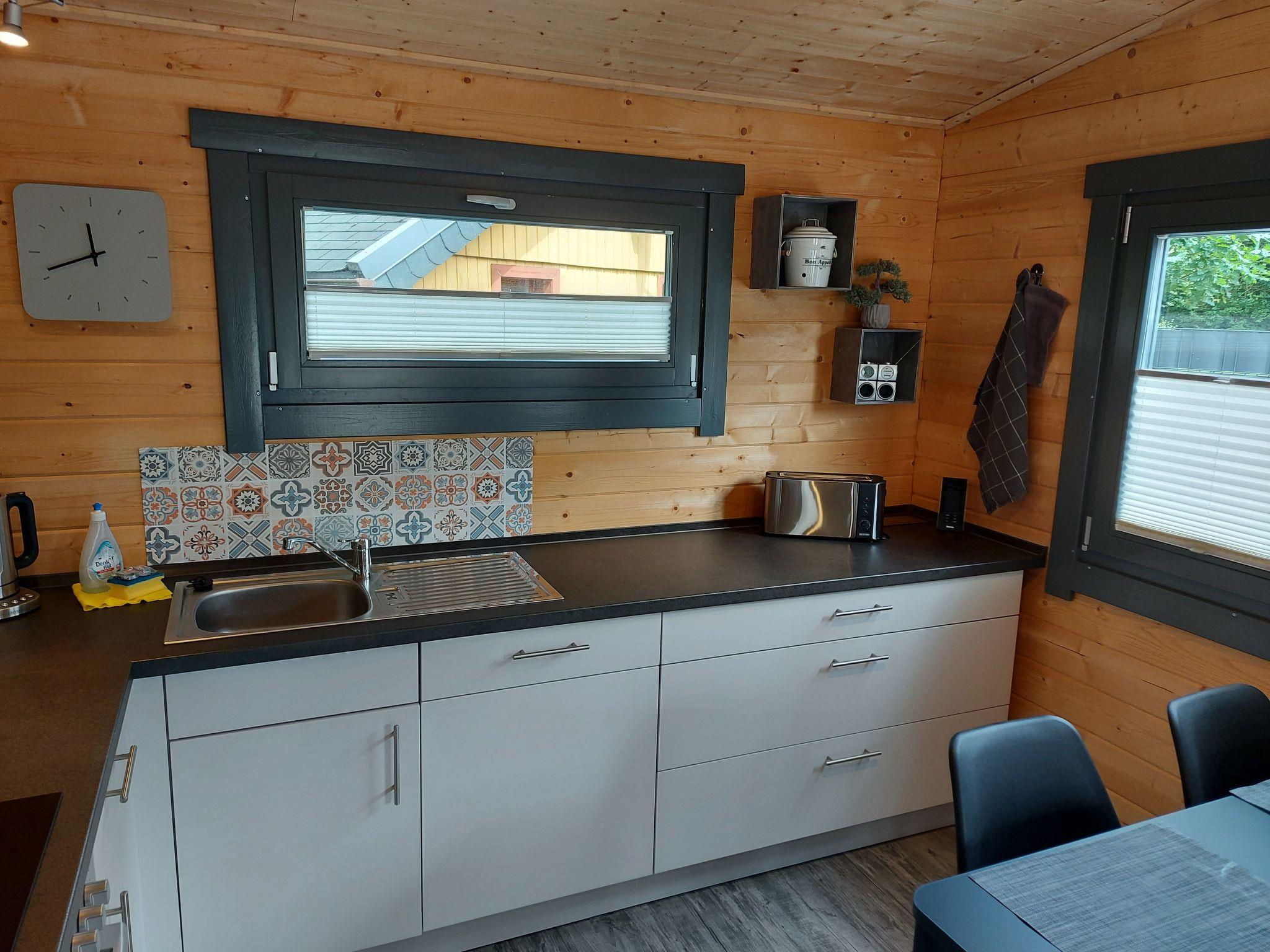 Our holiday home Barbara is located in a weekend house area in the Westerwald. The holiday home is available for sole use with a fenced property area of approx. 330 square metres. There are 2 bedrooms, a bathroom and an open-plan living/dining area. There is also a covered terrace facing south. The weekend home area in 57647 Enspel is located in the northern Rhineland-Palatinate between the towns of Hachenburg, Bad Marienberg and Westerburg. There are several ponds in the immediate vicinity, although these are not open to the public, and shopping facilities, restaurants, a pharmacy and much more can be found approx. 1 km away in the town of Nistertal, which also has train connections to the towns of Hachenburg, Westerburg, Limburg and Cologne.