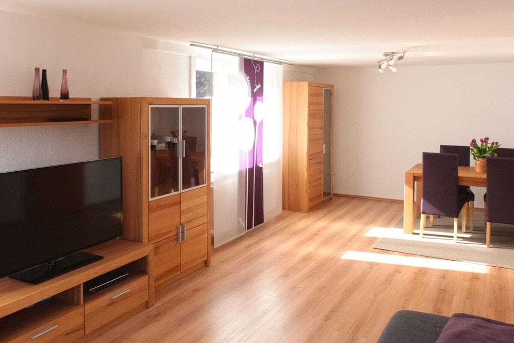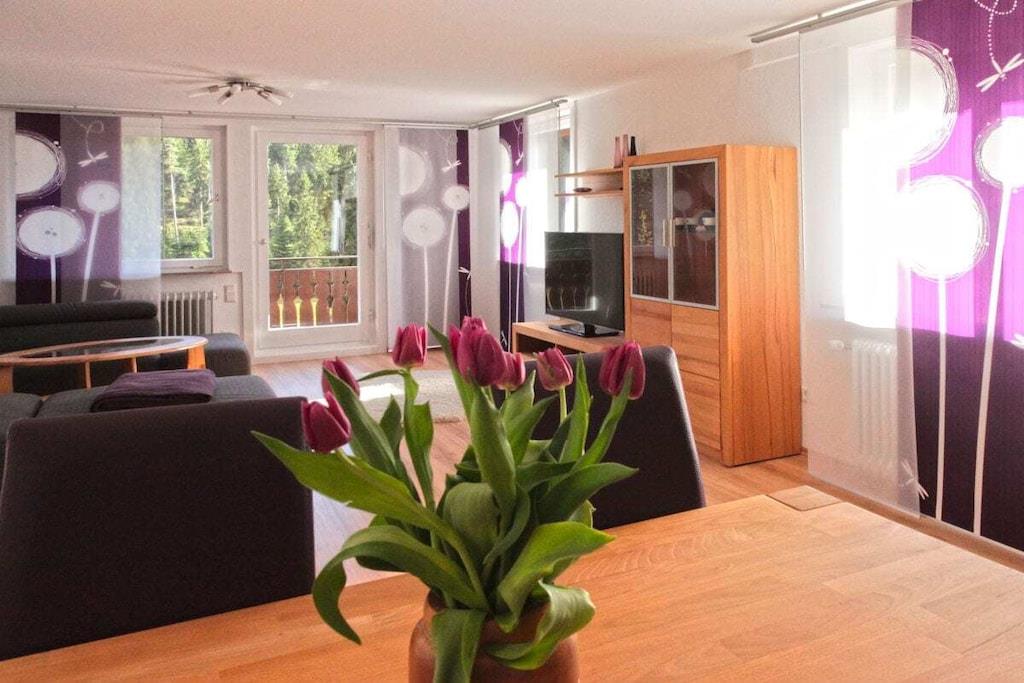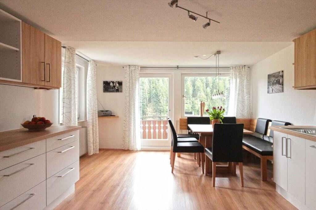 Ferielejligheden i Poppeltal har 2 soveværelser, 1 børneværelse med køjesenge, 1 stor stue, 2 badeværelser og et rummeligt køkken-alrum. Det meget veludstyrede køkken-alrum omfatter et specialbygget køkken i to niveauer med elektrisk ovn, keramisk kogeplade, opvaskemaskine, stor fryser, mikrobølgeovn, elkedel, kaffemaskine og brødrister. Badeværelserne er solidt og moderne udstyrede. De resterende værelser er komfortabelt møbleret med moderne møbler og tilbyder en behagelig opholdsoplevelse for både unge og gamle. Der er masser af service, husholdningsapparater, sengelinned, håndklæder og daglige fornødenheder, ligesom der er siddepladser til balkonen.