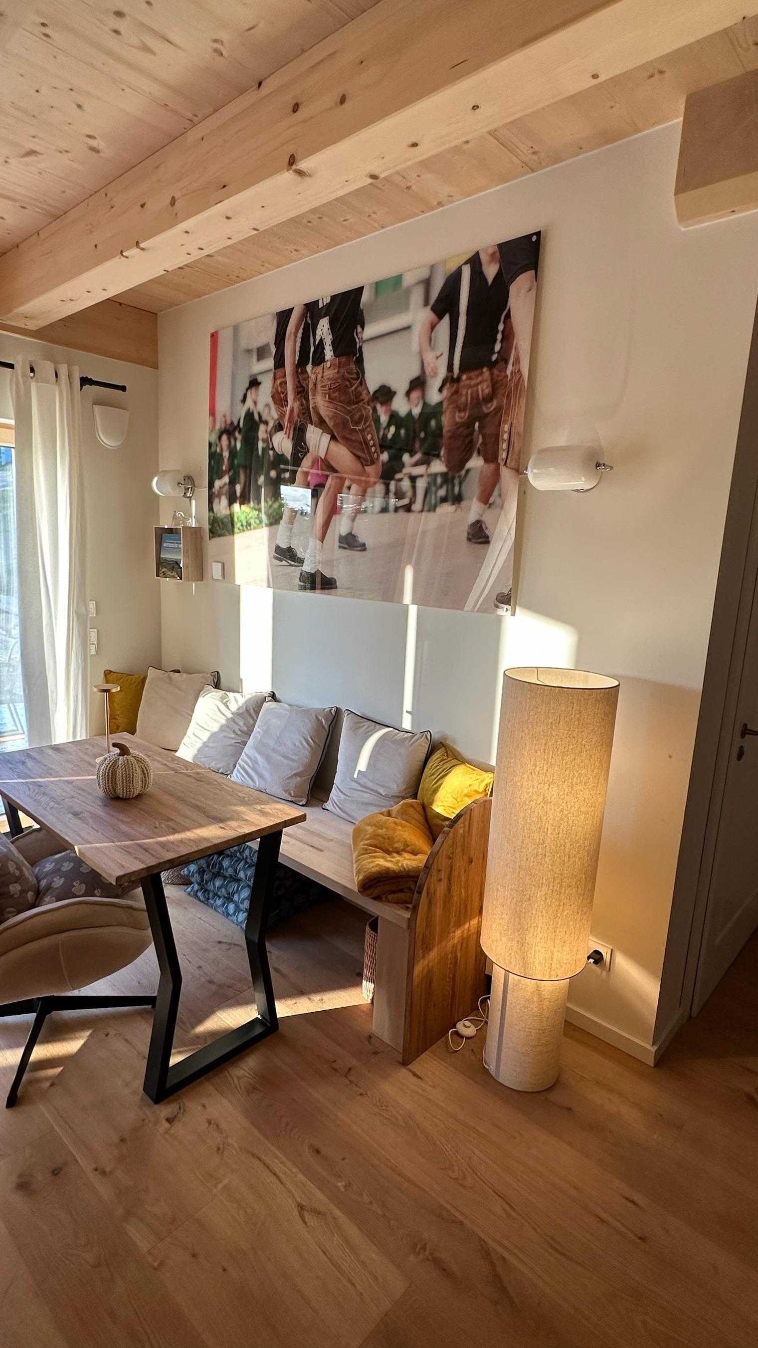 Weitere Annehmlichkeiten (gegen eine kleine Gebühr): Sie können unsere Waschmaschine und den Trockner nutzen, sich für den Tag im Schnee hochwertige Schneeschuhe ausleihen oder auch unseren Gasgrill oder auch den Pizzaofen (Gas). Weiter steht im Apartment eine kleine Auswahl regionaler Weine für Sie bereit.