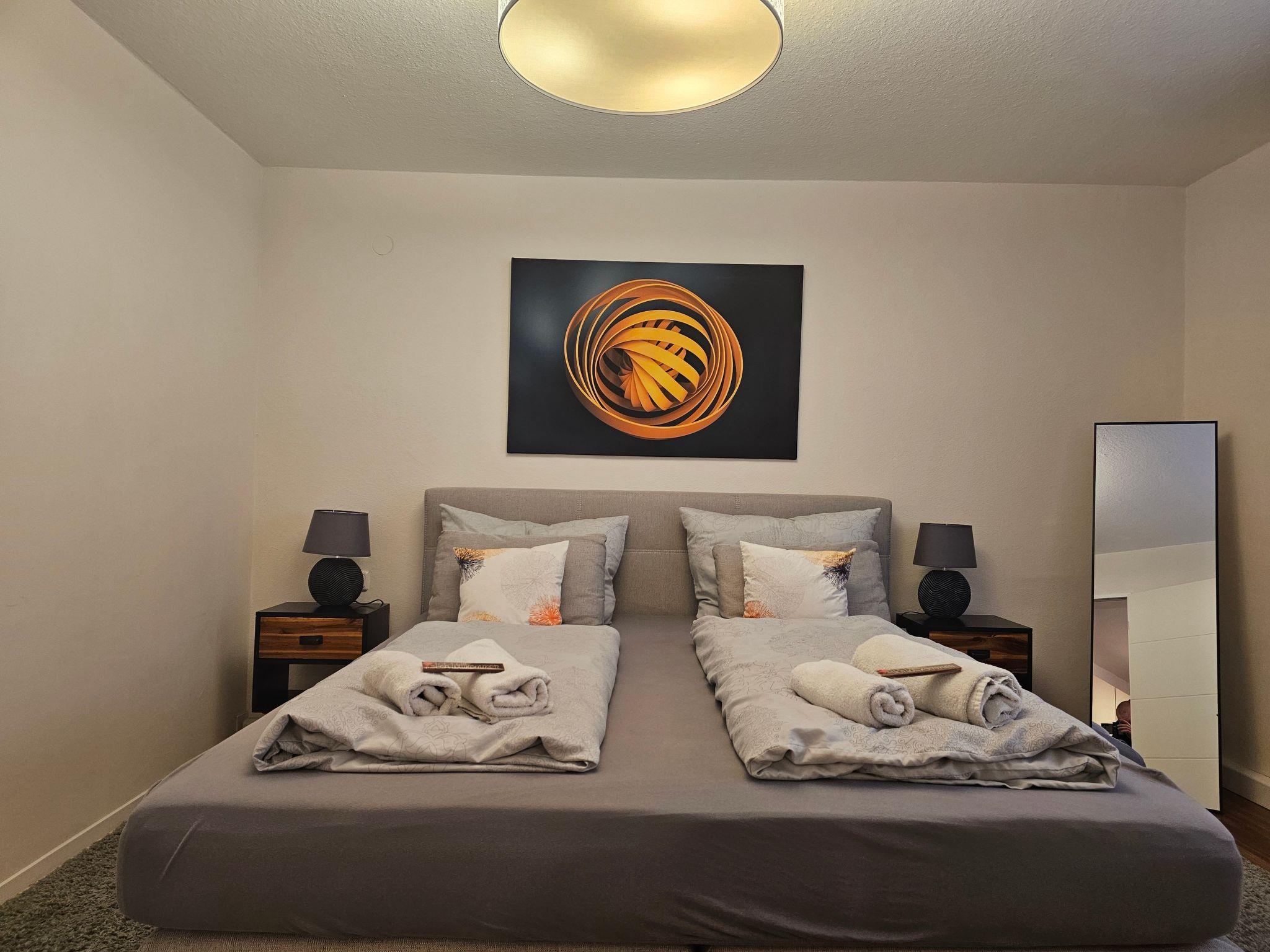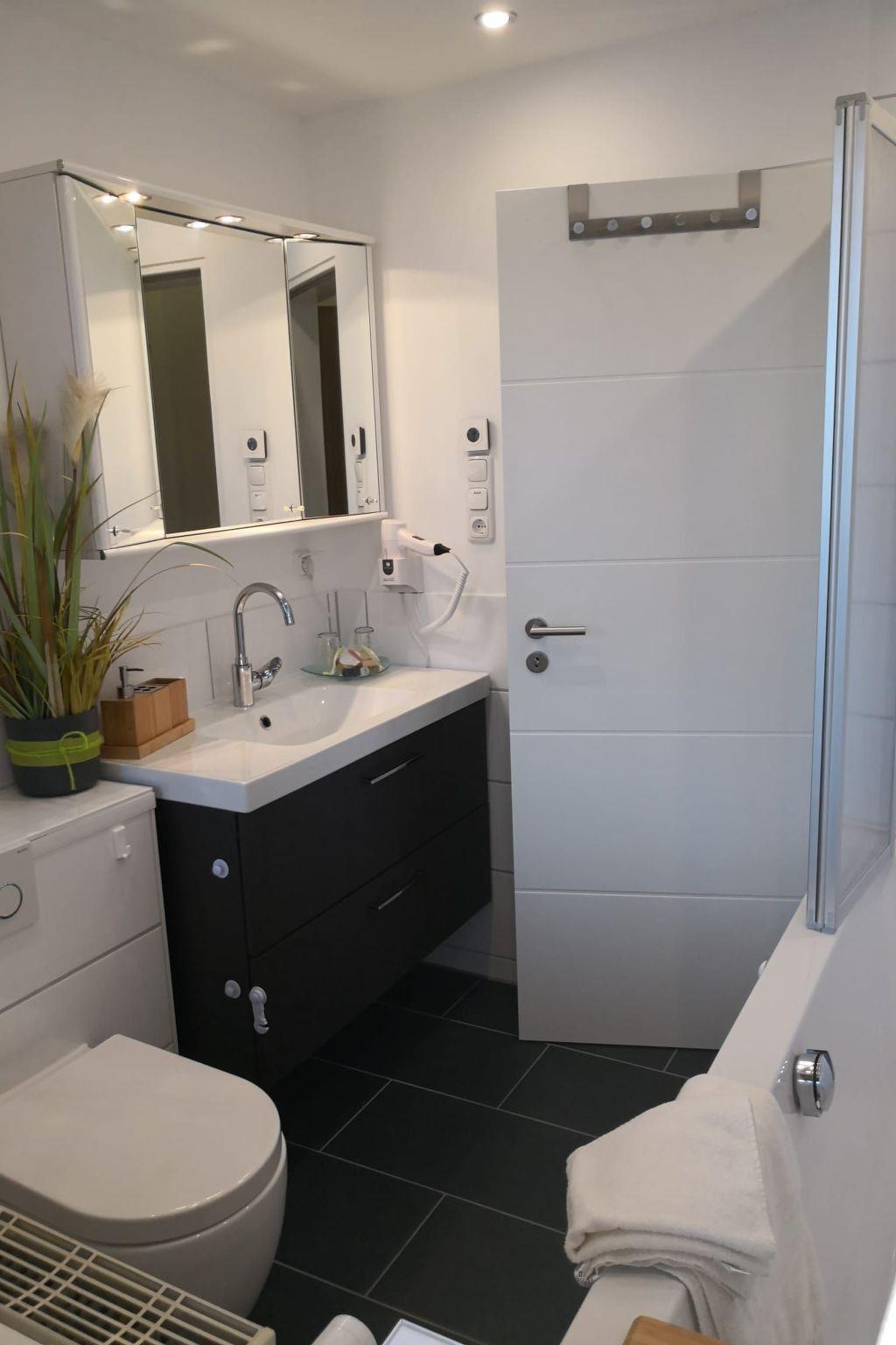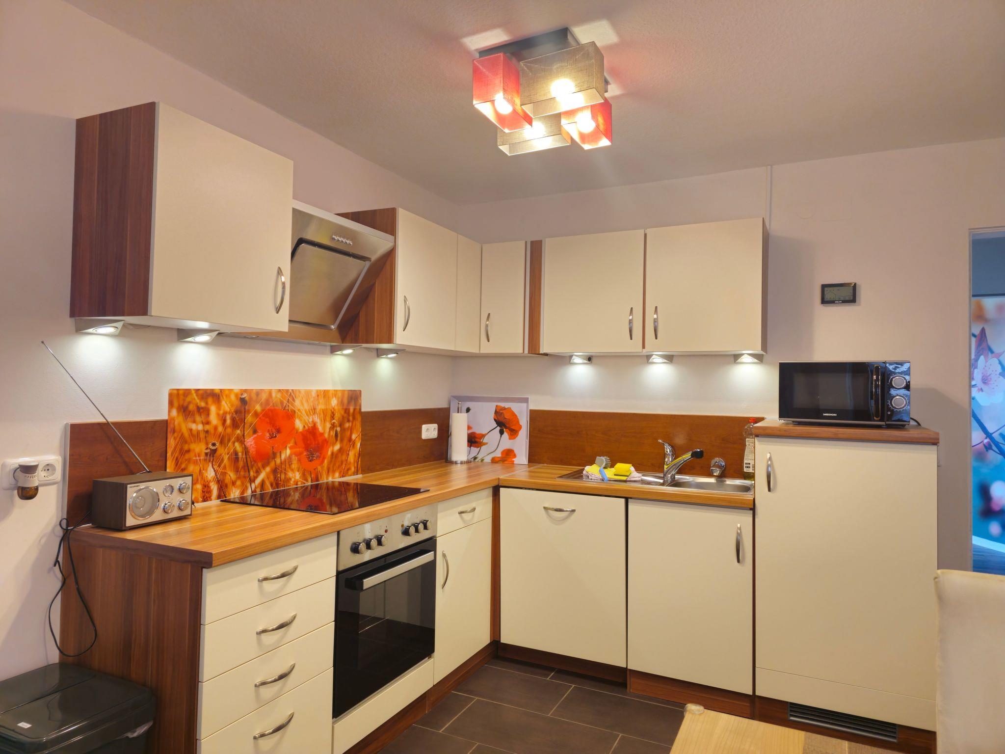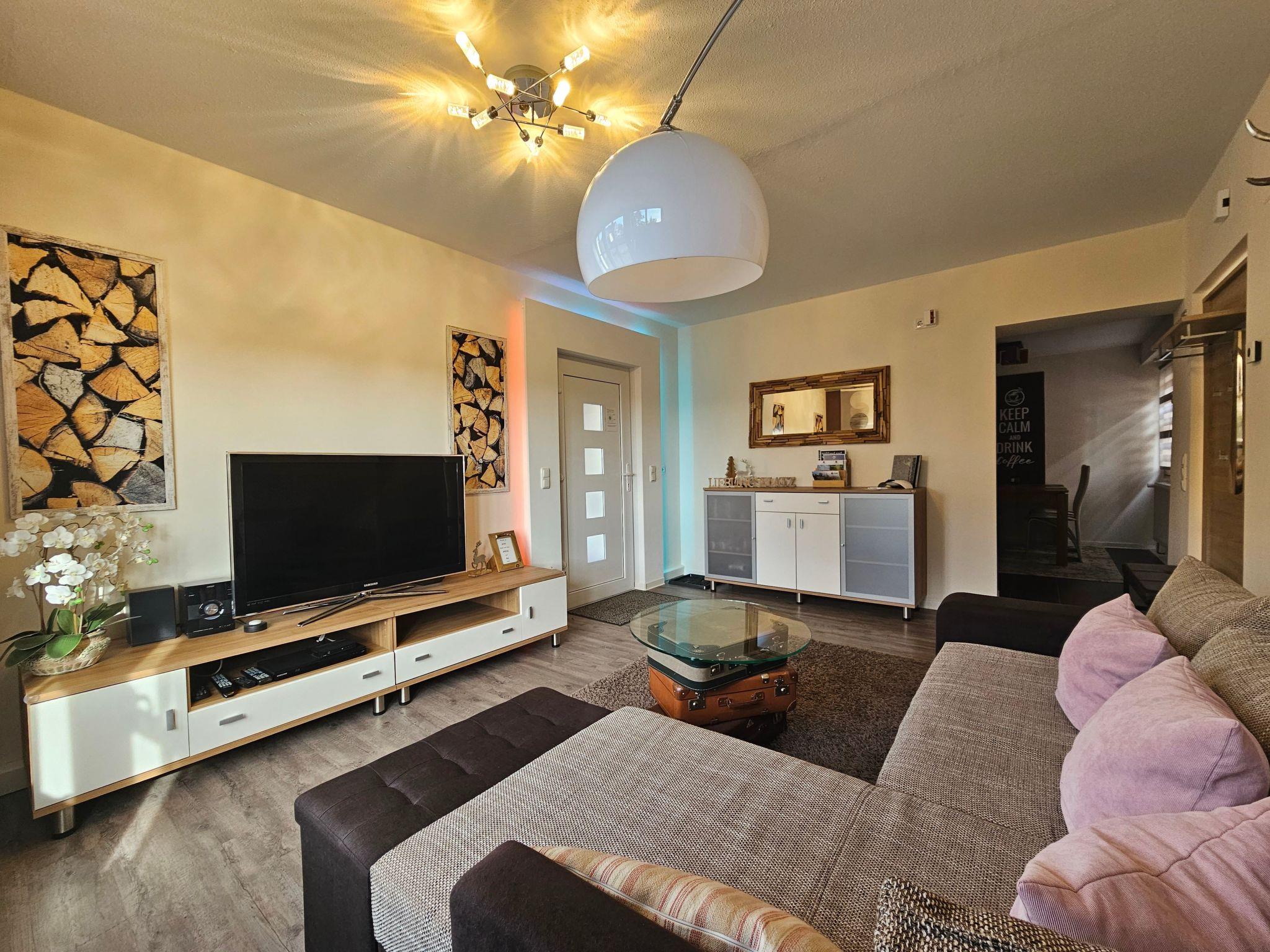We warmly welcome you to Germany. The holiday flat is 80 square metres in size and can accommodate up to 4 people. This bright holiday flat consists of a large open living room area, fully equipped kitchen with adjoining dining area, 1 daylight bathroom with large bathtub, 1 guest toilet with tumble dryer, 2 bedroomsThe outdoor area includes a separate garden with terrace and seating / deckchairs The entire flat is equipped with heating Smarthome control. Simple operation with Smarthome or room thermostat.