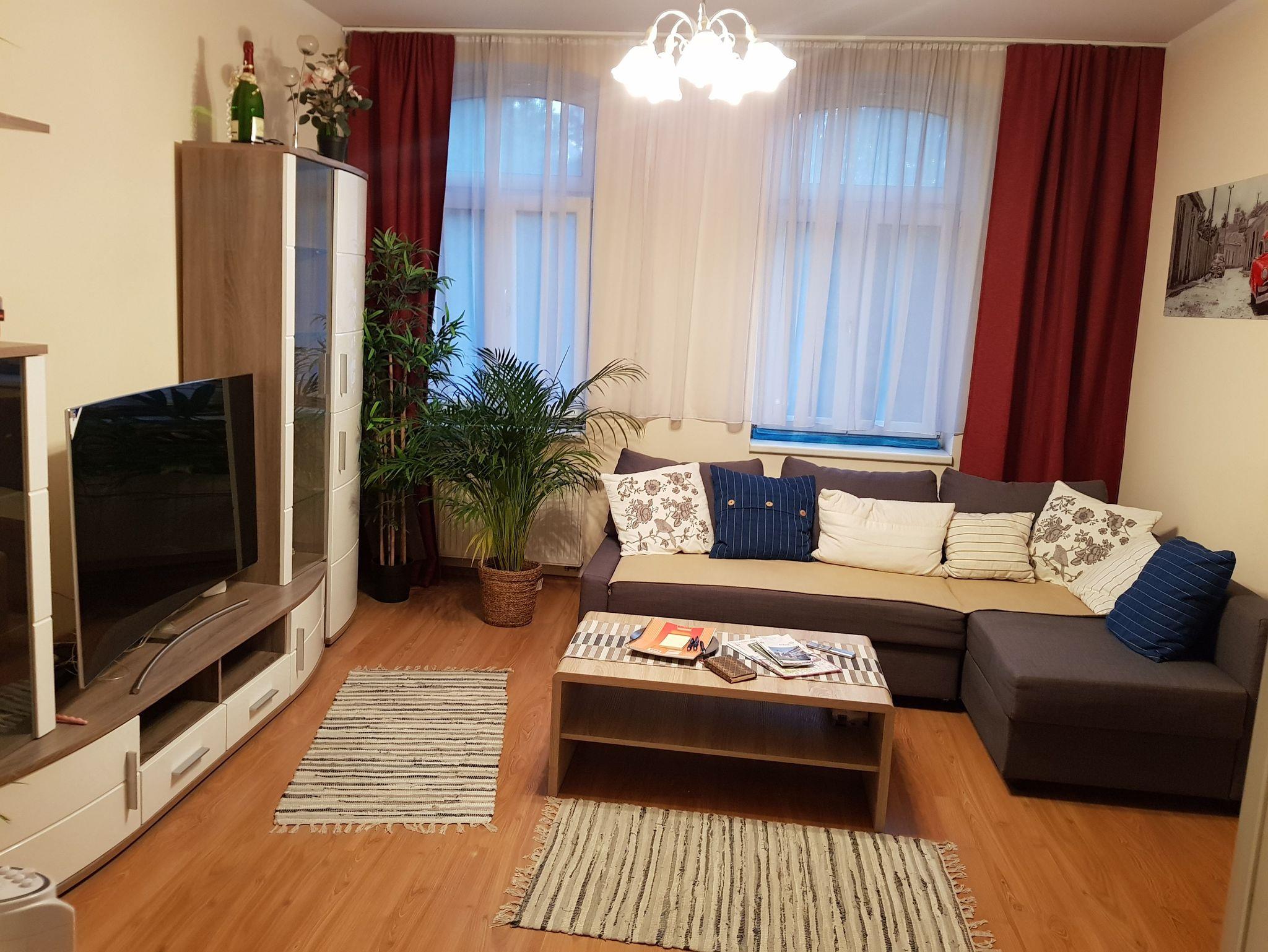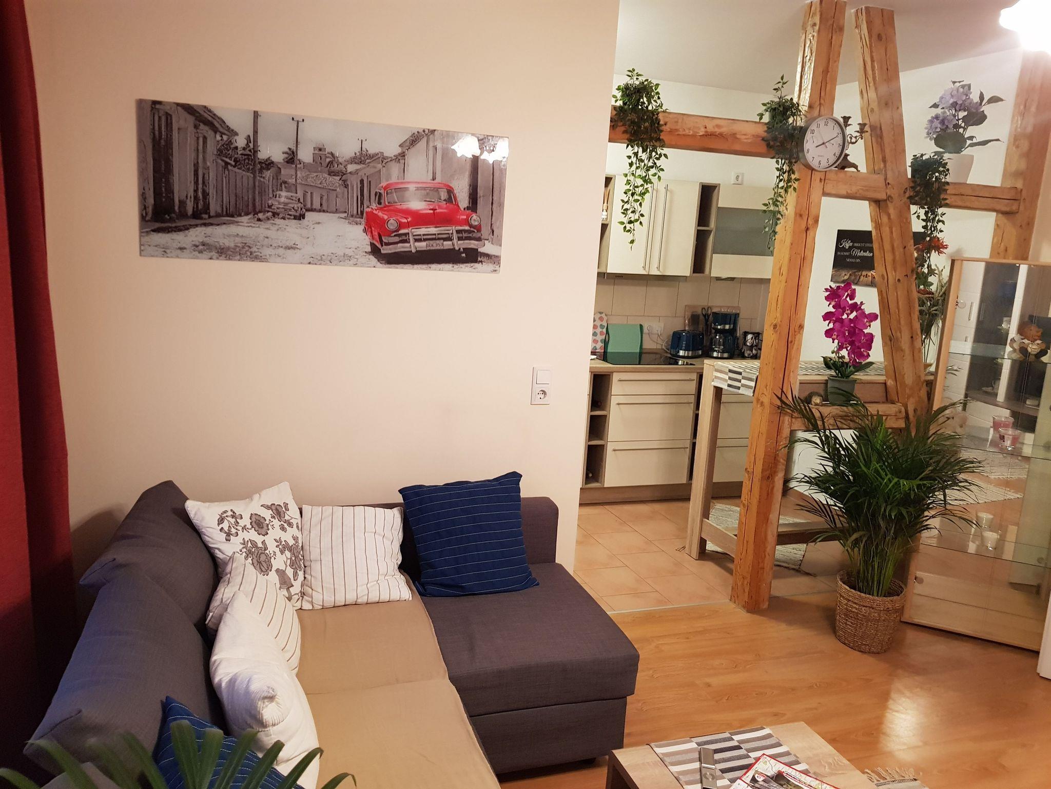 Die 60 qm großen Nichtraucher-Ferienwohnung befinden sich im 1. OG eines vor wenigen Jahren aufwendig sanierten Mehrfamilienhauses (außer das Treppenhaus) und verfügt über ein Schlafzimmer (Boxspringbett), Wohnzimmer mit offen gestalteter Wohnküche (eingerichtete Einbauküche mit Kühl -und Gefrierschrank), ein Tageslichtbad mit Waschmaschine, sowie einer Diele.