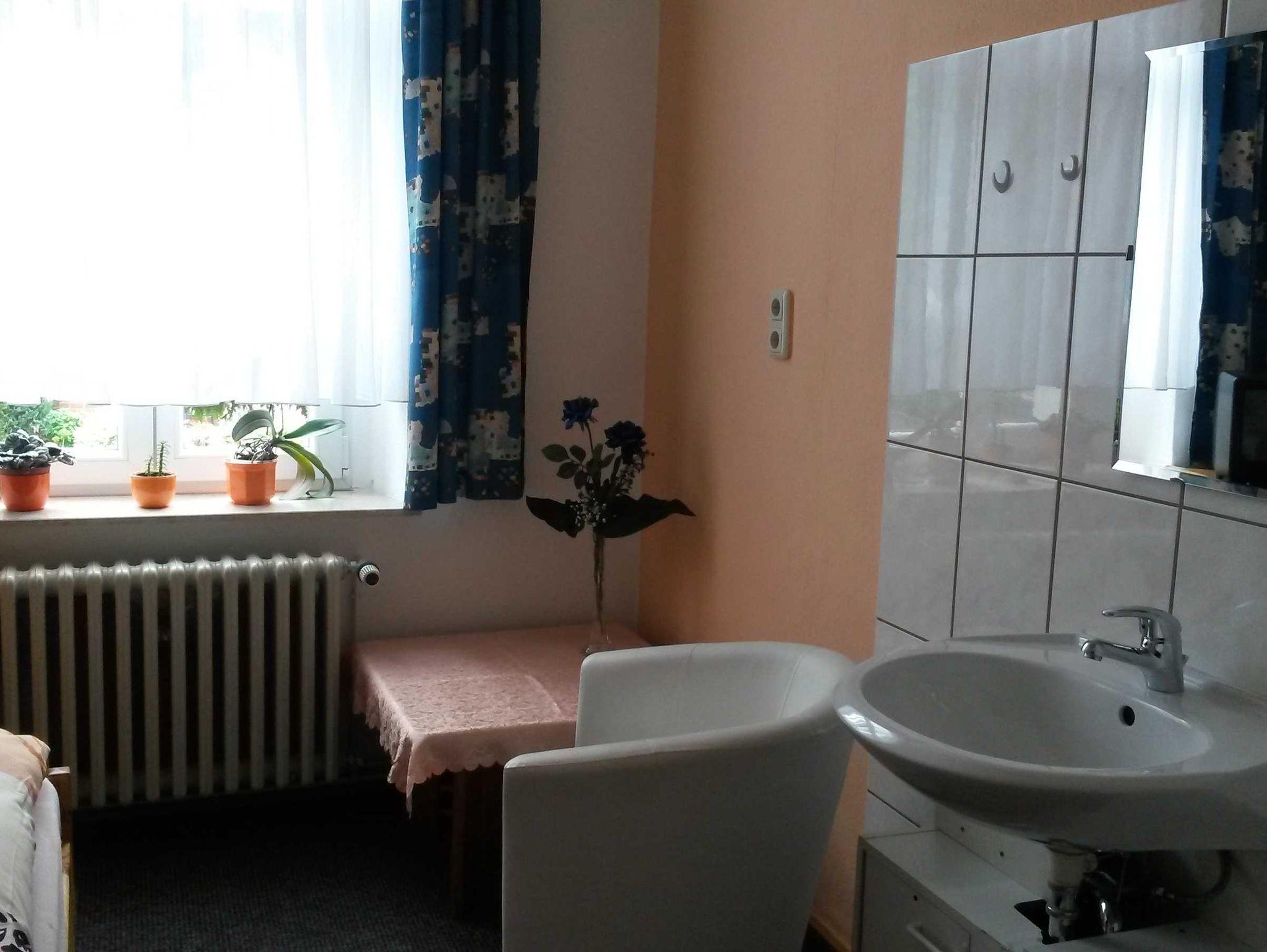 Das Einzelzimmer befindet sich im EG und ist 13qm groß. Das Zimmer mit Einzelbett verfügt über TV, Tisch und 1 Sessel, Waschbecken, Bad auf der Etage mit WC, Waschbecken u. Dusche.