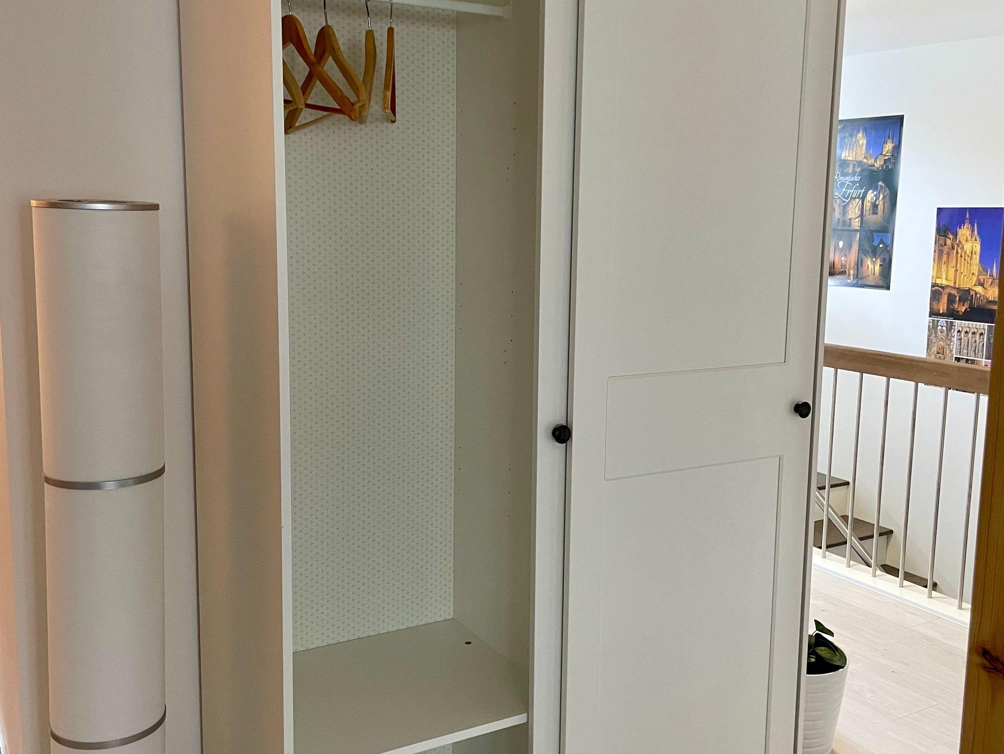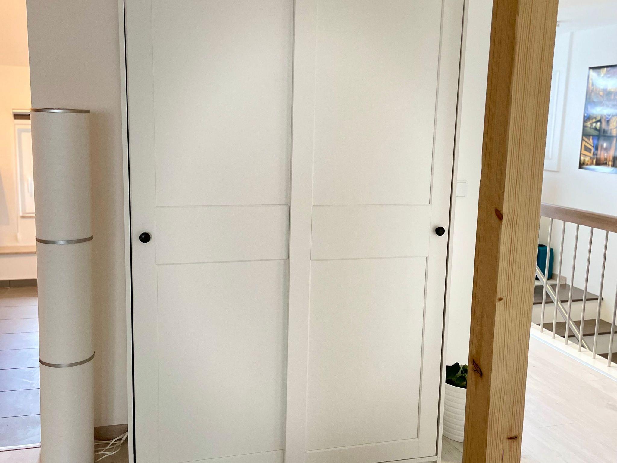 Die Wohnung betretet ihr im 1. OG unseres Hauses über einen separaten Wohnungseingang mit Klingel. Hier findet ihr eine kleine Garderobe inkl. Platz für Eure Schuhe und Jacken. Von hier aus bringt Euch eine Treppe in das 2. OG in die Wohnung.