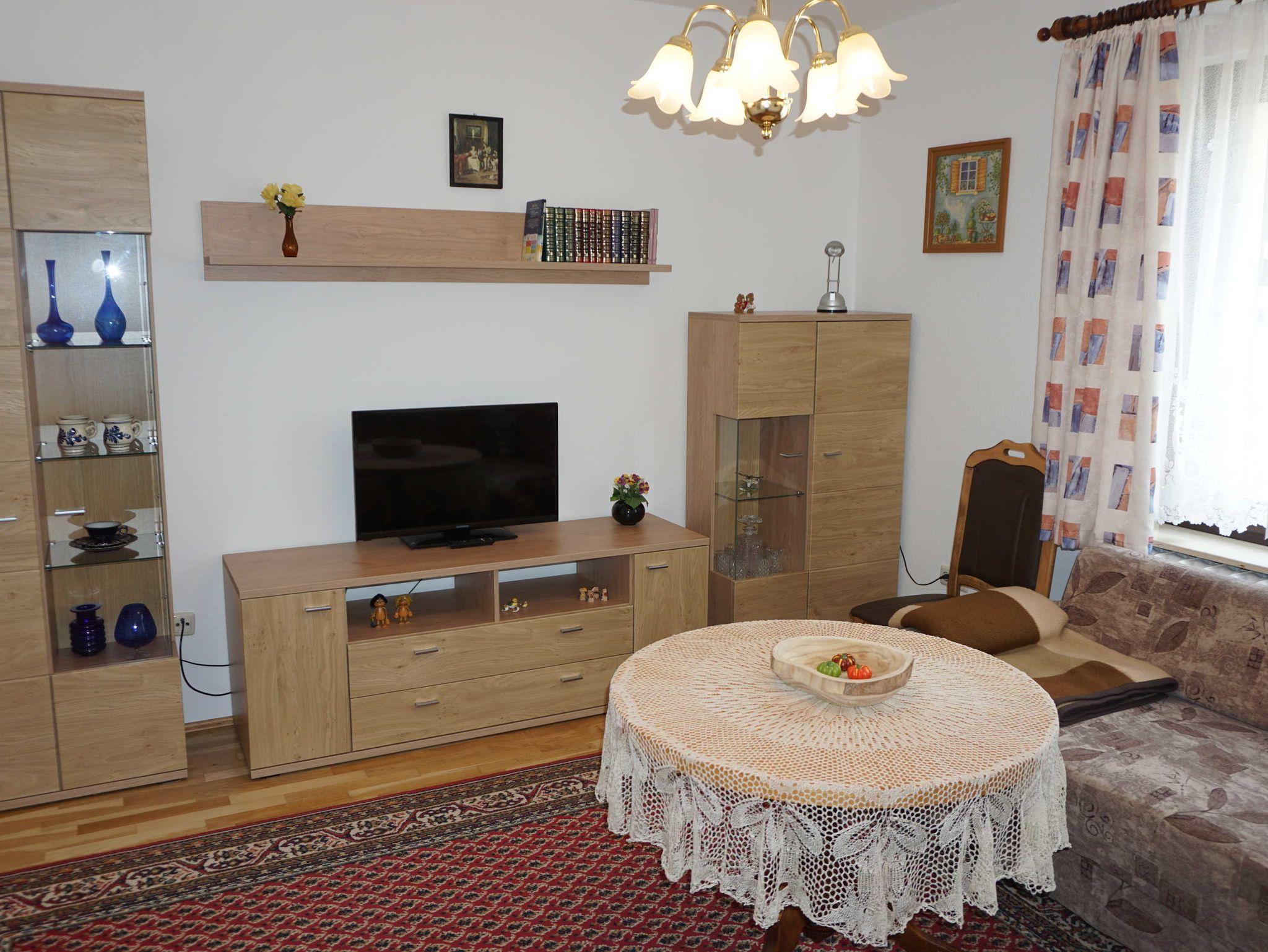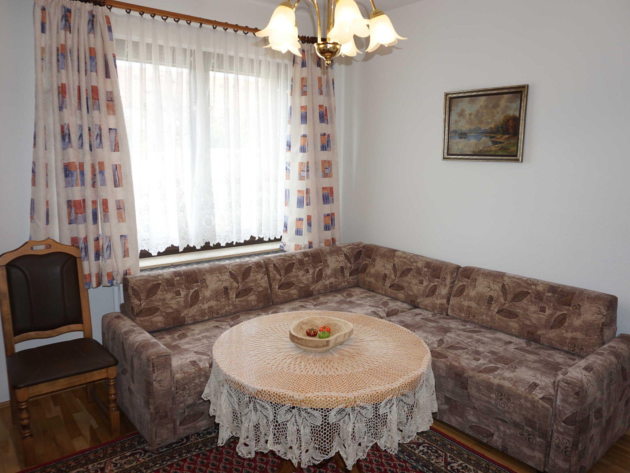 Sie befindet sich im Erdgeschoss, hat eine separate Küche, Bad/WC sowie je ein Wohn- und Schlafzimmer. Das Schlafzimmer verfügt über 4 Einzelbetten. Ein Babybett ist vorhanden, eine Parkmöglichkeit vor dem Haus.