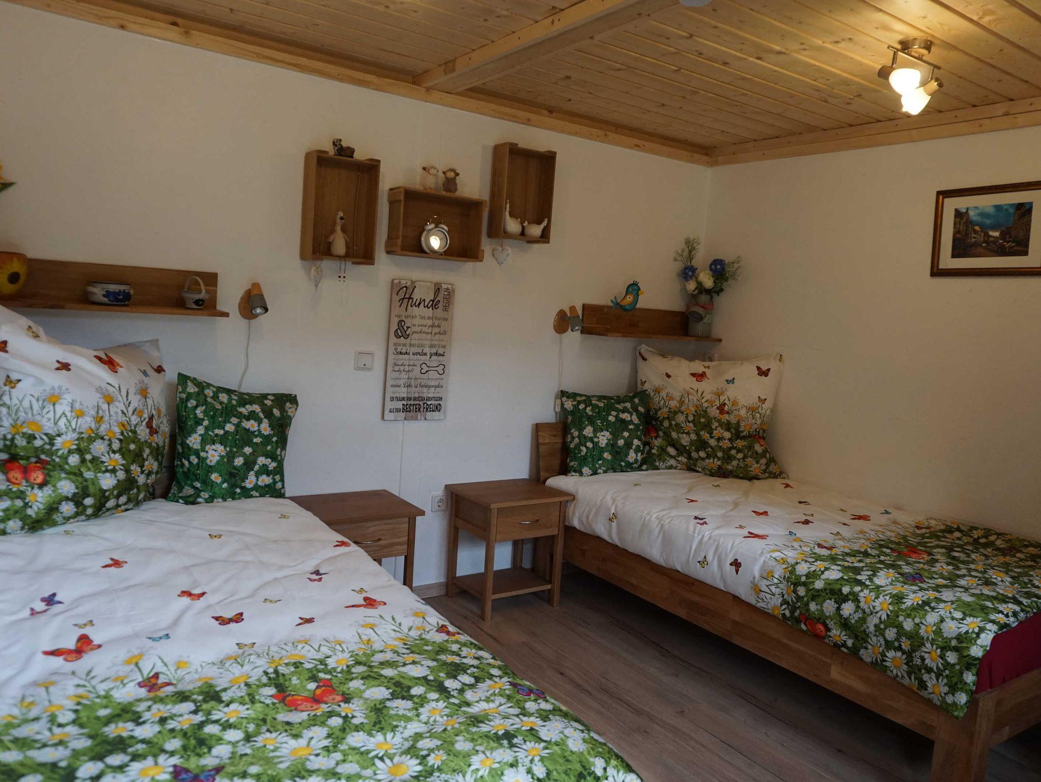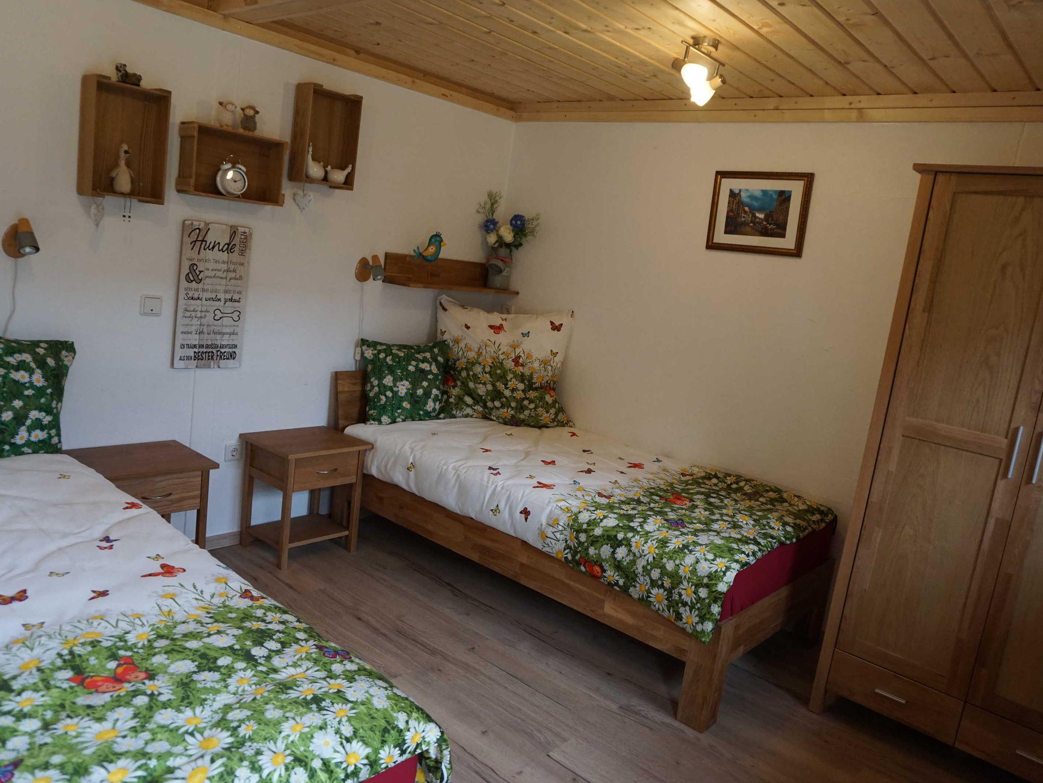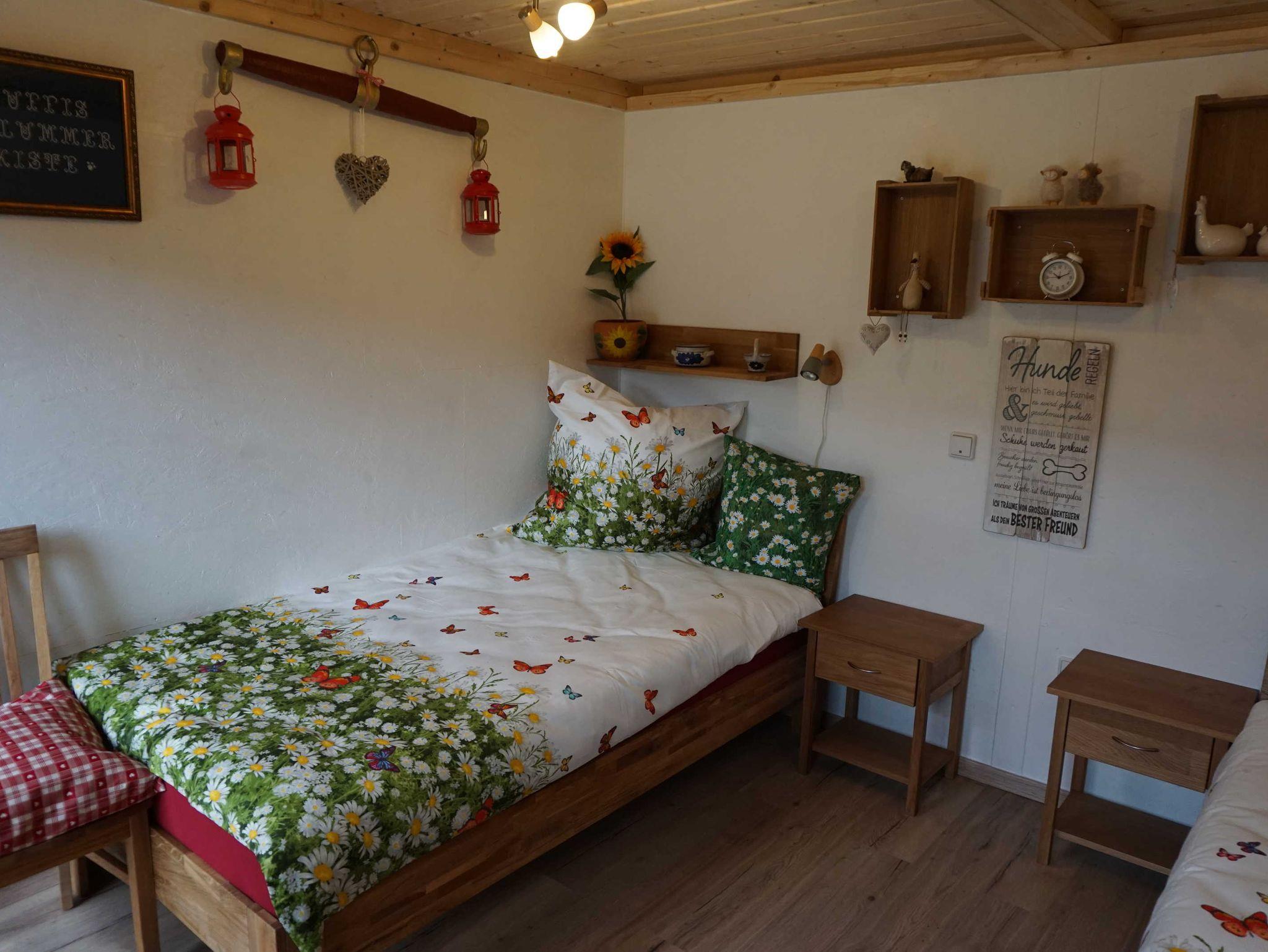 Wir vermieten im Nebengebäude auf unserem Bauernhof unsere gemütliche, liebevoll eingerichete Ferienwohnung im Erfuter Osten. Das Stadtzentrum ist bequem mit Bus ( Buahaltestelle vorm Haus) oder Auto in 10 Minuten zu erreichen. Unsere Ferienwohnung hat einen separaten Eingang im Außenbereich für Raucher und Grillabende. Die Wohnung verfügt über ein Schlafzimmer mit 2 Einzelbetten (1m breit).