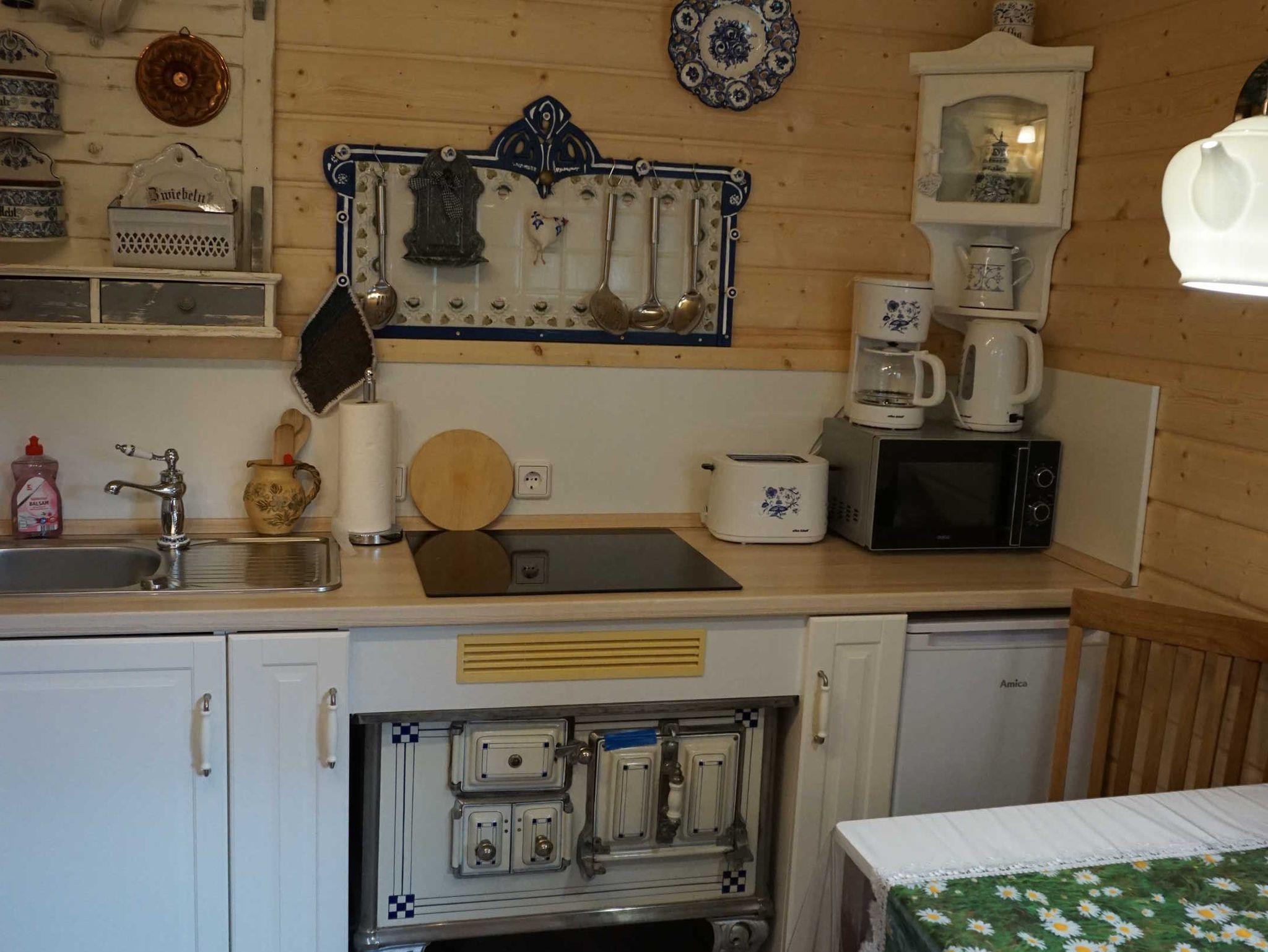 In der gut ausgestatteten Küche finden Sie eine E-Herd, Kühlschrank mit Gefriermöglichkeit, Mikrowelle, Taoaster, Kaffeemaschine, Gewürze u.a. Im Wohnzimmer steht eine gemütliche Couch, Couchtisch, ein Fernseher und ein Radio. Eine gemütliche Sitzecke steht Ihnen im Innenhof zur Verfügung. Ein PKW Stellplatz befindet sich direkt am Haus.