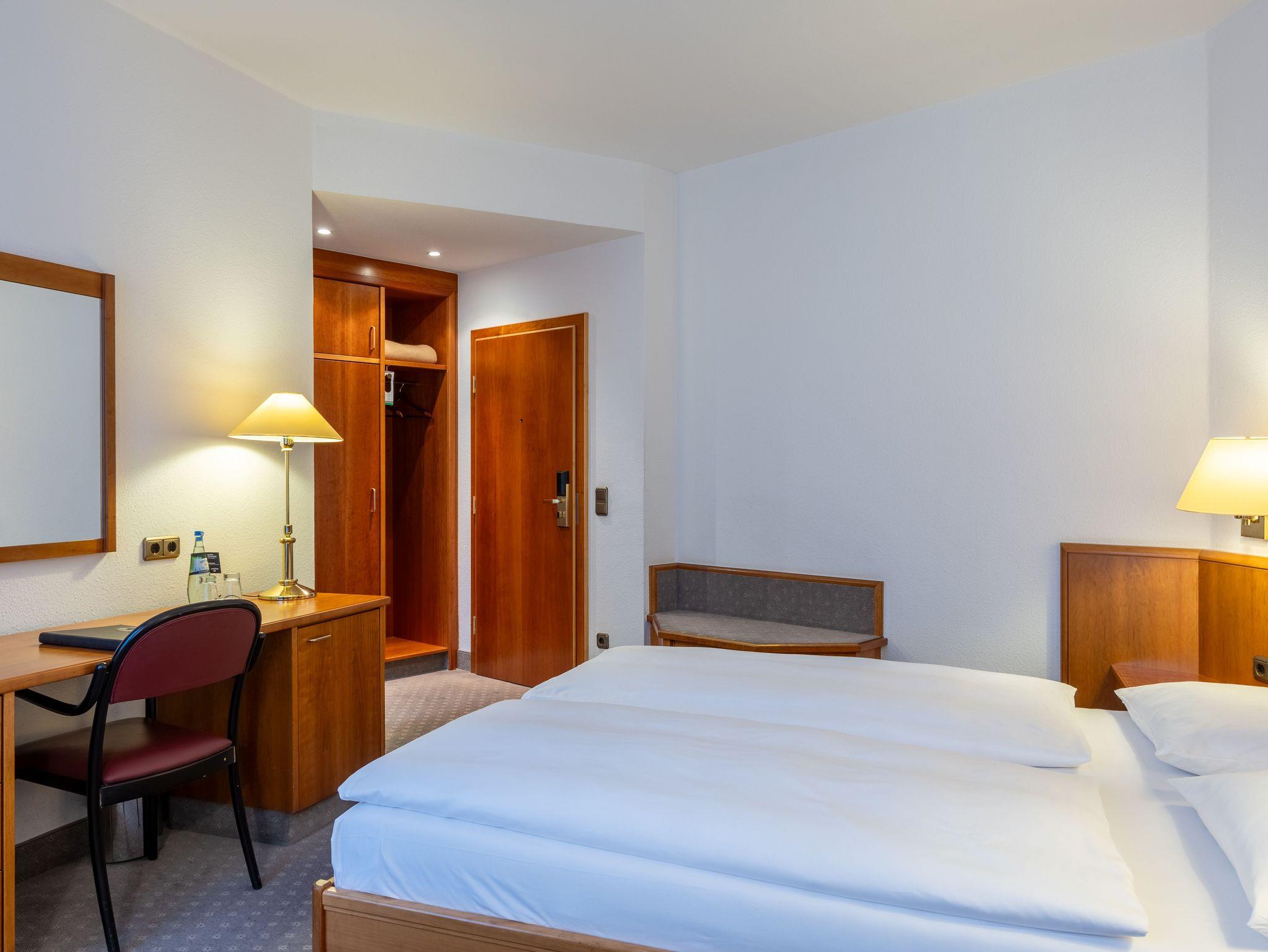 extralange Betten (2,20m), Bettbreite: 1,60 m (durchgängige Matratzen), einladende Sitzecke, Schreibtisch, Zimmersafe, Flatscreen, W-LAN, Telefon und Radio