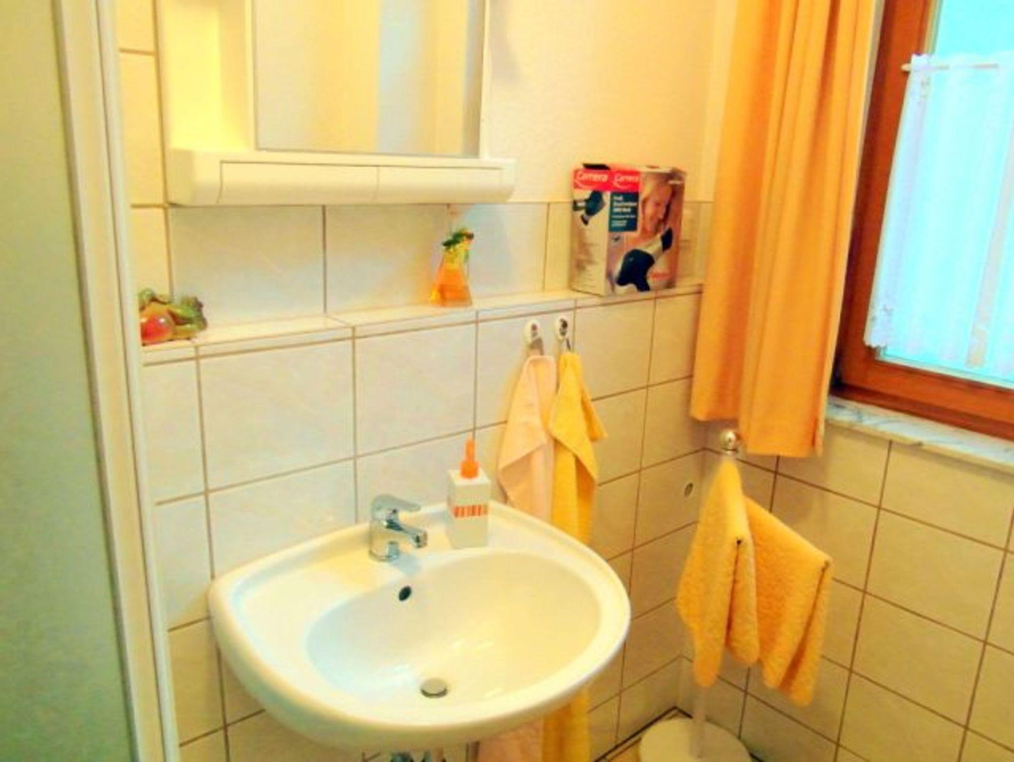 Die Ferienwohnung im Erdgeschoss (35m²) ist farbenfroh und modern ausgestattet. Das kombinierte Wohn/Schlafzimmer verfügt über ein Doppelbett, eine Schlafcouch für eine dritte Person, Schrank und Fernsehgerät. In der separaten Küche steht ein Essplatz für 2 Personen zur Verfügung Die komfortbale Ausstattung wird durch ein Bad mit Dusche/WC ergänzt. Im Hofgarten stehen Sitzecke und Raucherbereich zur Verfügung.
