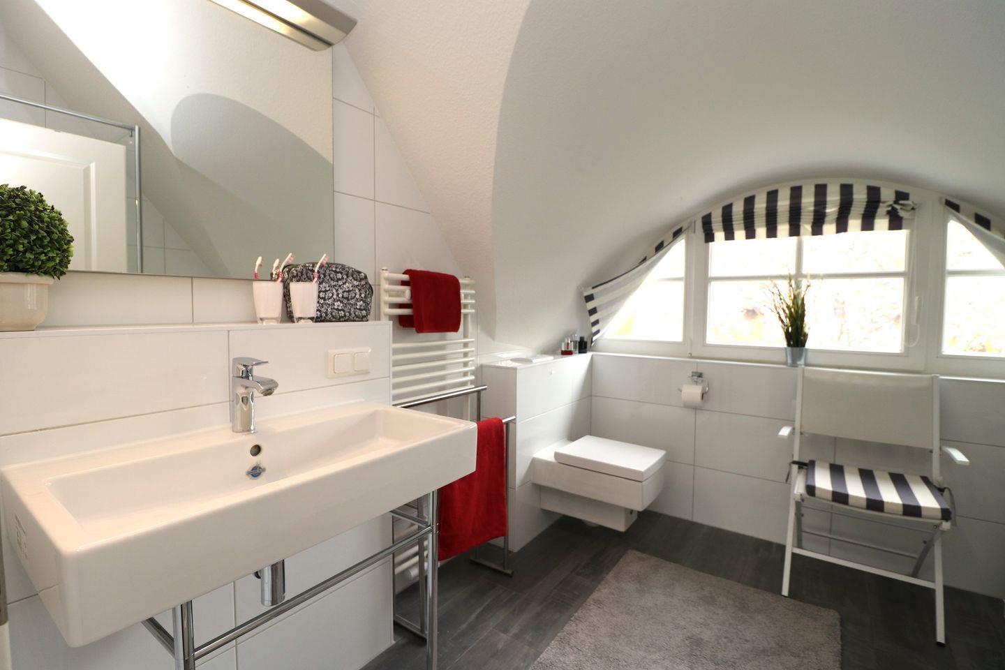 Die beiden modernen Badezimmer bieten zusätzlichen Komfort, darunter eines mit bodengleicher Dusche und Barriere freundlicher Ausstattung.