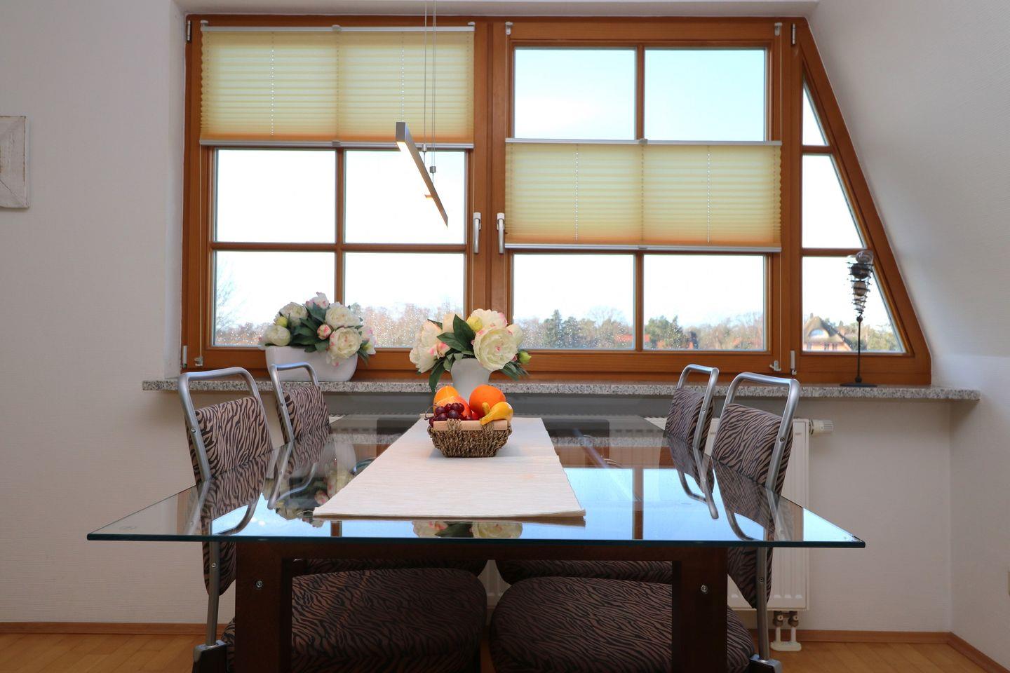 Dieses charmante Appartement im Dachgeschoss bietet auf 48 m² Platz für bis zu 4 Personen und ist der ideale Ort für einen erholsamen Urlaub. Der Wohnbereich ist mit gemütlichem Mobiliar ausgestattet und lädt zum Entspannen ein. Die Schlafcouch bietet zwei Personen eine bequeme Schlafmöglichkeit, sodass Sie sich nach einem erlebnisreichen Tag bestens ausruhen können. Die separate Küchenzeile bietet alles, was Sie benötigen, um leckere Mahlzeiten zuzubereiten und gemeinsam zu genießen. Im Schlafzimmer sorgt ein Doppelbett für erholsame Nächte und einen entspannten Start in den nächsten Tag. Das Bad ist mit einer Dusche und einem WC ausgestattet, um Ihren Aufenthalt so komfortabel wie möglich zu gestalten. Ein Pkw-Stellplatz befindet sich direkt auf dem Grundstück der Ferienanlage, sodass Sie Ihr Auto bequem abstellen können. W-LAN steht Ihnen während Ihres Aufenthalts kostenlos zur Verfügung. Haustiere sind leider nicht gestattet, und das Rauchen ist im Appartement nicht erlaubt. Ein Balkon ist in diesem Appartement nicht vorhanden.