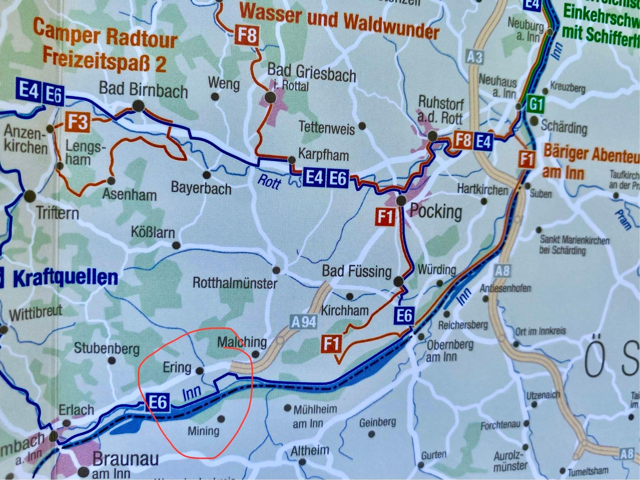 800m vom Inn und der Staatsgrenze zu Österreich entfernt.