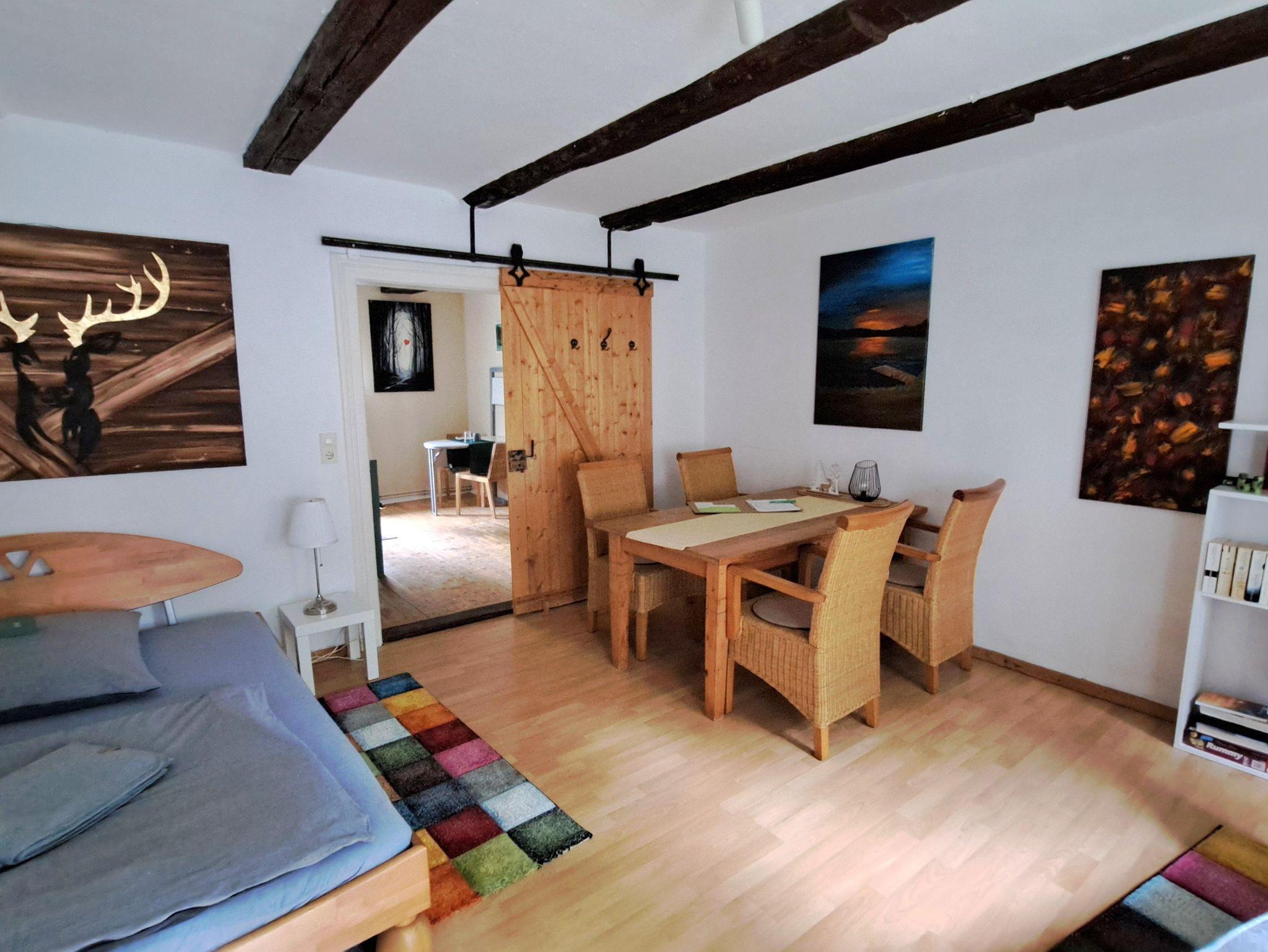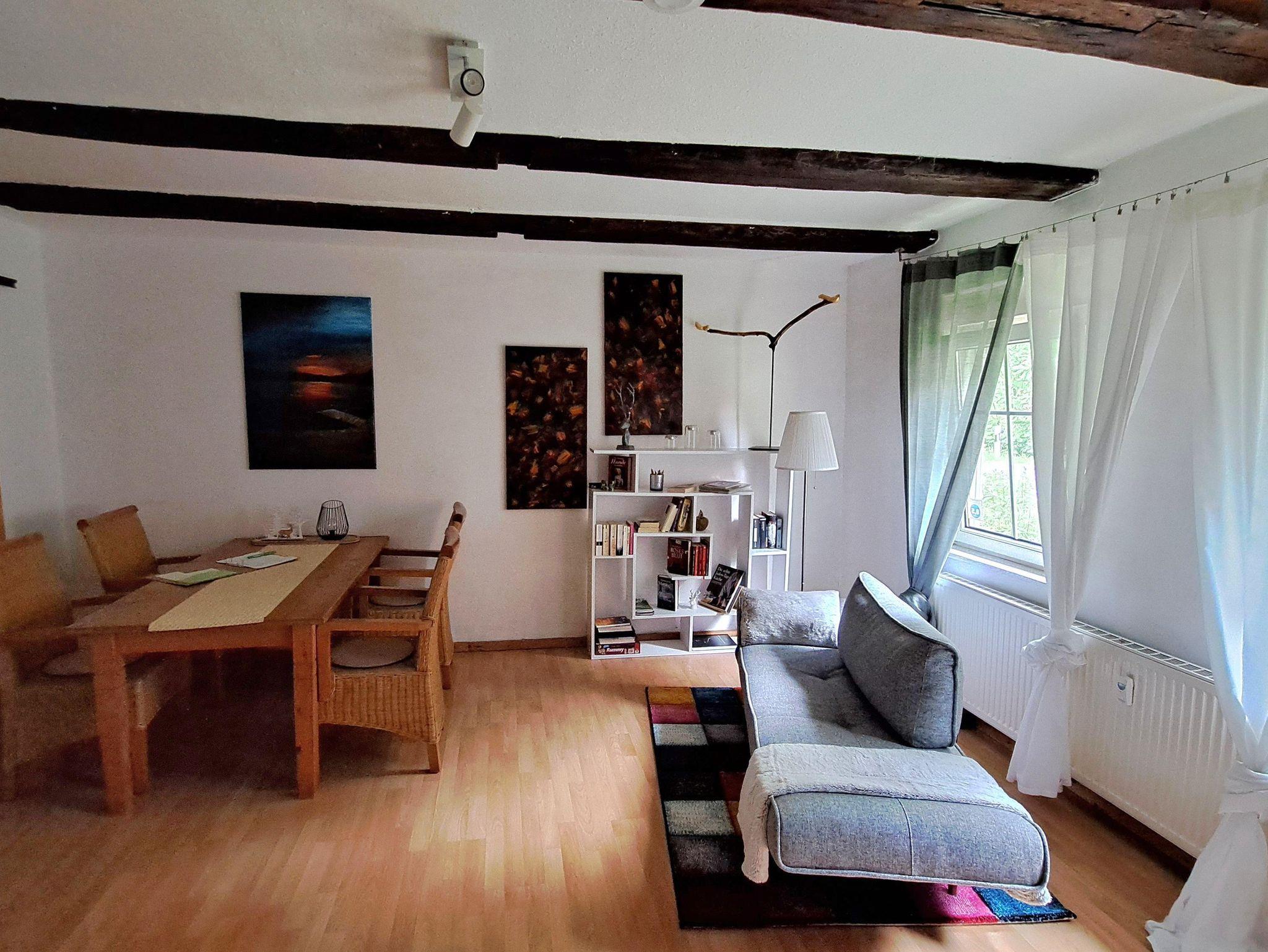 Die Nichtraucher-Ferienwohnung „DAS FUCHSREVIER“, ca. 42 m², ist umrahmt von Wald, Feldern und Weiden und liegt zwischen Braunschweig und Wolfsburg. Die Wohnung befindet sich in einem alten Fachwerkhaus, in dem 3 Mietparteien wohnen. Sie ist über drei Stufen erreichbar, sonst ebenerdig und verfügt über einen separaten Eingang.