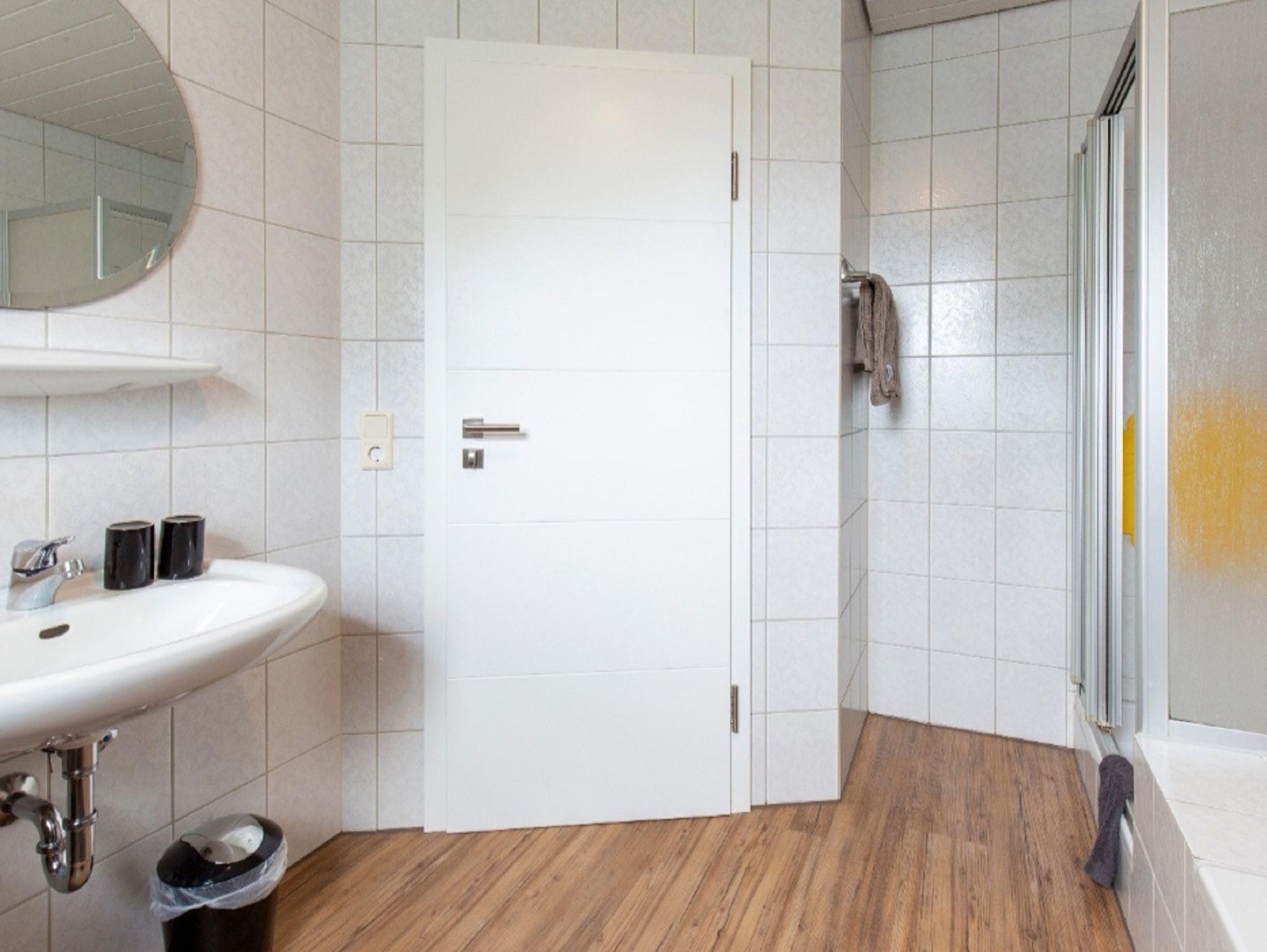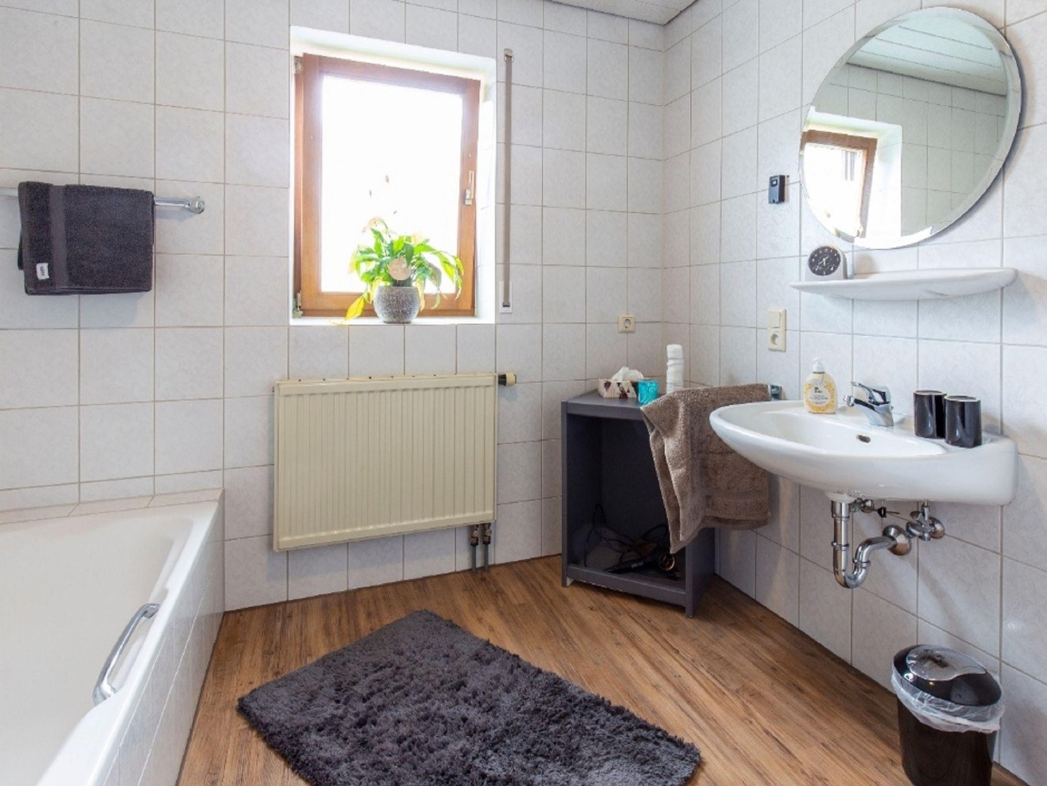 Das Badezimmer verfügt über eine Badewanne und Dusche.