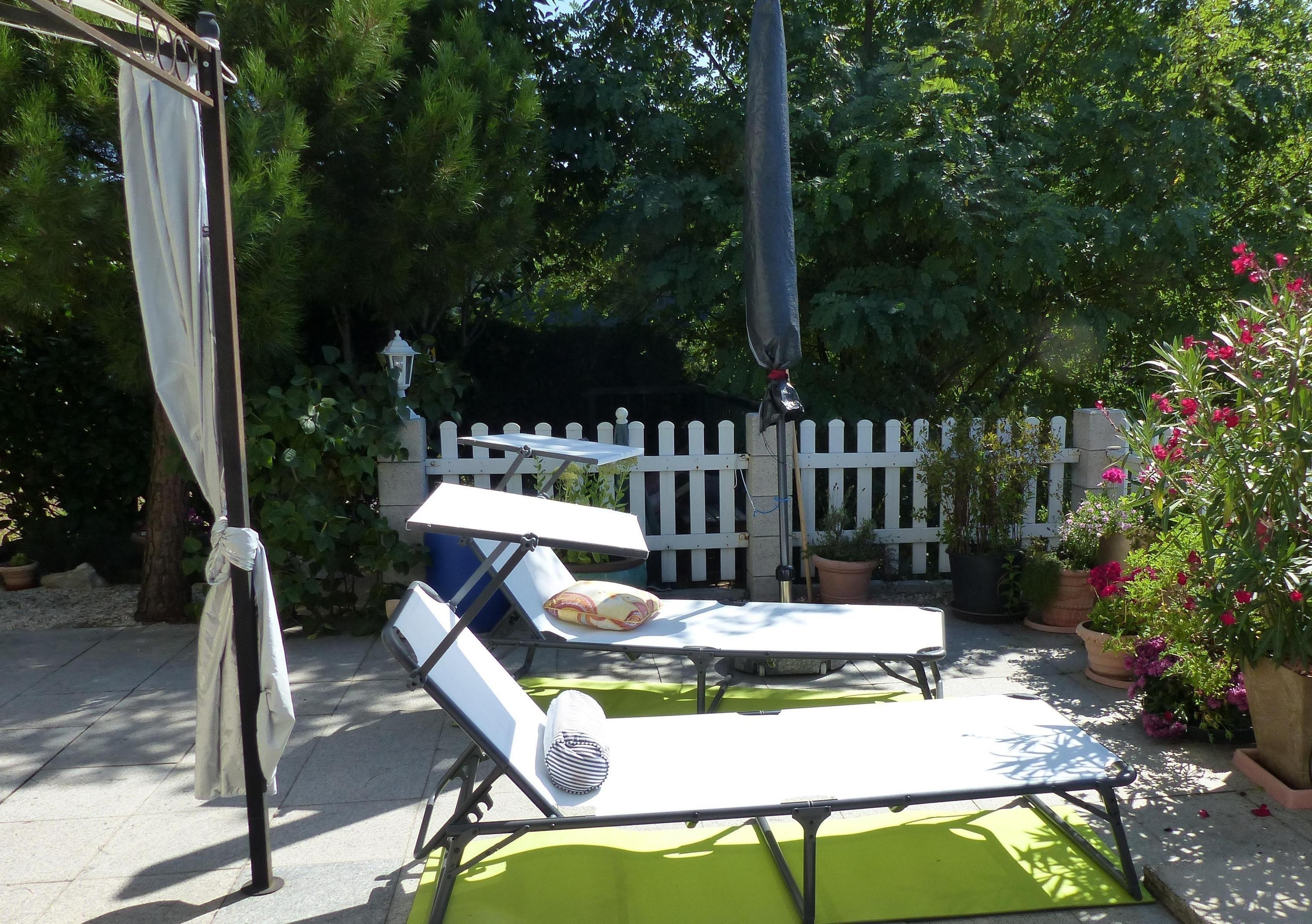 Auf der Terrasse können frühstücken oder die Abendsonne genießen, auf Liegen oder am Tisch relaxen und die Sonne bzw. die Aussicht genießen. Freier Blick zur Burg Berwartstein, dem Wahrzeichen von Erlenbach.