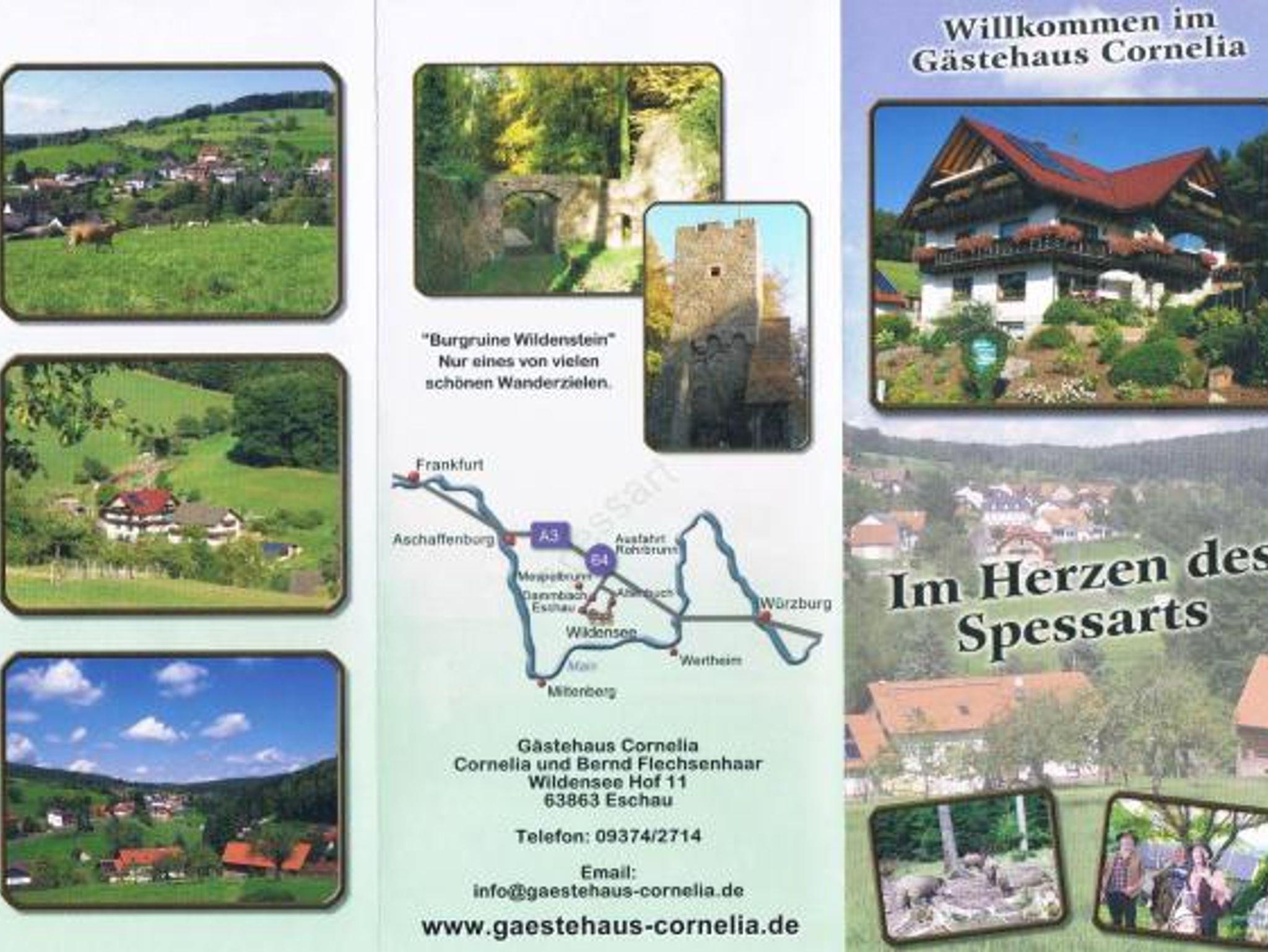 Unsere Privatpension Gästehaus Cornelia ist idyllisch im Herzen des Naturpark Spessart ist Wildensee gelegen. Der staatlich anerkannte Luftkurort bietet beste Vorraussetzungen für einen erholsamen Aufenthalt. Der Spessart, das größte Laubwaldgebiet in Deutschland, zeigt sich als wahres Urlaubsparadies für Wanderfreunde. Seine unberührte Natur lädt zu entspannenden Spaziergängen oder ausgedehnten Wanderungen durch reizvolle Täler und sonnige Lichtungen ein.
