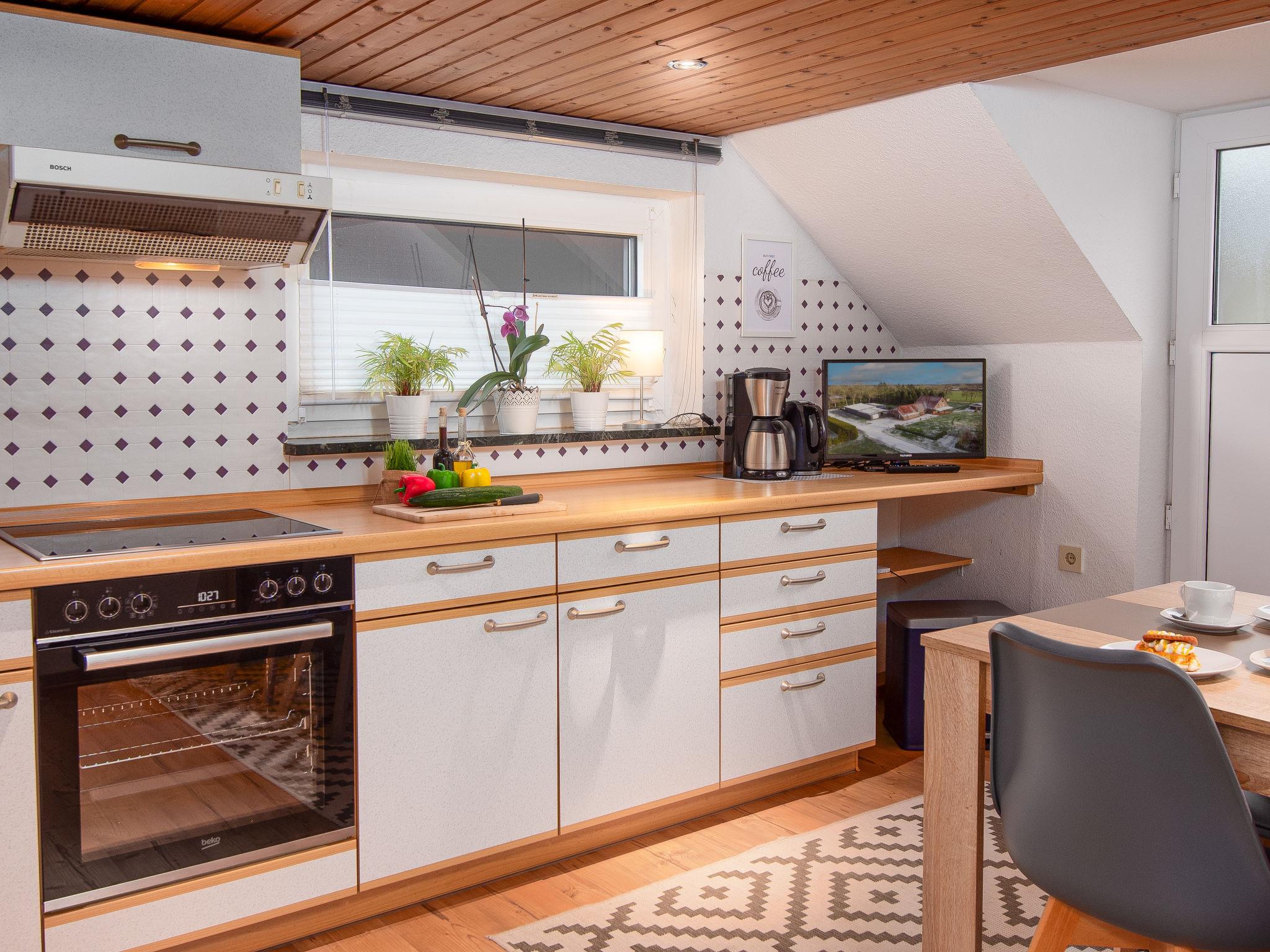 "An der Tanne", 3-room semi-detached house 90 m2, on the ground floor. Cosy furnishings: living room 13 m2 with satellite TV (flat screen), radio. 1 room 12 m2 with 2 beds (90 cm, length 200 cm). 1 room 13 m2 with 1 double bed (2 x 90 cm, length 200 cm). Kitchen (oven, dishwasher, 4 ceramic glass hob hotplates, toaster, kettle, microwave, freezer, electric coffee machine) with dining table. Exit to the terrace. Bath/shower, sep. WC. Terrace 20 m2. Terrace furniture, barbecue. Facilities: baby cot for up to 2 year olds. Please note: non-smoking house. Maximum 1 pet/ dog allowed. Smoke alarm.