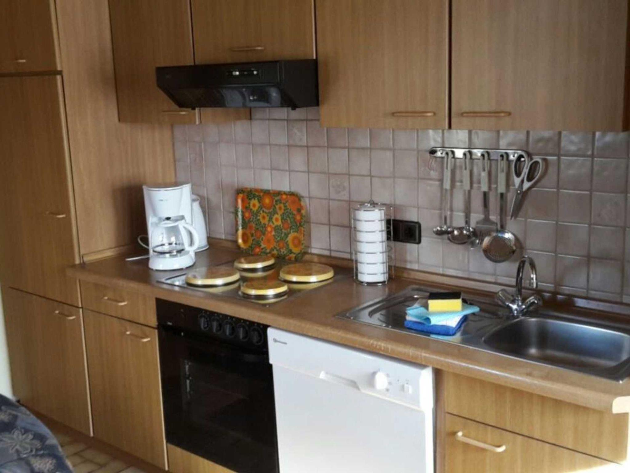 Die Küchenzeile ist ausgestattet mit E-Herd mit Backofen, Geschirrspüler , einer Kaffeemaschine, einem Toaster und einem Wasserkocher.