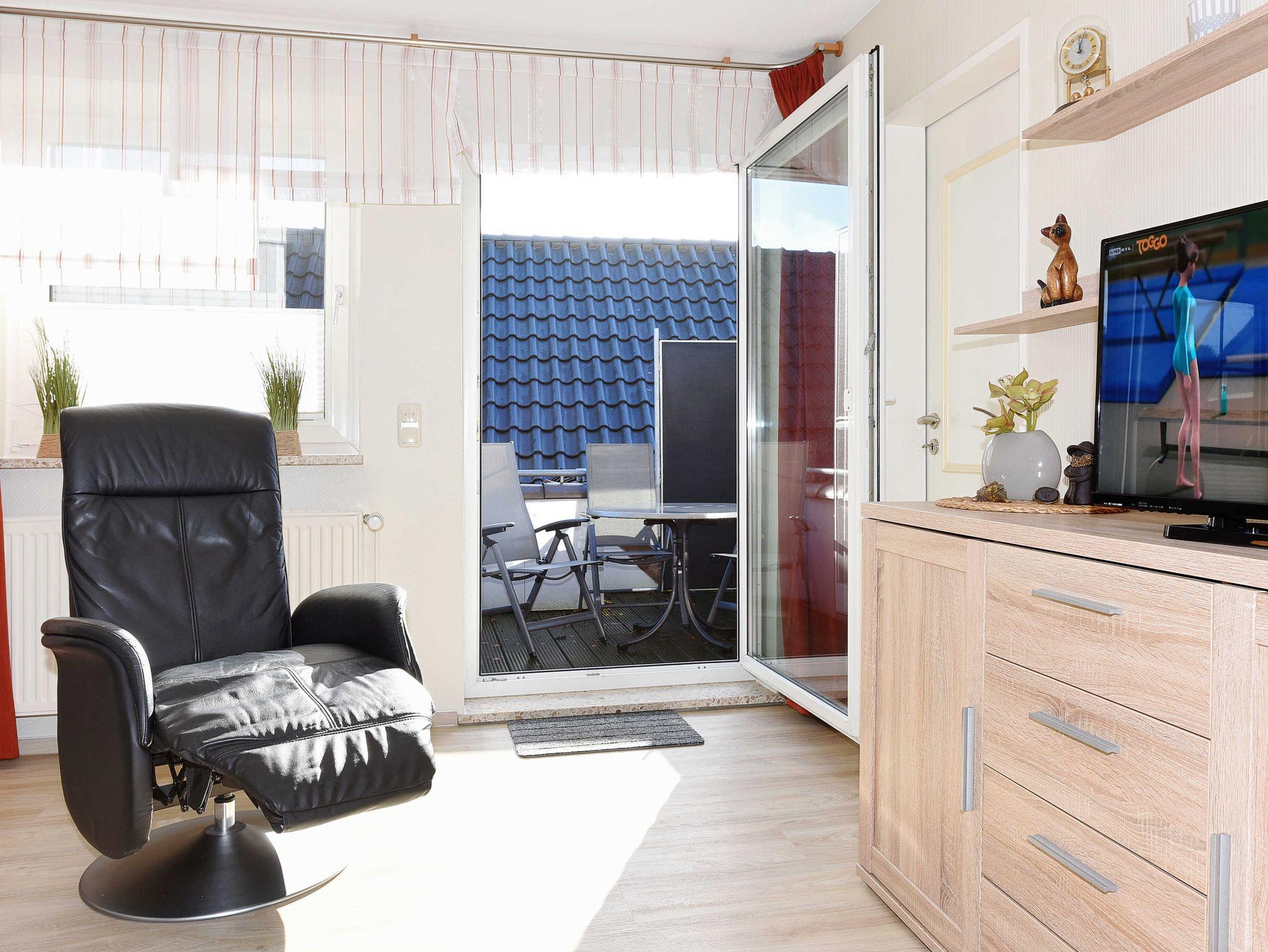 Die geschmackvollen und gemütlichen Ferienwohnungen sind jeweils ungefähr 50 Quadratmeter groß und für einen schönen Nordseeurlaub für zwei bis vier Personen bestens geeignet. Sie ist sehr freundlich gestaltet sowie sehr komfortabel ausgestattet und eingerichtet. Sie finden hier alles, was Sie für einen rundum schönen Urlaub benötigen, z. B. verfügen alle drei Ferienwohnungen über einen möblierten Balkon bzw. eine über eine Dachterrasse mit schönen Gartenmöbeln.
