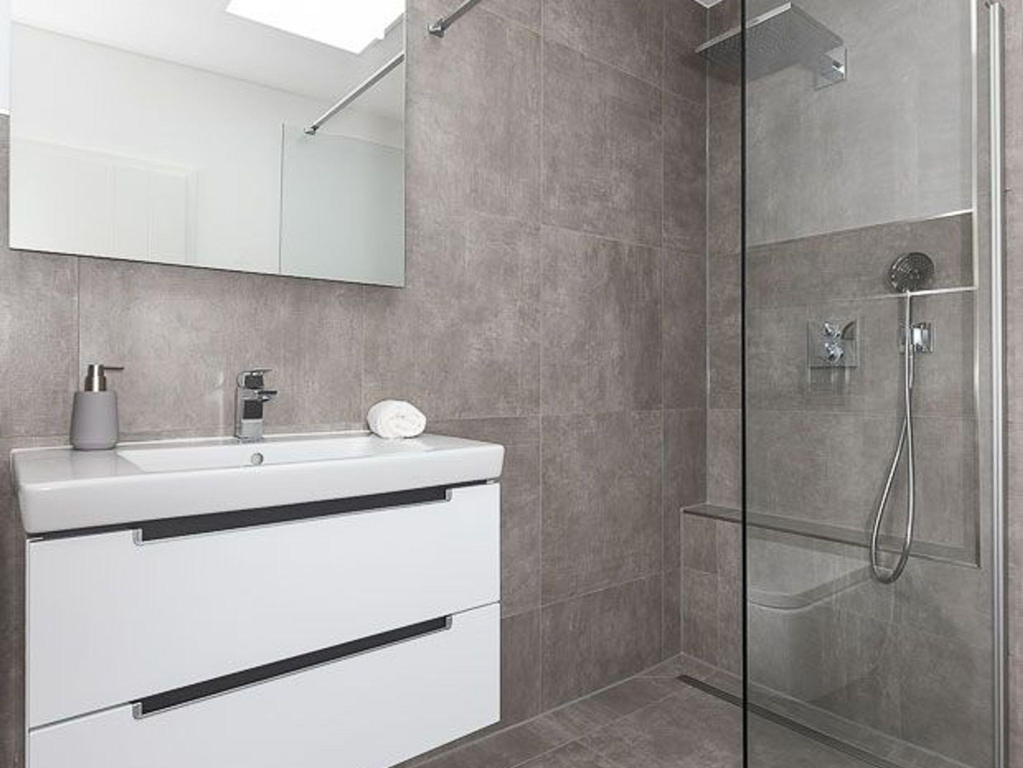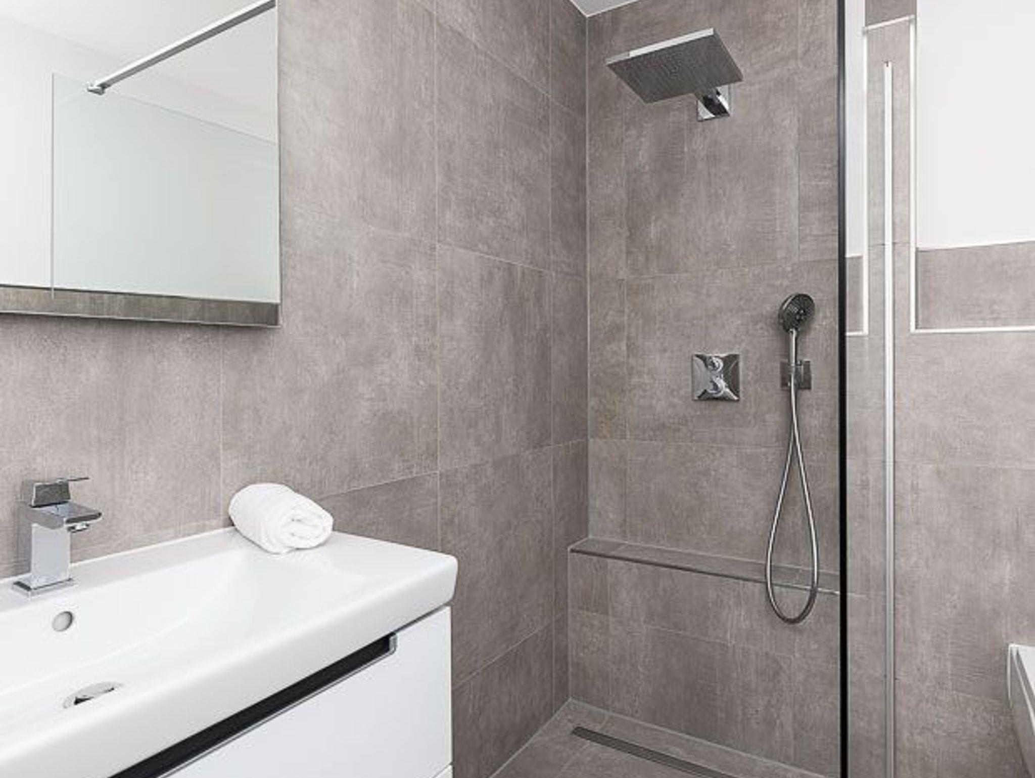 zweites Badezimmer mit Dusche, Waschtisch und WC