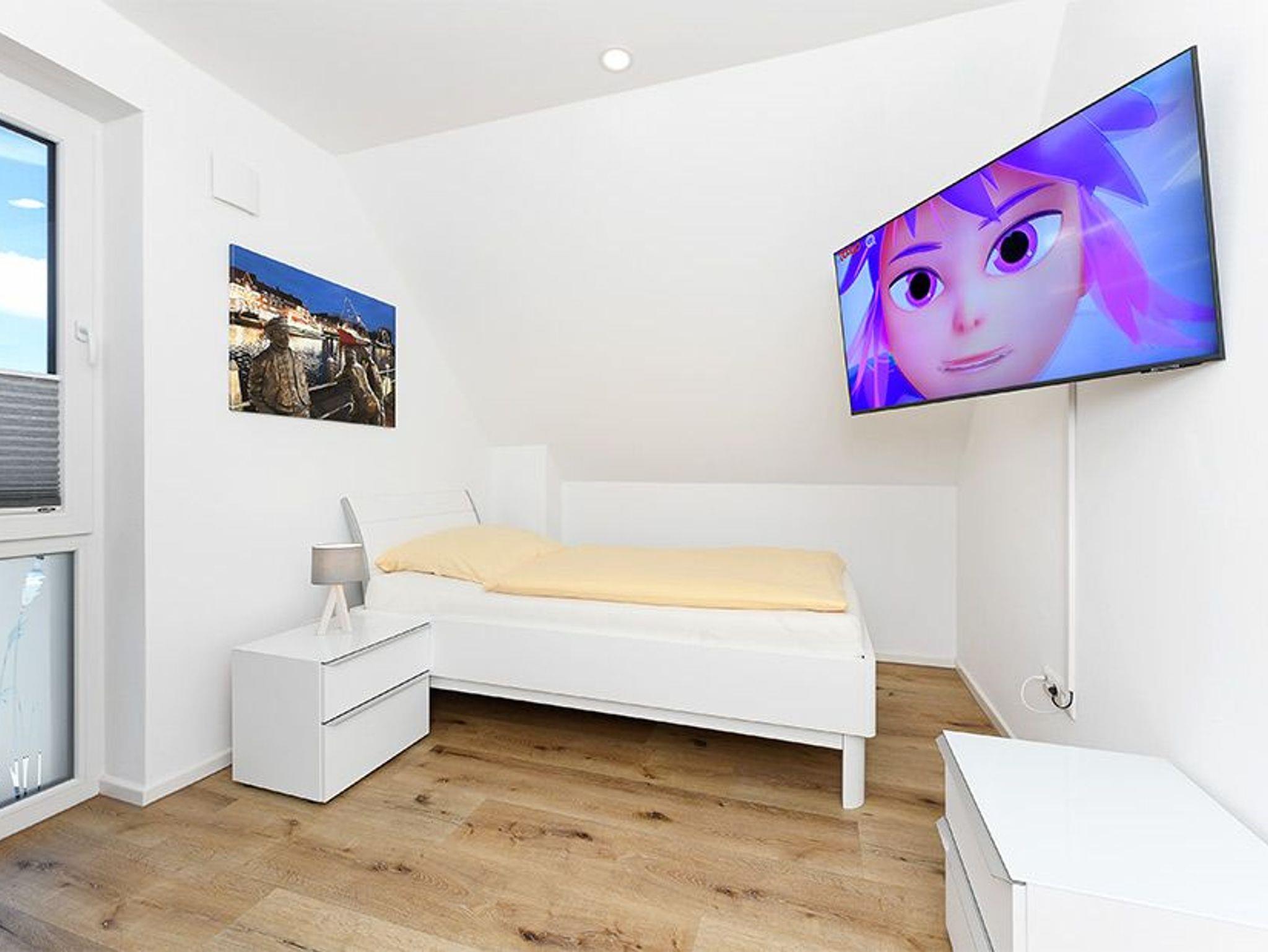 Das Bett im zweiten Schlafzimmer ist 2,00 Meter lang und 1,00 m breit