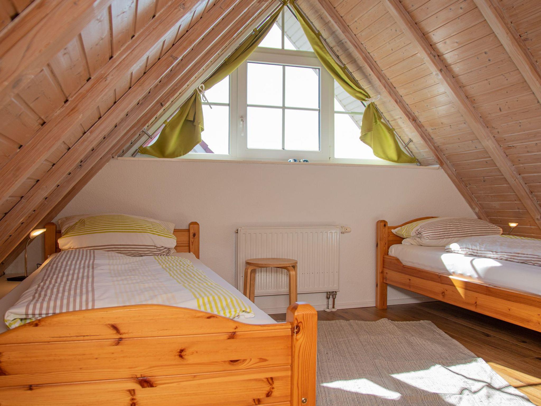 Ruhig gelegen.Größe: ca. 80 Quadratmeter Wohn-/Esszimmer Küche im Erdgeschoss. Schlafzimmer im ersten Geschoss: separates Schlafzimmer/Kinderzimmer mit Einzelbett Badezimmer mit Dusche, Waschtisch und WC. Im Dachgeschoss befinden sich ein weiterer Raum mit zwei Einzelbellen ( Hier möchten wir auf eine etwas steilere Treppe hinweisen). Separates zweites WC im Erdgeschoss . Terrasse Koffer-/Abstellraum optimal für 2 bis 5 Personen und zusätzlich ein Kleinkind/Kind bis 10 Jahre. Kinderbett/Schlafcouch und Hochstuhl im Haus vorhanden. Waschmaschine kostenlos.
