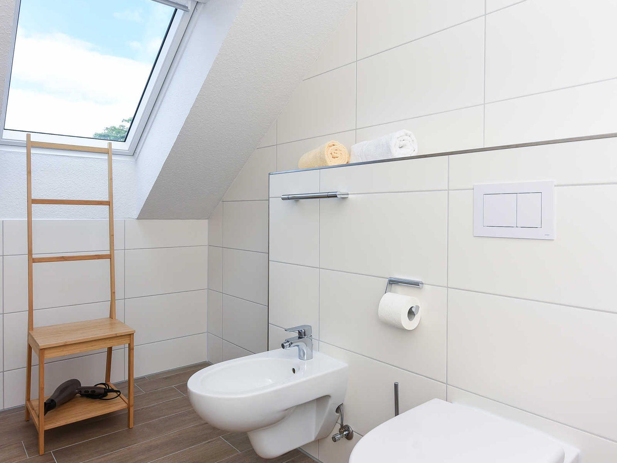 zweites Badezimmer mit Dusche, Waschtisch und WC