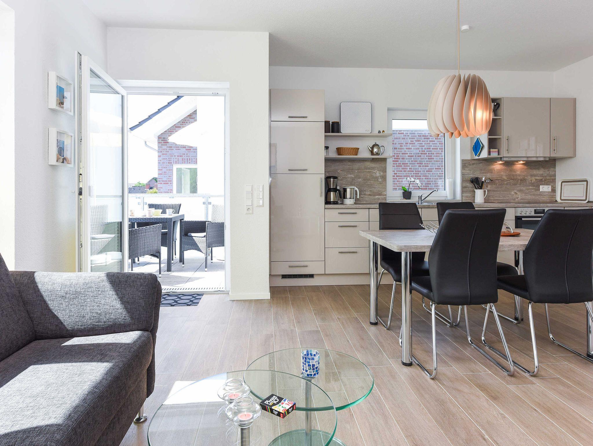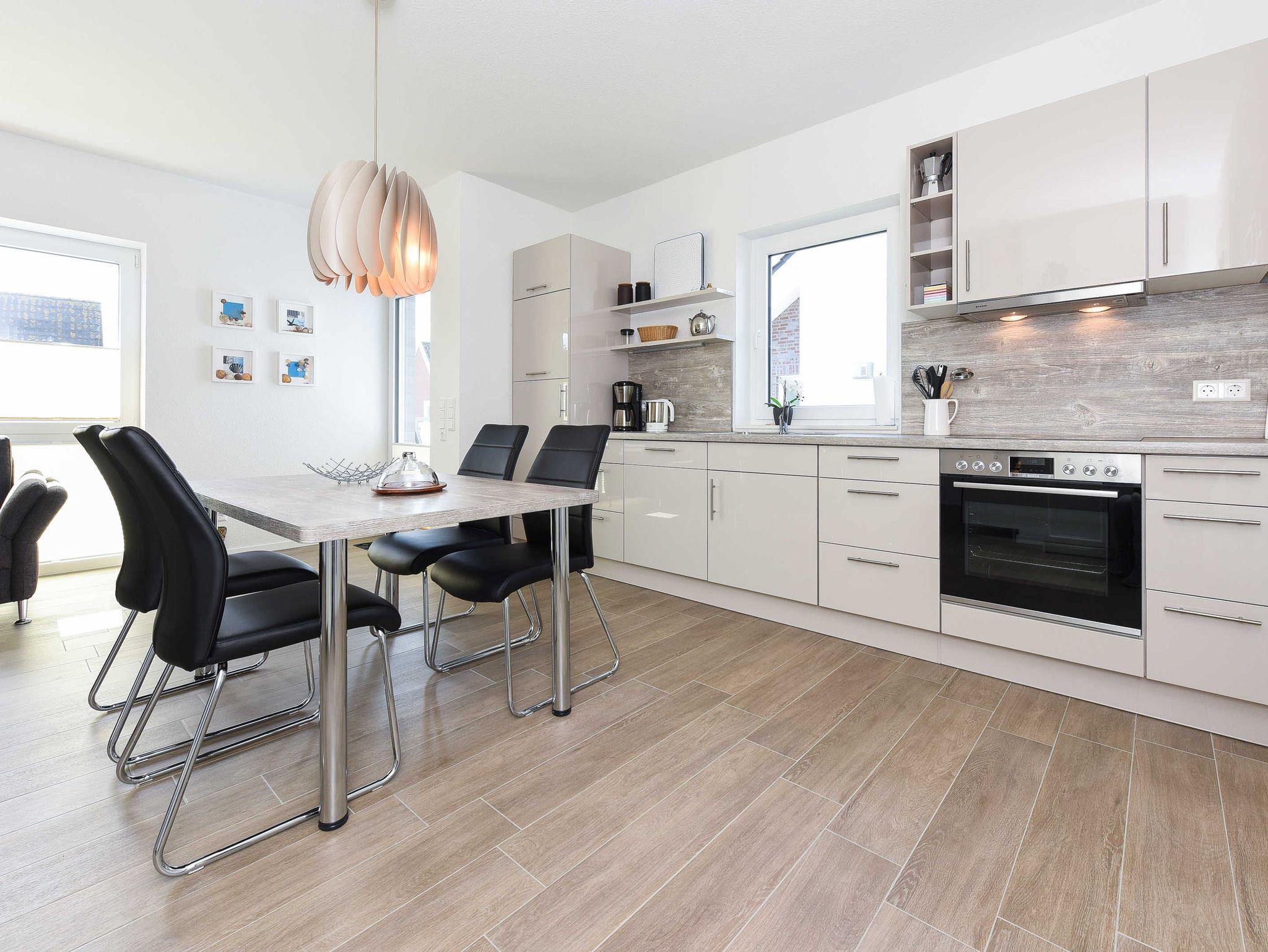 Die Wohnung ist sehr geschmackvoll und stilsicher eingerichtet, dabei sehr gemütlich und technisch hervorragend ausgestattet. Auf ungefähr 90 Quadratmetern finden Sie alles, was Sie für einen rundum schönen Urlaub benötigen, z. B. eine sehr moderne Küche mit Geschirrspülmaschine und Mikrowelle und Ceran-Herd mit Backofen.