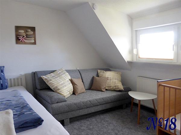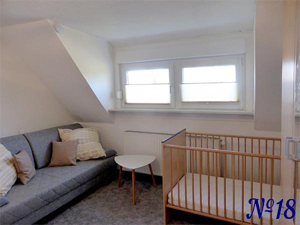 Auf der gleichen Etage befindet sich ein zusätzliches Schlafzimmer, das mit dazu gebucht werden kann. In diesem Zimmer gibt es ein großes Bett (140 x 200 cm), eine Schlafcouch (160 x 200 cm) und ein Kinder-Gitterbett (70 x 140 cm). So hat die Wohnung dann insgesamt zwei Schlafzimmer und kann mit bis zu 4 Erwachsene und / oder Kind(er) belegt.