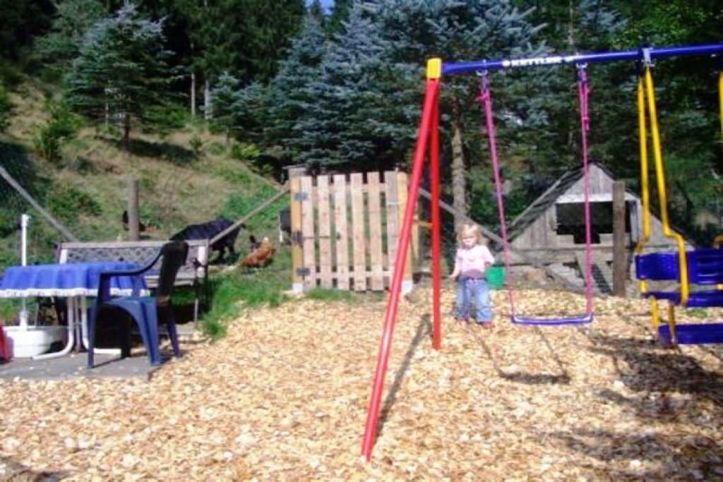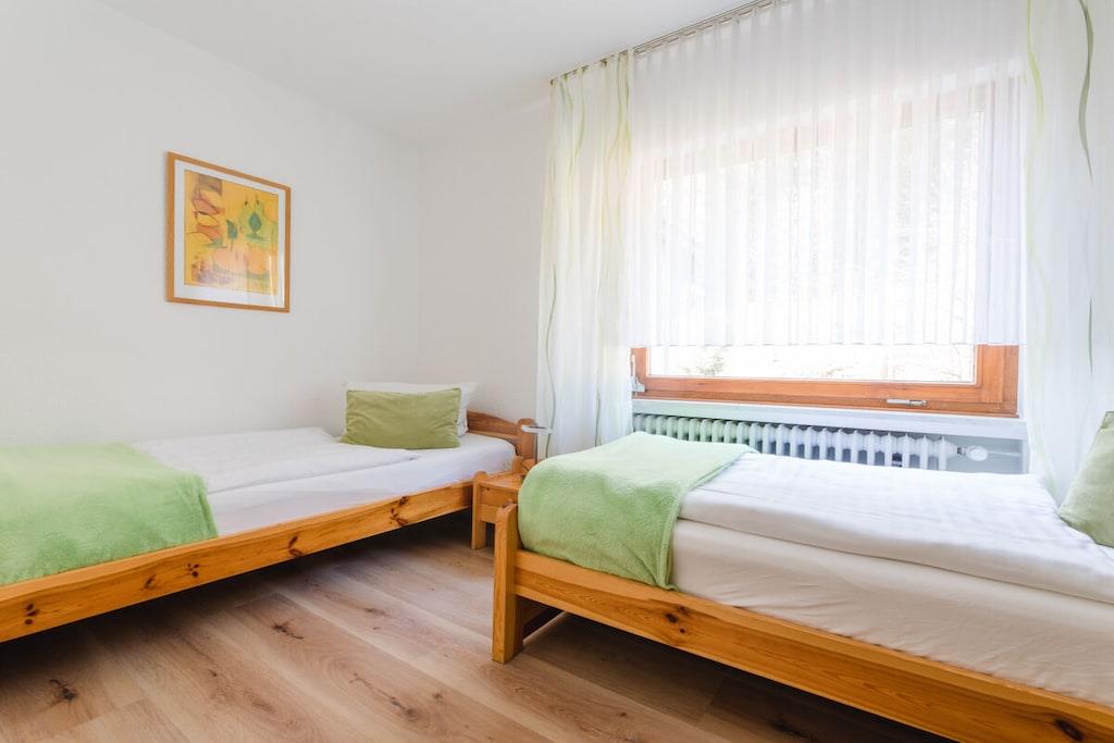 Holiday home house on the sunny slope, over 2 floors in a very quiet location on the edge of the forest, no through traffic, south-facing slope.