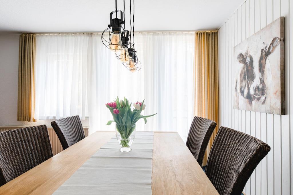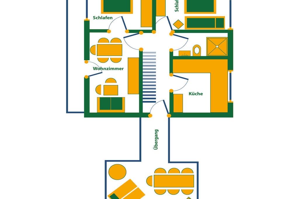 Stueetage: (Køkken(kakkelovn, kogeplade, elkedel, kaffemaskine, ovn, mikrobølgeovn, opvaskemaskine , køleskab, fryser), stue / spisestue(enkeltsovesofa, Fjernsyn, spisebord, DVD-afspiller, barnestol), soveværelse(dobbeltseng), soveværelse(dobbeltseng), soveværelse(enkeltfoldeseng, dobbeltseng, tremmeseng), badeværelse(bruser, håndvask, føntørrer, Håndklæder inkl.), badeværelse(bruser, håndvask, føntørrer, Håndklæder inkl.)) grill, vaskemaskine, terrasse, havemøbler, parkering, Parasol